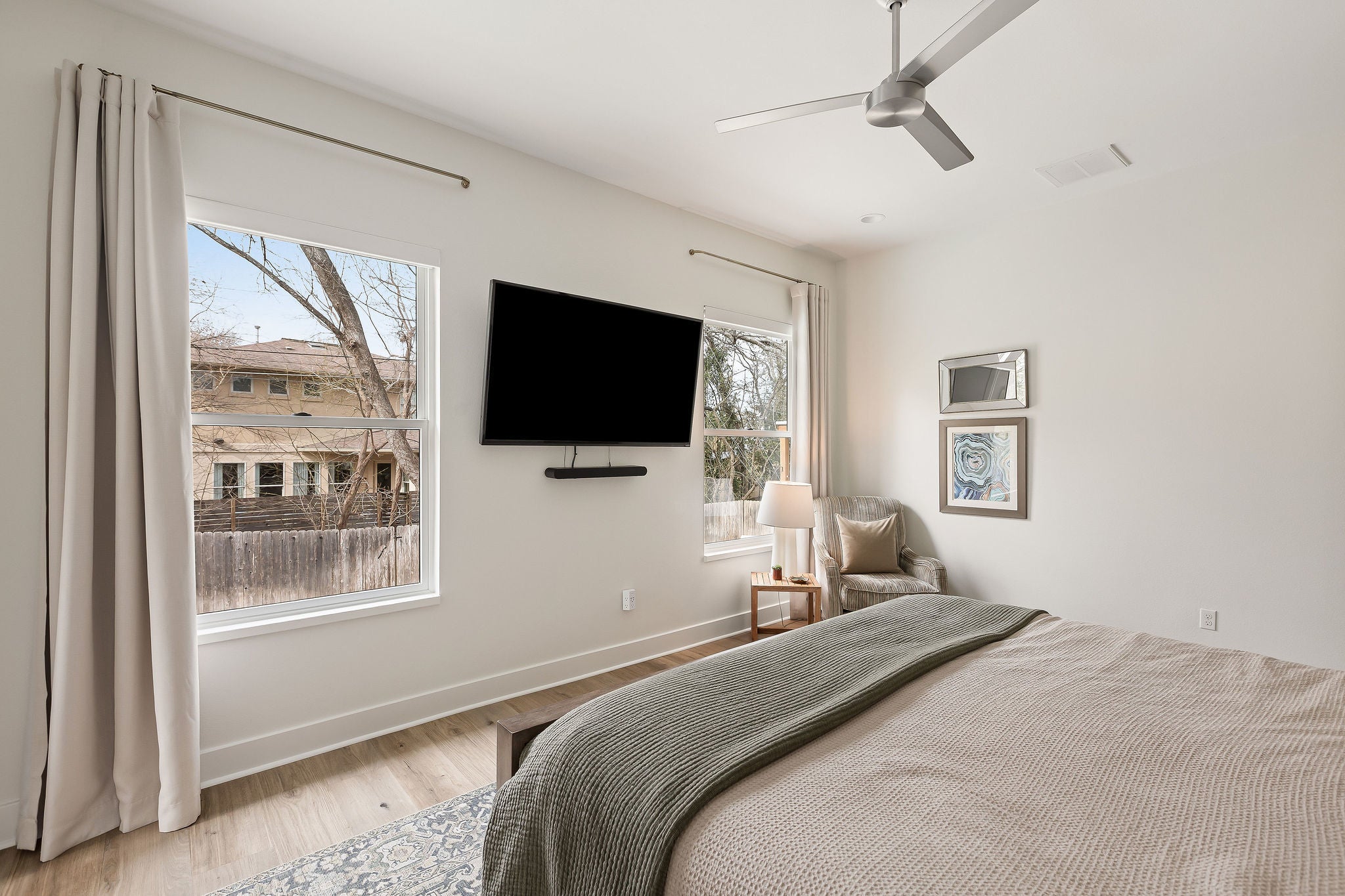 Built in 2016, this custom designed residence offers 3,189 square feet of thoughtfully curated living space. Soaring ceilings and walls of glass flood the interiors with natural light. The home creates a seamless indoor outdoor connection and a refined yet welcoming atmosphere, ideal for both elegant entertaining and relaxed daily living. The primary level is designed for comfort and gathering. It features a chef’s dream kitchen that opens to a generous living area anchored by a striking fireplace. The main level primary suite is a true retreat, offering a spa inspired bath with a large walk in shower, soaking tub, dual vanities, and an expansive walk in closet. The second level features three well appointed bedrooms, each with a walk in closet, along with two bathrooms. A spacious bonus area provides flexible additional living space and complements the home’s functional and refined layout. The private backyard is a true oasis. It features a heated pool and spa, a casual hangout area perfect for weekend barbecues or relaxed outdoor gatherings, and a screened in porch. Served by the award winning Casis Elementary and within walking distance of Tarrytown Park and the popular Littlefield’s, this home offers easy access to downtown Austin and a perfect blend of comfort, convenience, and location.