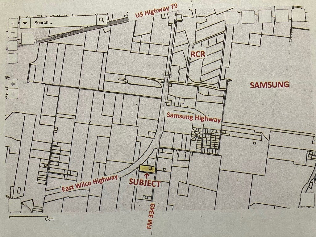 LOCATION...the Subject Site is near Samsung Taylor's 1200+ acre multi Billion Fab and the 700+ acre RCR Rail Logistics Park. The subject has almost 600 FF on West Side FM 3349 and adjacent to section 2 of the East Wilco Highway Southeast Loop currently under construction connecting Toll 130 and SH 79. Subject property being approximately 1 mile south of Samsung Highway entrance and just south of the Hutto Mega Site this tract is in the Hutto ETJ situated between 2 Proposed subdivisions being the 390 Acre Waymaker Subdivision and across from the 762 Acre Cielo Ranch Master Planned Community. Current use is Ag and all structures are functional however property is being offered as land value. Appointment required to enter property or tour structures. Buyer is responsible to verify ALL school info and proposed uses allowed for Hutto ETJ. Elec and Jonah Water meter connected on site. Crops retained by seller. Do not drive on property