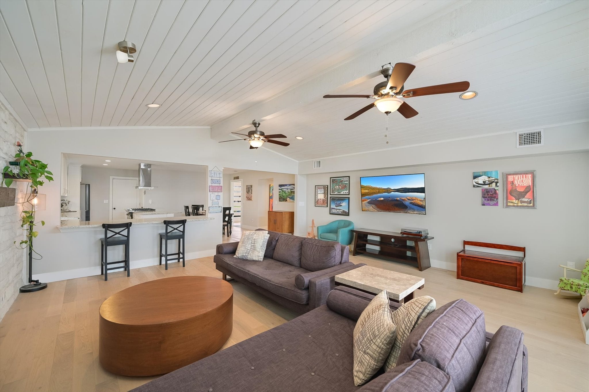 This Allandale home offers a charming blend of mid-century character and refined modern living. With 1,932 square feet of beautifully appointed living space in the main residence, PLUS a 120-square-foot detached and air-conditioned studio retreat in the backyard, this 3 bedroom, 2 bathroom home delivers a lifestyle of both comfort and versatility. You can rest easy knowing the big ticket items are handled with a newer roof (2024 with premium 25-year shingles) & recent HVAC (Nov 2022). Architectural details that define a bygone era of thoughtful craftsmanship, including a dramatic stone fireplace feature wall and distinctive triangular windows, lend the home an air of warmth and sophistication. Every interior space has been thoughtfully elevated to meet the expectations of discerning buyers. The spacious, chef-inspired kitchen boasts timeless granite countertops, sleek modern cabinetry, gas range, and a full suite of stainless steel appliances. The primary suite is a sanctuary unto itself, featuring a sitting area, en suite bathroom with a frameless walk-in glass shower and dual vanity, and a custom-fitted walk-in closet outfitted with built-in storage solutions that blend organization with aesthetic appeal. Carry your living outdoors when you step onto the backyard deck complete with a mounted television, built-in bar, and a well-equipped outdoor kitchen, ideal for effortless al fresco entertaining. From the bonus backyard studio to the thoughtfully upgraded systems throughout, this is a rare opportunity to own a home where every detail has already been considered.