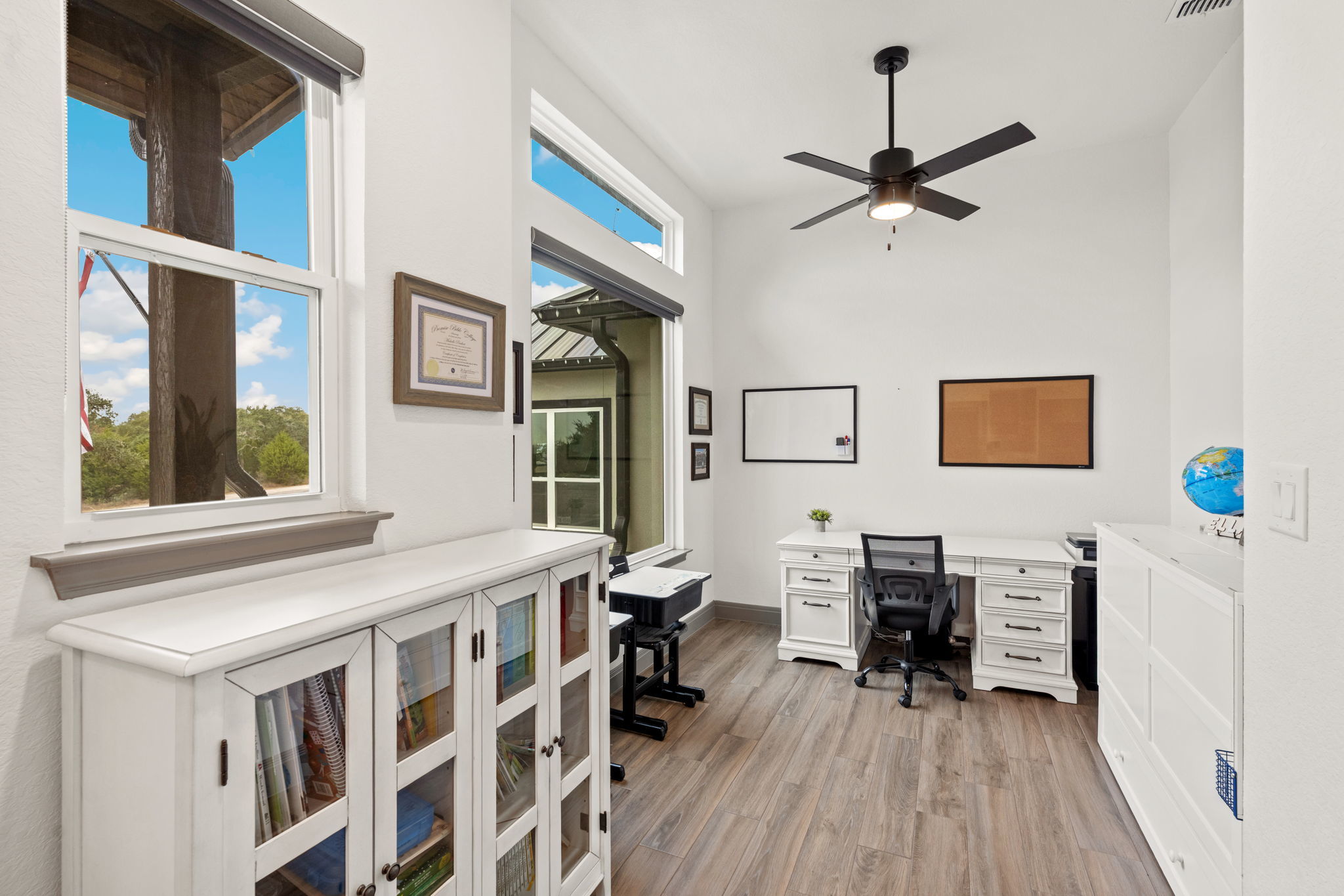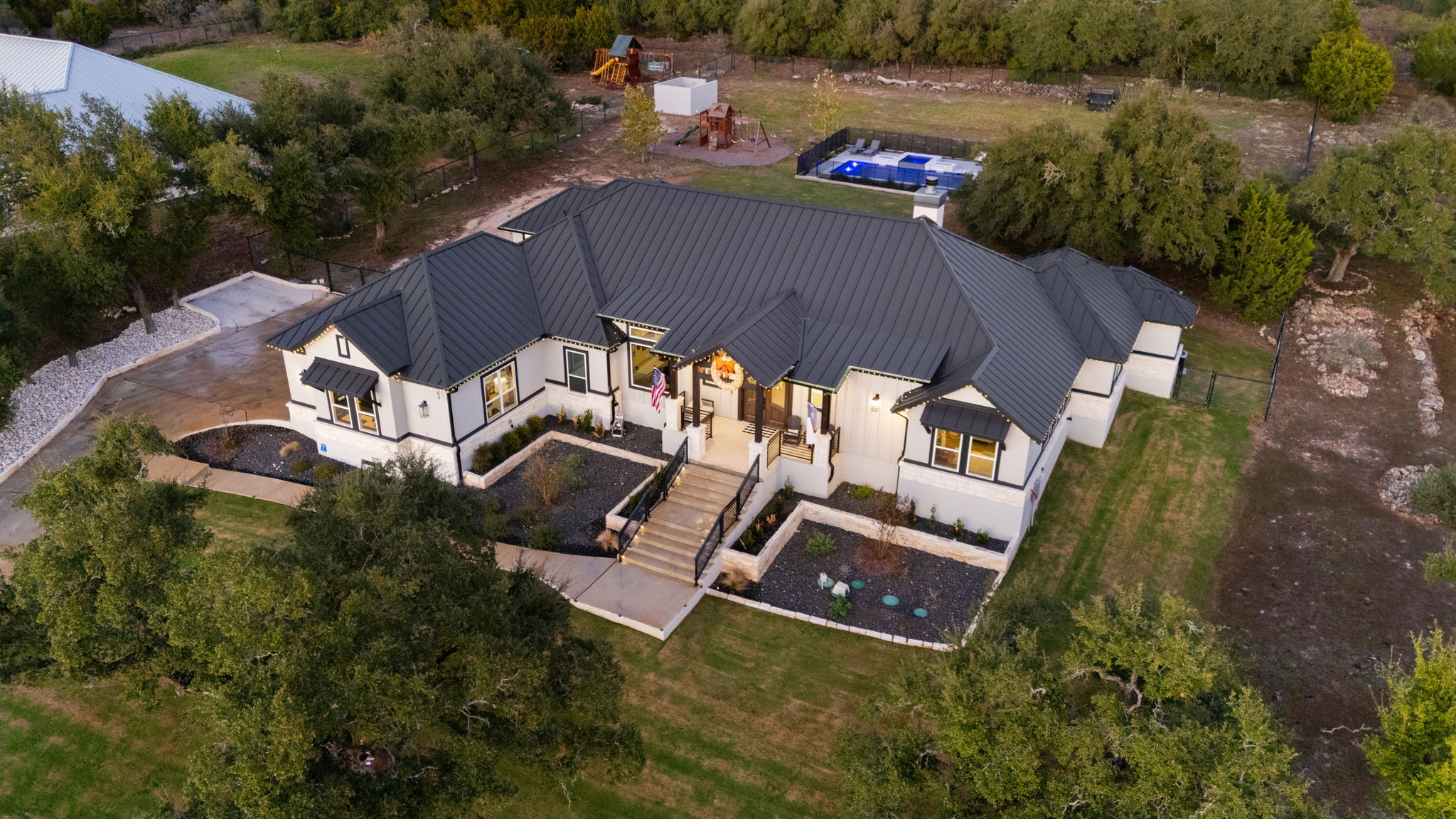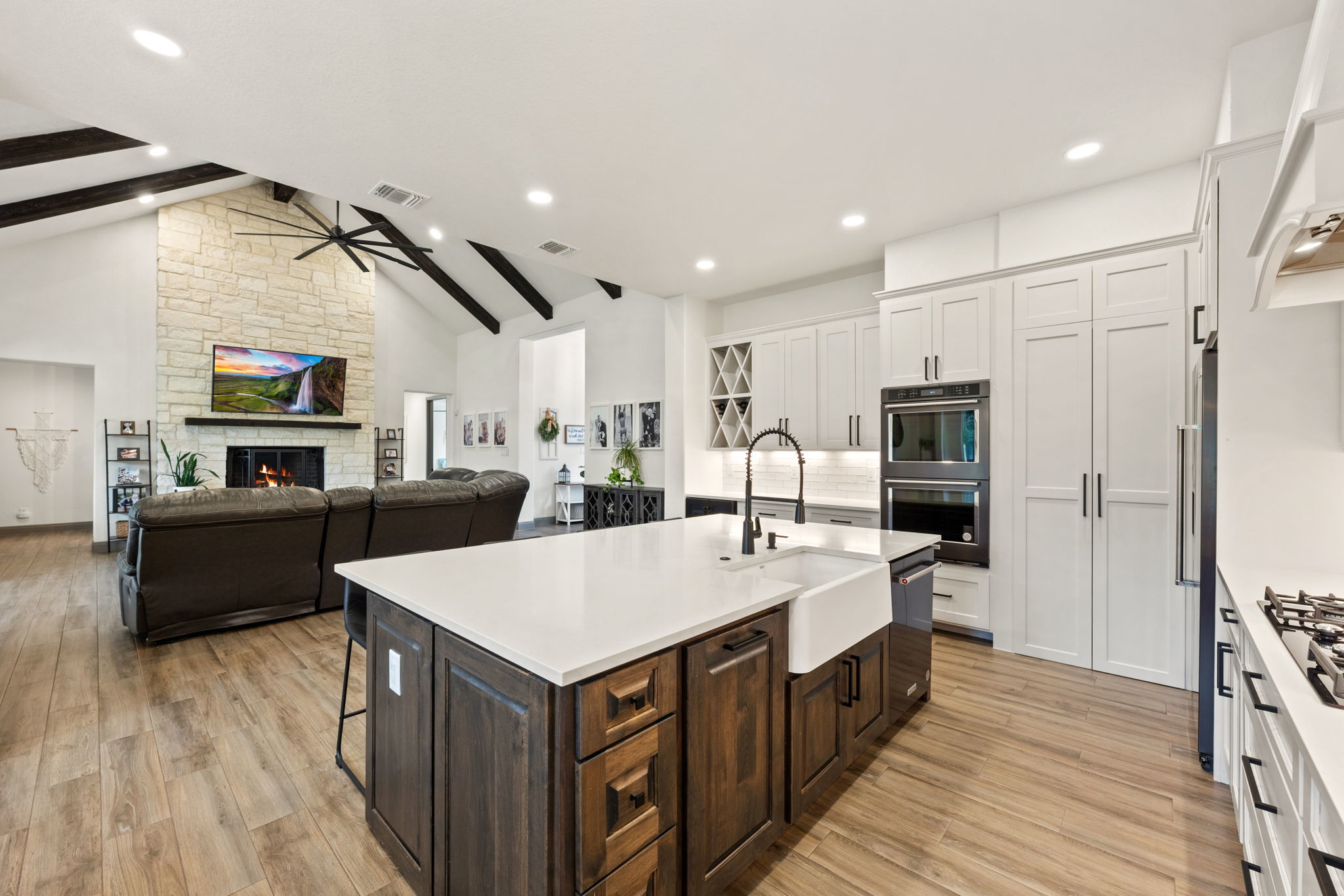 Experience Hill Country luxury at its finest in this KC Custom masterpiece, perfectly situated in the exclusive gated Provence section of Vintage Oaks. This 4-bedroom, 3.5-bathroom home blends timeless craftsmanship with modern elegance, offering an office, a spacious bonus room, and a three-car garage. Inside, you'll find an open-concept living space with soaring ceilings, designer finishes, and expansive windows that flood the home with natural light. The gourmet kitchen features custom cabinetry, high-end appliances, and a generous island-ideal for gathering and entertaining. The serene primary suite offers a spa-like bathroom and a private retreat away from the secondary bedrooms. Step outside to your own resort-style backyard, complete with a sparkling pool, relaxing spa, and multiple covered seating areas perfect for year-round enjoyment. Located in one of New Braunfels' most sought-after communities, you'll enjoy access to resort-style amenities, including pools, a fitness center, walking trails, and more-all just minutes from dining, shopping, and top-rated schools. This home is more than a place to live-it's a lifestyle.