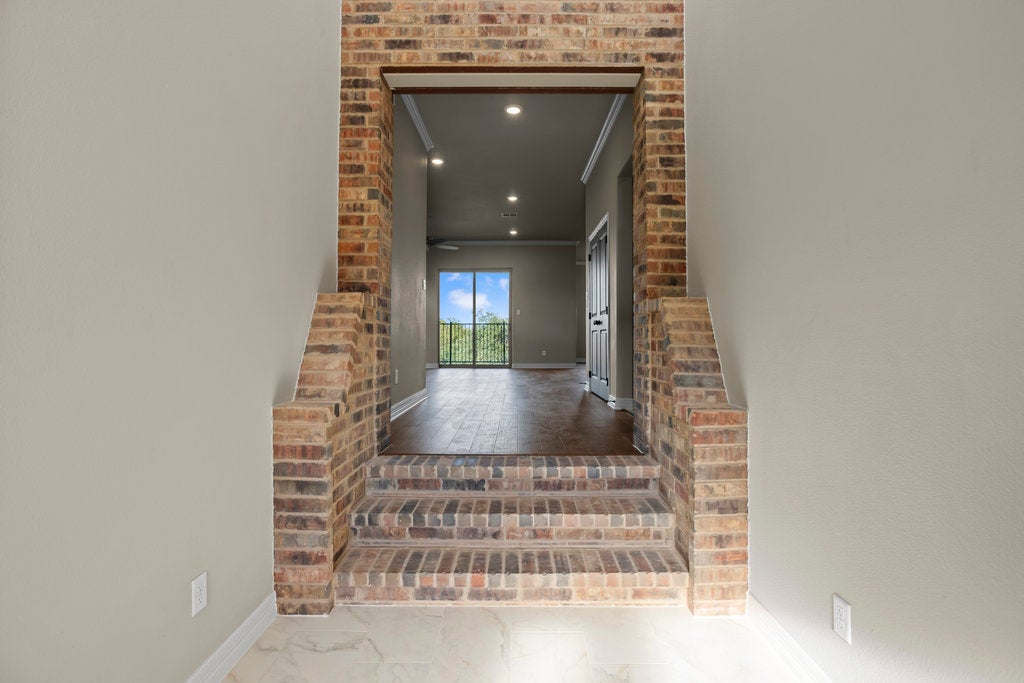 STUNNING THREE STORY NEW CONSTRUCTION HOME READY FOR MOVE-IN & PRICED TO SELL located in a gated community, oversized lot within Belton ISD offering a combination of luxury and space. The main level welcomes you with a breathtaking grand brick archway foyer. The first living room features a walkout balcony overlooking the serene greenbelt with no rear neighbors, a cozy fireplace, solid wood floors throughout the area. The kitchen is a dream with a gas cooktop oven, second built-in oven, large center island, granite countertops, ample built-in storage, and stunning modern lighting. The private office on the main floor features an accent wood beam cathedral ceiling and storage. The spacious primary suite is a private retreat with views of the peaceful greenbelt, en suite bathroom, and a large walk-in closet with built-in shelving. The spa-like bath includes a walk-in shower equipped with rain showerhead, freestanding tub perfect for relaxing and dual vanities for convenience. THE HIGHLIGHT IS THE FULLY FINISHED WALKOUT BASEMENT located on the bottom level. An expansive area perfect for a flex space, home theater, gym, or office, convenient patio door that opens to the covered porch allowing you to step out to the backyard to enjoy the beautiful scenery. The top level you’ll find four additional bedrooms, Jack and Jill bathrooms, a generous living area with built-in shelving, and plenty of closet space. The open layout overlooks the foyer, showcasing the home’s architectural beauty. On the main level, this home also includes a mudroom and indoor laundry room with sink and cabinets adding convenience, includes a three-car garage, fully landscaped yard, sprinkler system, and covered front porch. Benefits of new construction are the brand new major systems! Located near Belton Lake, charming downtown Belton, grocery stores, and everyday conveniences. This home has been priced by the builder to sell quickly, bring your best offer!