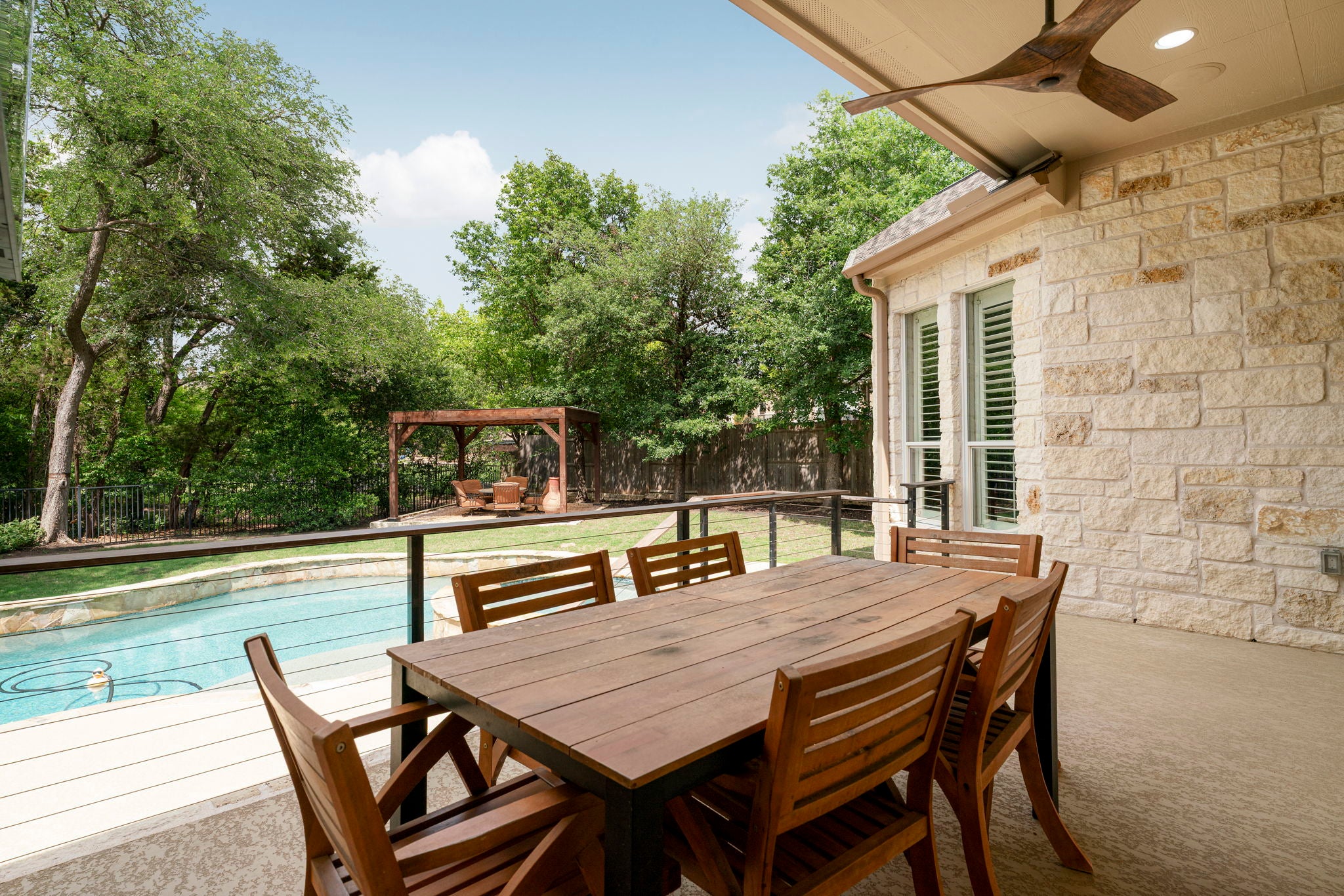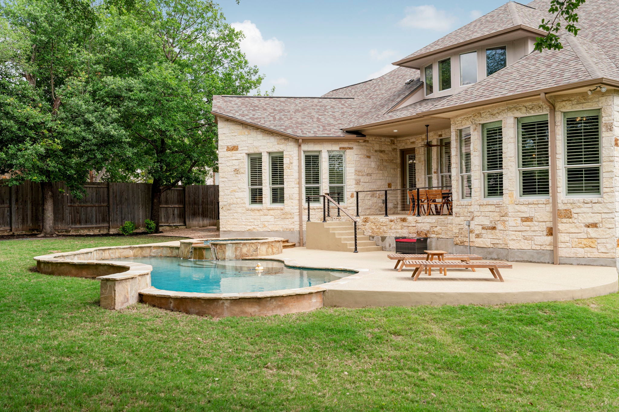 25K Painting allowance! POOL! GREENBELT! Tucked into the heart of Belterra, this expansive home at 241 Granite Lane delivers the ideal blend of comfort, functionality, and outdoor living with 5 bedrooms, 3.5.5 bathrooms, a dedicated study, game room and theatre. Thoughtfully designed with a spacious layout, the home offers multiple living areas that provide flexibility for everyday living and entertaining, including a large main living room, formal living room, two study nooks, a dedicated study, and media space. The kitchen anchors the home with generous workspace and storage, opening seamlessly to the living and dining areas to create an easy, connected flow. Step outside to a true backyard retreat, now complete with a recently added pool and spa—perfect for relaxing evenings, weekend gatherings, or enjoying the Hill Country sunshine year-round. The outdoor living space extends the home beautifully, offering both privacy and room to unwind. With well-proportioned bedrooms, dedicated spaces for work and play, and a layout that lives comfortably for both daily life and hosting, this home checks all the boxes. Located within DSISD and just minutes from Belterra Village, local dining, shopping, HEB, and a quick drive into Austin, the location pairs convenience with the charm of Hill Country living. $25K painting credit at closing- choose your interior paint! New carpeting just installed.