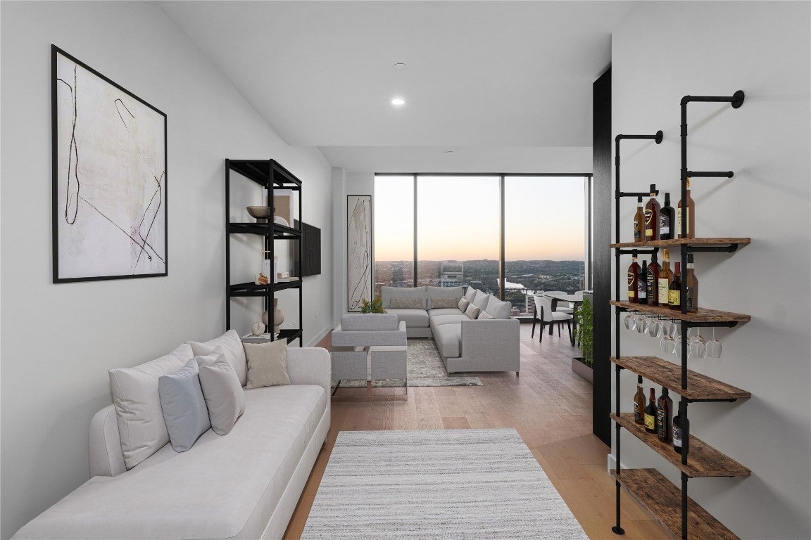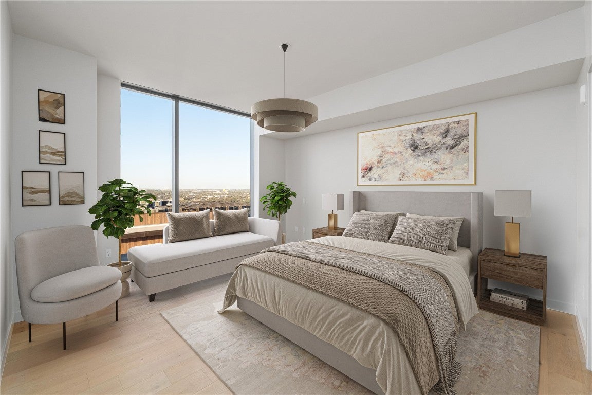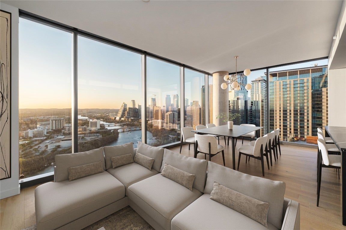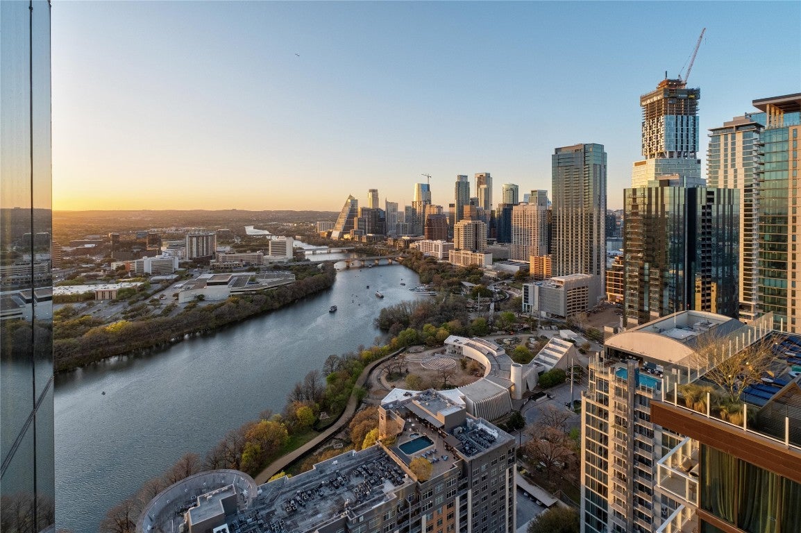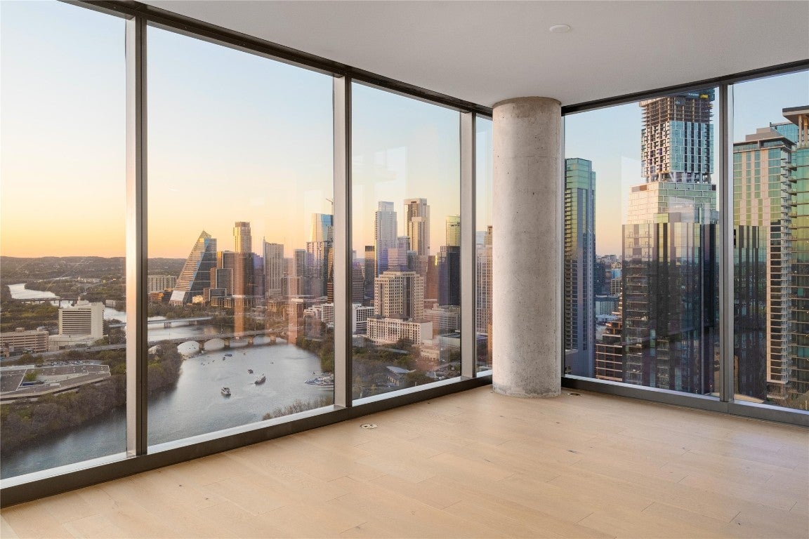 Experience the pinnacle of luxury living in Downtown Austin. This 3 Bed, 2 Bath unit, situated on the Northwest corner of 44 East. **This unit has NEVER been lived in. **It’s a blank canvas for anyone wanting to design their home from scratch. Floor to ceiling windows offer breathtaking panoramic views of the city. Bathed in natural light, the open concept living area features light hardwood floors that contrast perfectly with the contemporary dark Italian cabinetry & black quartz countertops & backsplash. Anchored by a waterfall island, the chef’s kitchen is equipped with Bosch appliance package including gas cooktop, built-in oven, integrated refrigerator, & wine fridge, perfect for entertaining. Surrounded by walls of windows, the city skyline serves as the perfect backdrop to every dinner party. Step onto the balcony to enjoy twilight views over Lady Bird Lake. Retreating to the primary suite feels like you’ve stepped into a luxurious hotel. Beyond your front door, 13,000 sqft. of impressive amenities are at your fingertips. Relax by the cenote pool & outdoor lounge with grilling area. Spoil your four-legged friend at the dog park or pet lounge & spa. Work out in the fitness center & yoga studio. Conference rooms, great room with caterer’s kitchen & 37th floor sky lounge & terrace are available for business or events. Guest suites offer a private space for visitors. The concierge staff is at your service 24/7. Rainey Street offers a vibrant nightlife & award winning restaurants are a short walk away. Active outdoor enthusiasts will appreciate easy access to the Lady Bird Hike & Bike Trail.