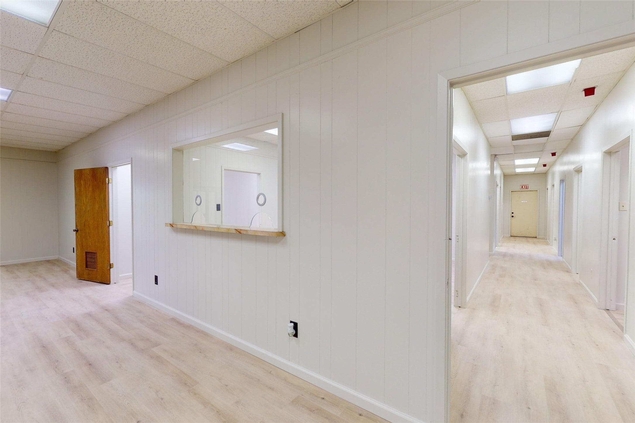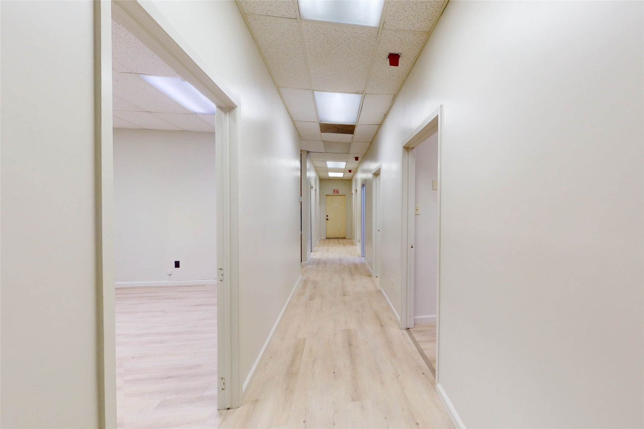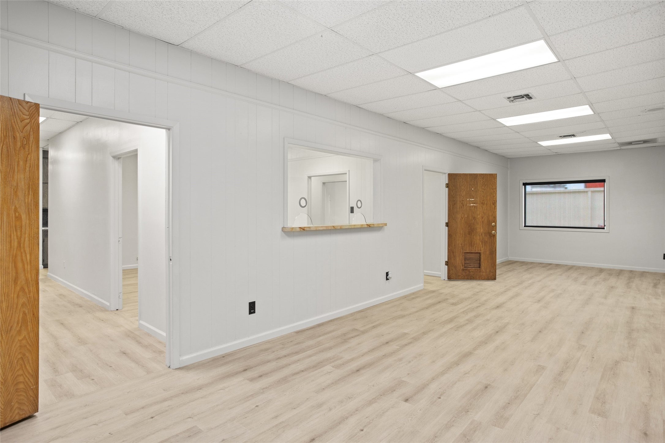Located a block from Hwy 290 and FM 141, this 2,000/SF commercial business space has been tastefully renovated to accommodate nearly any situation! New A/C, electrical, flooring, keypad entry, and exterior security cameras are just a few of the key updates. A shared common entry includes public bathrooms. The West Wing office suite contains a spacious reception area, 6 offices, a large conference room, two private bathrooms, a kitchen, and multiple storage areas. Water, sewer, fiber internet, once-weekly dumpster pick up, and yard maintenance are all included in the lease.