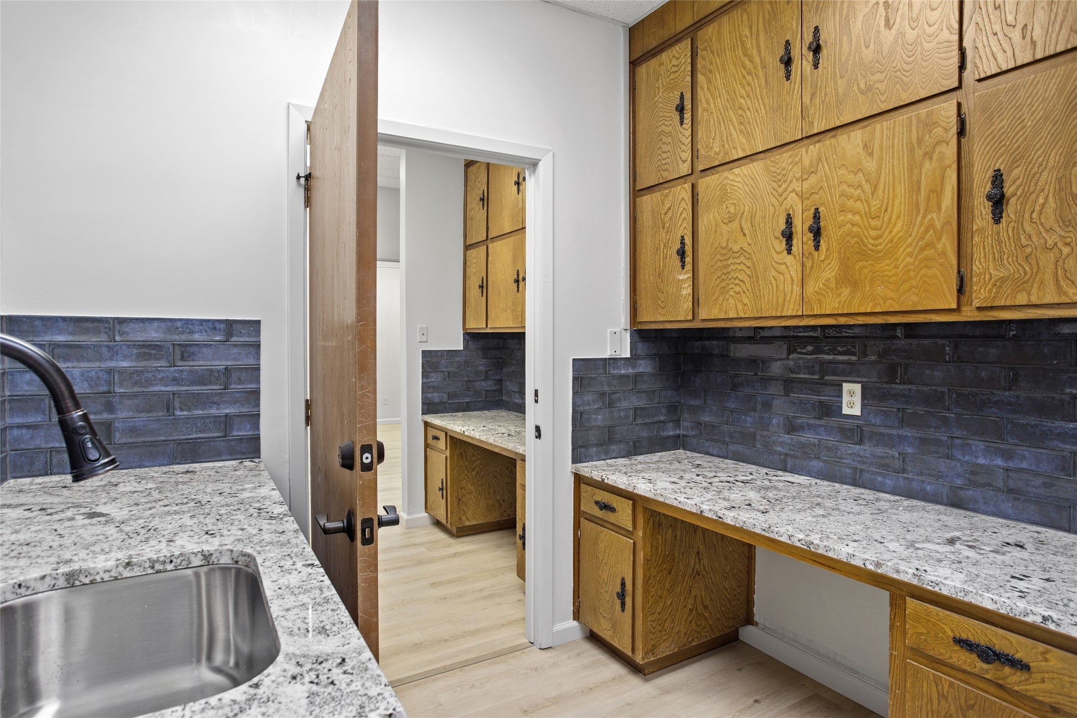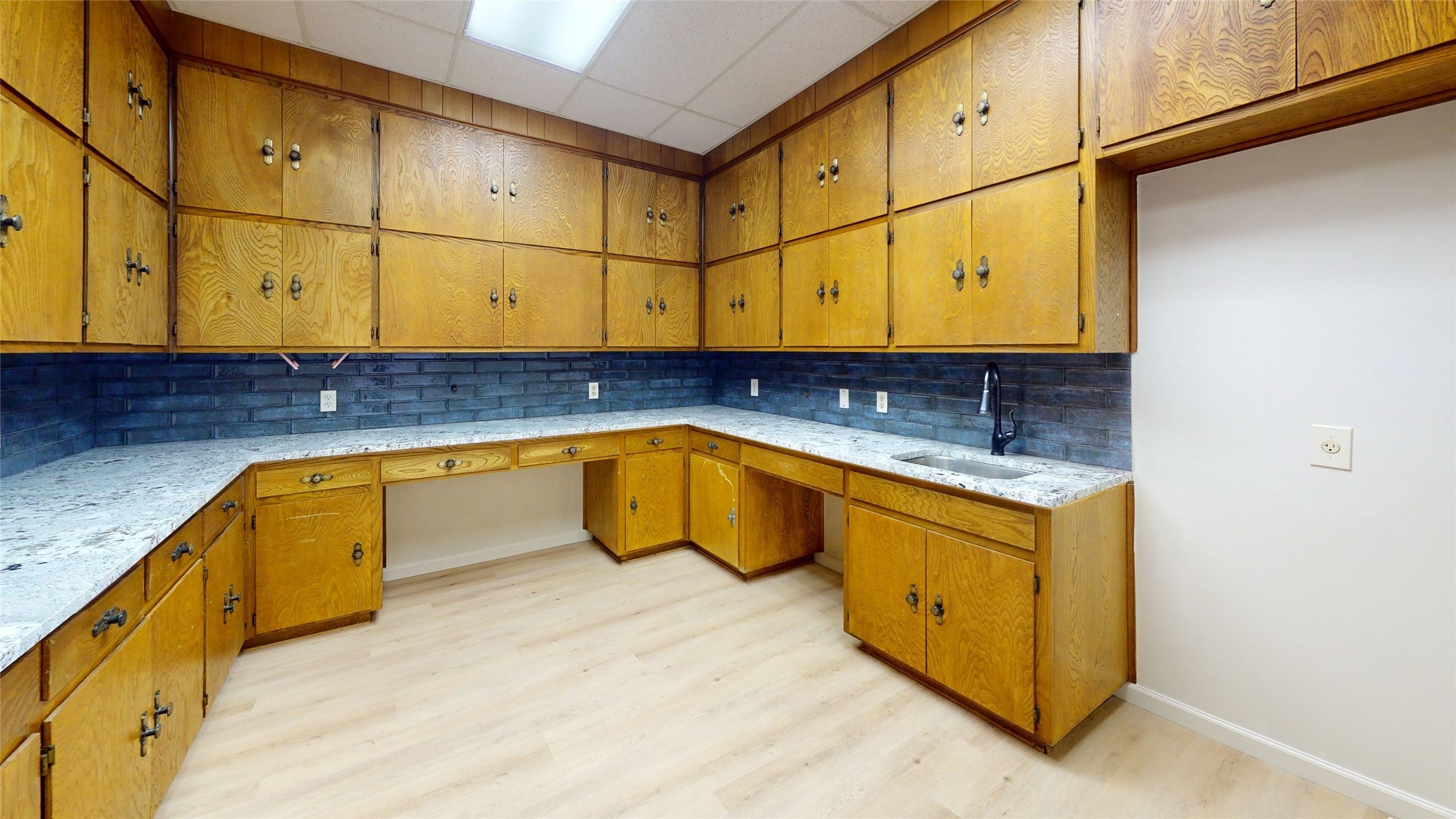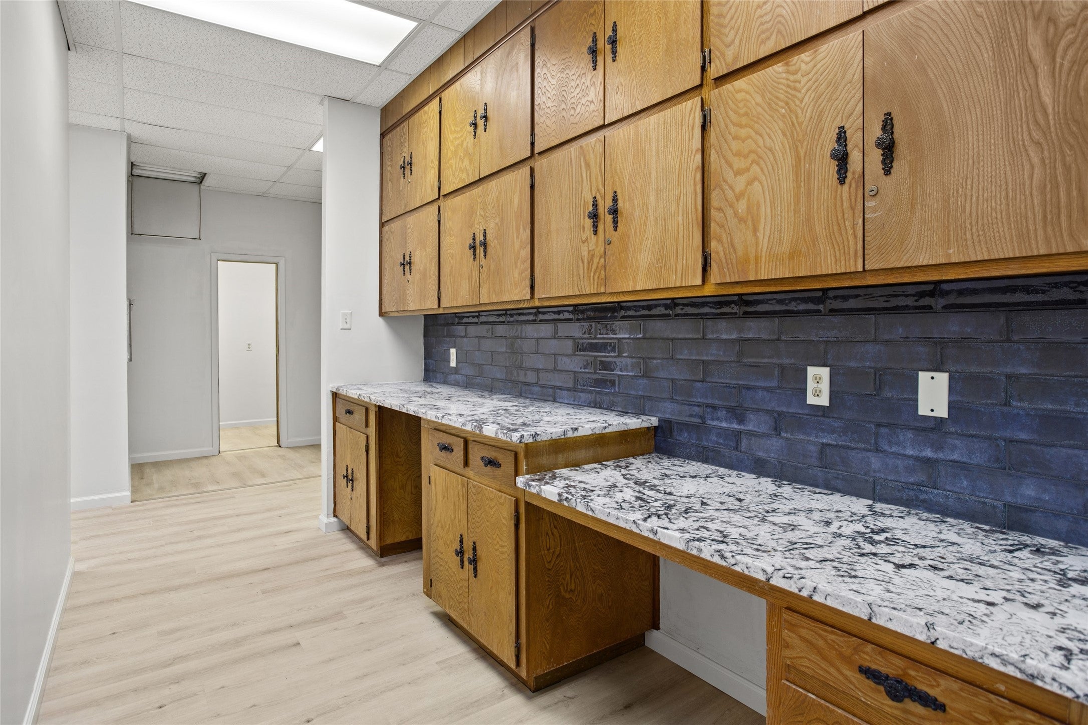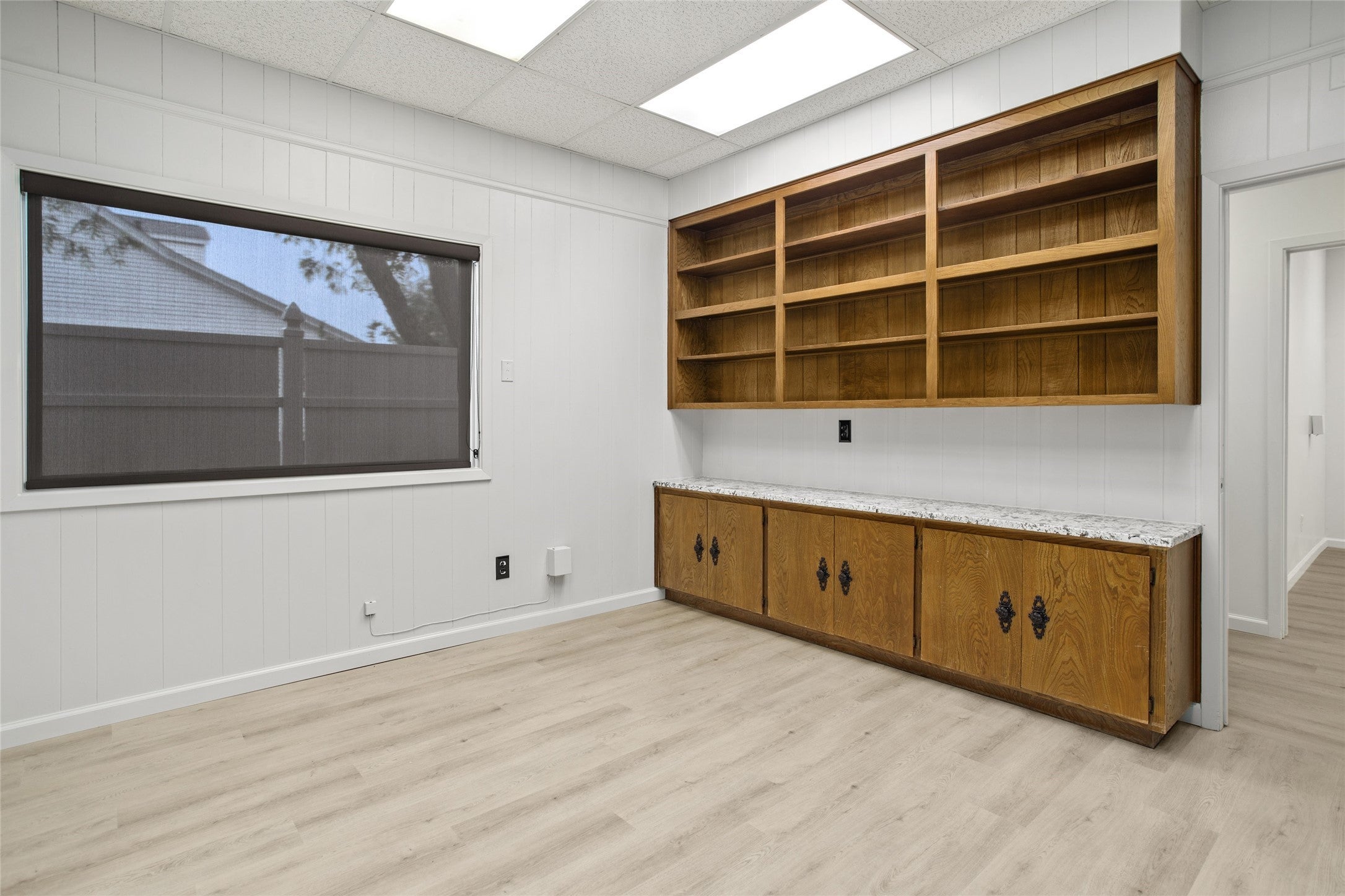 Located a block from Hwy 290 and FM 141, this 2,000/SF commercial business space has been tastefully renovated to accommodate nearly any situation! New A/C, electrical, flooring, keypad entry, and exterior security cameras are just a few of the key updates. A shared common entry includes public bathrooms. The West Wing office suite contains a spacious reception area, 6 offices, a large conference room, two private bathrooms, a kitchen, and multiple storage areas. Water, sewer, fiber internet, once-weekly dumpster pick up, and yard maintenance are all included in the lease.