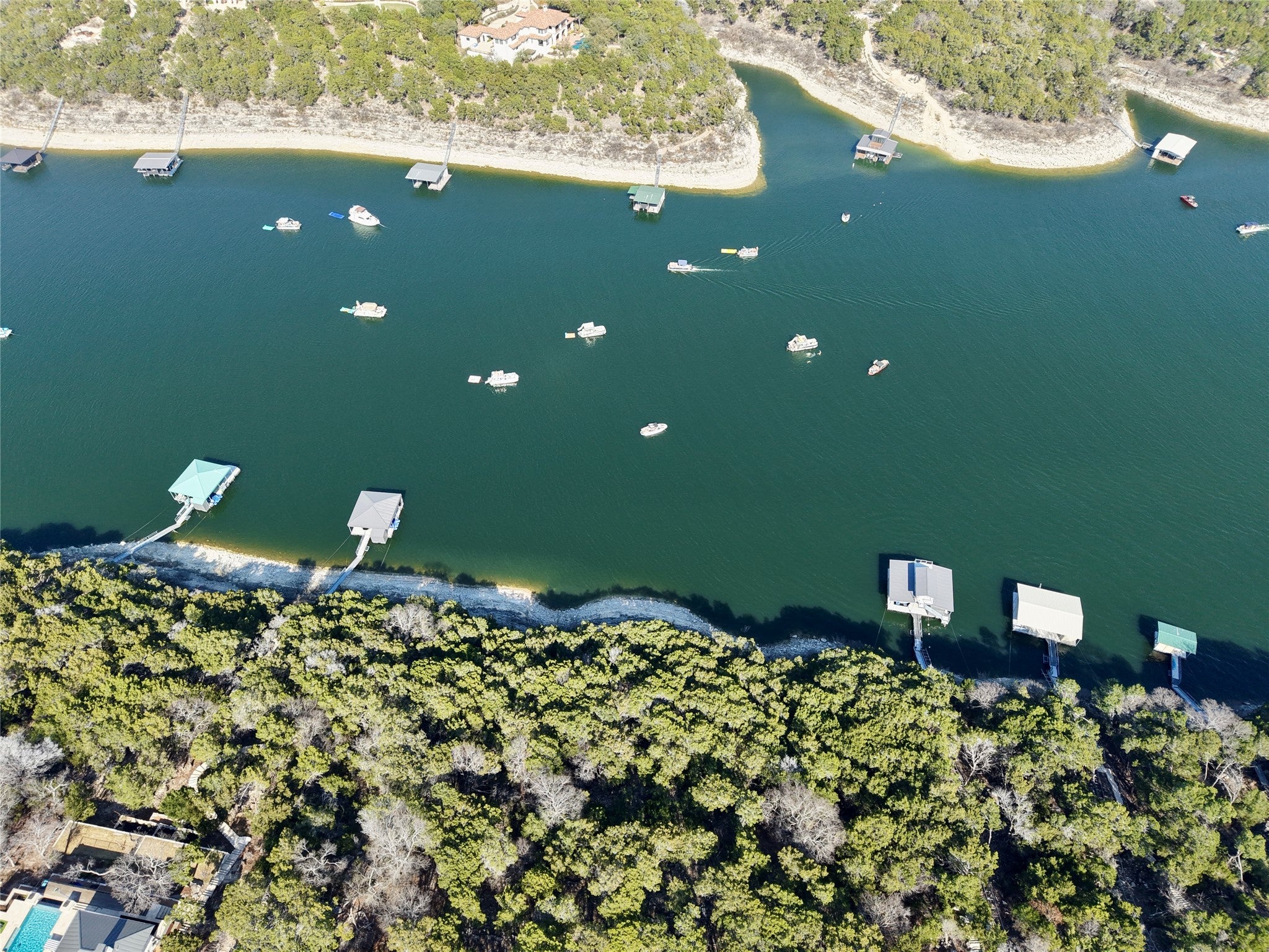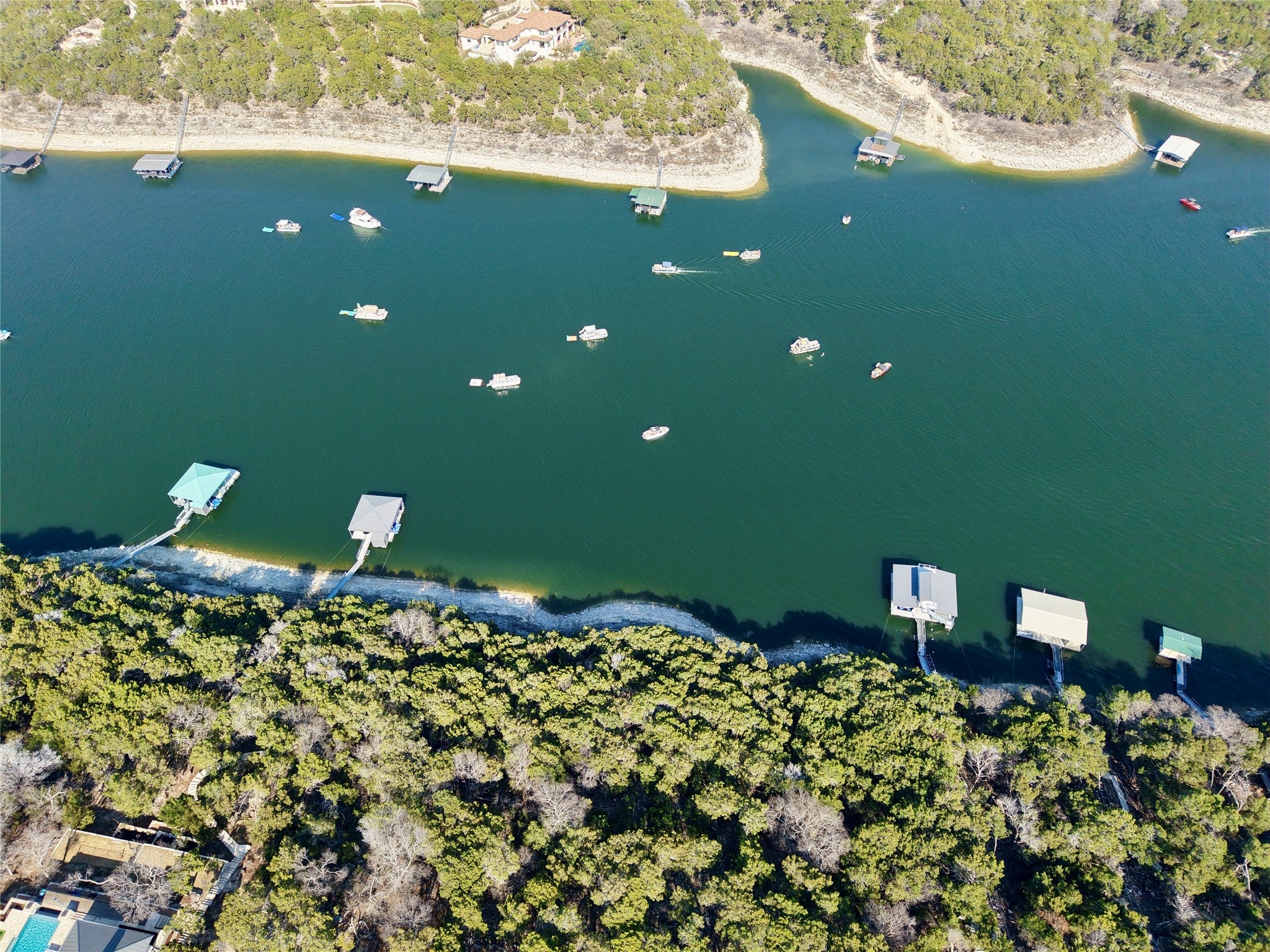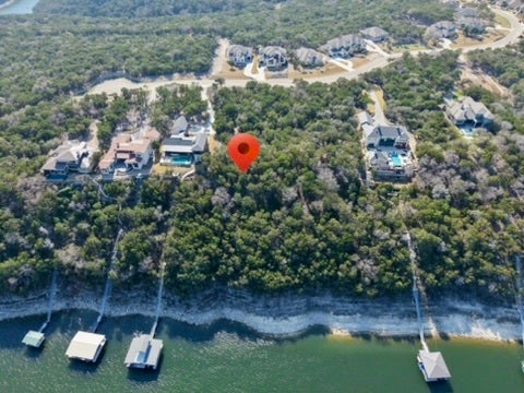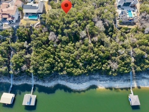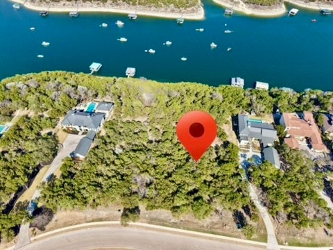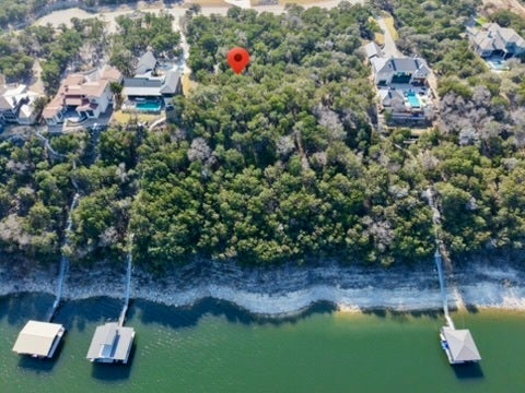 Rare 2-acre waterfront homesite in The Hollows on the North Shore of Lake Travis, offering breathtaking main body water views and exceptional privacy. Measuring approximately 100 x 495 feet, this deep, bluff-front lot extends toward the water and sits above a protected cove with deep-water potential. Boat dock is allowed (subject to LCRA approval), making this an extraordinary opportunity to create a true lakefront retreat. Mature trees, a generous and relatively flat build site near the street, and dramatic elevation toward the bluff provide the perfect canvas for a luxury custom home. A modern residence next door further enhances the streetscape and long-term value. Located within the highly sought-after Hollows community in Jonestown, this property enjoys access to resort-style amenities including the award-winning Beach Club with lakeside dining, multiple pools, fitness center, sports courts, playground, picnic areas, kayak dock, boat ramp, marina access, and miles of scenic hiking and biking trails. The Hilltop Smokehouse pavilion offers grills, a smoker, firepit, and panoramic Lake Travis views for unforgettable gatherings. Underground utilities are in place, and a 3,000 square foot minimum build ensures architectural integrity throughout the neighborhood. HOA dues cover access to community amenities. Just minutes from Northshore Marina (privately owned; inquire for slip availability) and approximately 40 minutes to Downtown Austin, this property combines natural Hill Country beauty, waterfront lifestyle, and strong long-term investment potential. Located in Lago Vista ISD. An exceptional opportunity to build your dream home in one of Lake Travis’ premier master-planned communities.