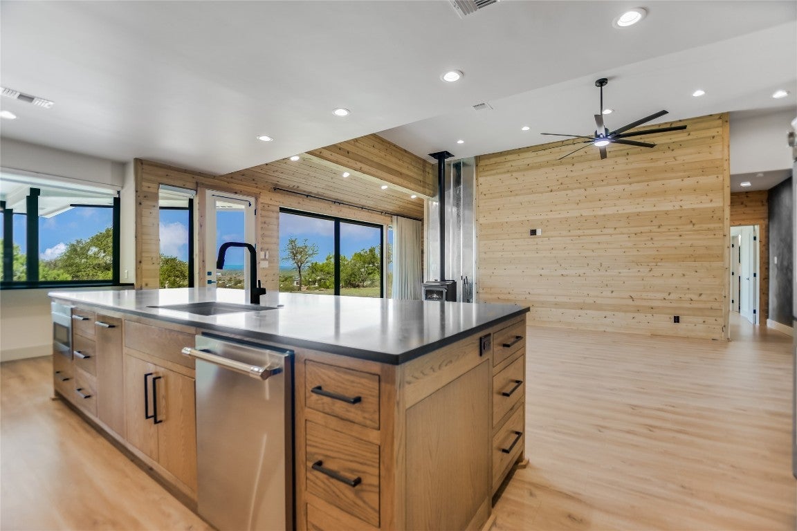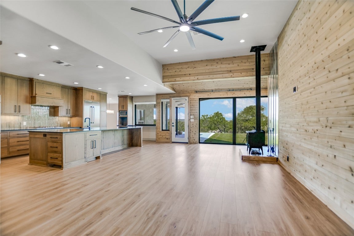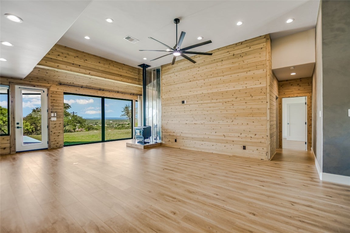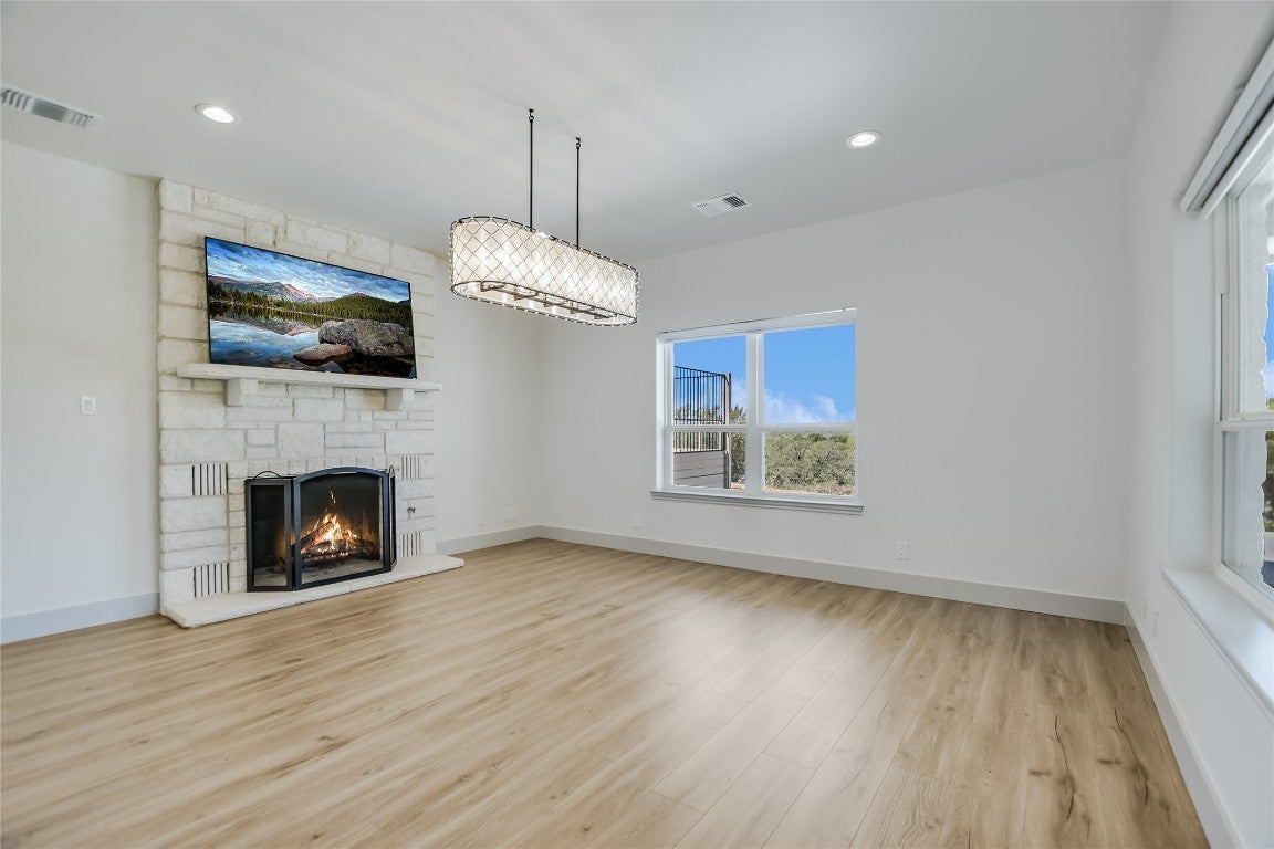 Fall in love with this impeccably renovated home set on a beautifully rolling 4.42-acre lot in the highly desirable gated acreage community of The Hills. Meticulously redesigned by the owner/builder, this residence underwent a complete transformation, including new windows, doors, flooring, plumbing, lighting, stucco, roof and much more. Only the finest materials were selected for this exquisite rebuild. Step inside to discover an expansive living area boasting soaring 12-foot ceilings, a cozy wood-burning stove, luxury vinyl plank flooring, knotty pine accent walls and floor-to-ceiling windows framing spectacular Texas Hill Country views. The gourmet kitchen is a chef's dream, featuring handcrafted cabinetry, elegant granite countertops, and top-of-the-line Thermador stainless steel appliances, including a 6-burner gas cooktop. The spacious primary suite includes a comfortable sitting area, an expansive custom walk-in closet, and a luxurious bath complete with dual granite-topped vanities, a standalone soaking tub, linear fireplace, and a beautifully tiled shower. Two additional bedrooms connected by a stylish Jack-and-Jill bathroom offer inviting accommodations for guests. Other amenities include a formal dining room with fireplace and wine room. Outdoors, relax on the spacious patio, appreciate lush grounds with mature trees, a raised-bed garden, large storage shed, and 2-car garage. Enjoy rural tranquility just minutes from Lake LBJ and Horseshoe Bay Resort. Schedule your showing appointment today!