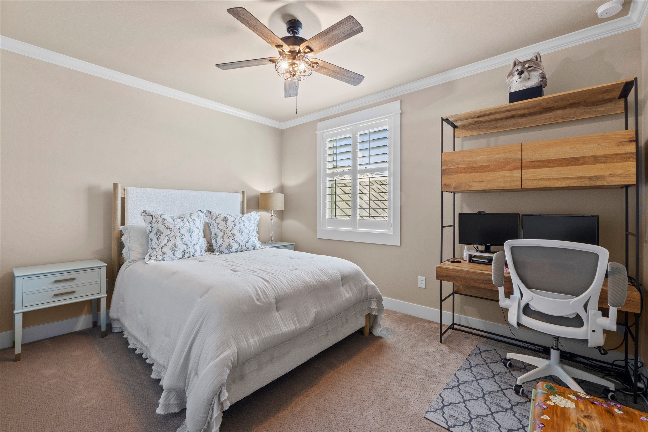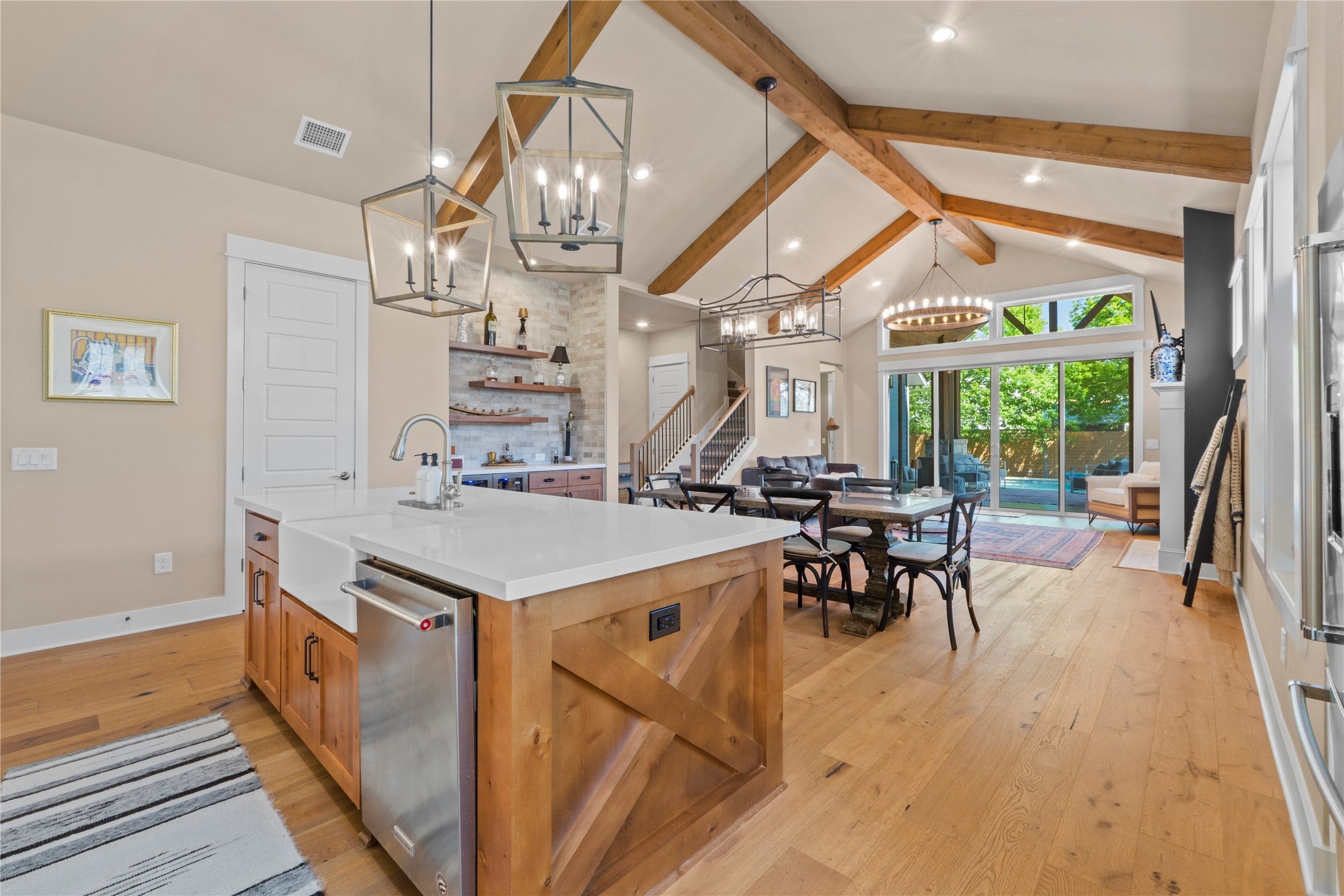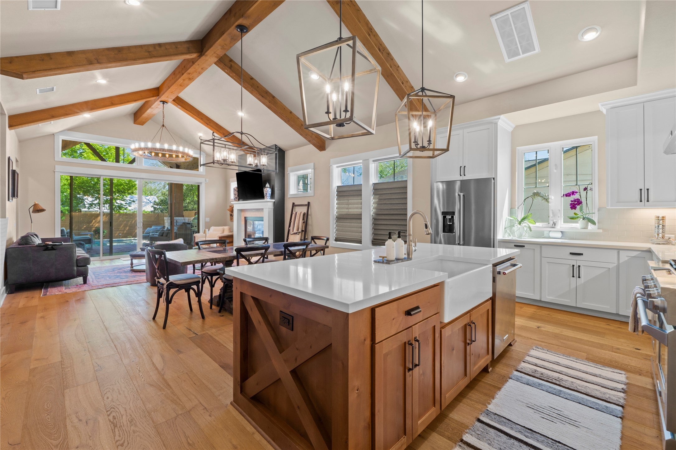Built in 2018, this beautifully crafted custom home offers thoughtfully designed living with 3 bedrooms, 2.5 bathrooms, and a dedicated office. Enjoy exceptional outdoor living with a stunning pool and spa, all complemented by a brand-new metal roof installed in 2024.The spacious primary suite is conveniently located on the main floor and features a luxurious, spa-like bathroom complete with a California Closets system. Upstairs, two additional bedrooms provide an ideal layout for both privacy and functionality. A half bath with exterior access adds convenience for poolside guests. Ideally located within walking distance to Brentwood Park and Brentwood Elementary, this home perfectly blends comfort and convenience. The open-concept kitchen impresses with vaulted ceilings, generous space, and a 7-burner cooktop paired with a double oven—perfect for cooking and entertaining. Additional highlights include a large laundry room and a functional mudroom just off the garage.