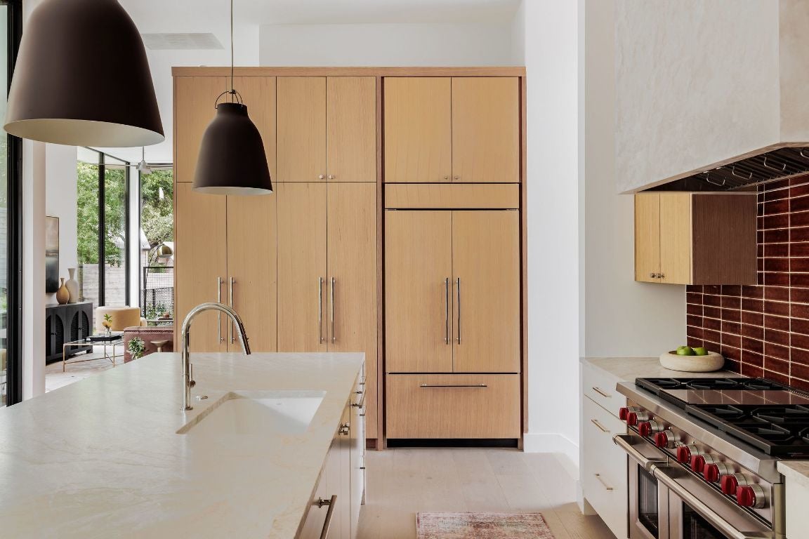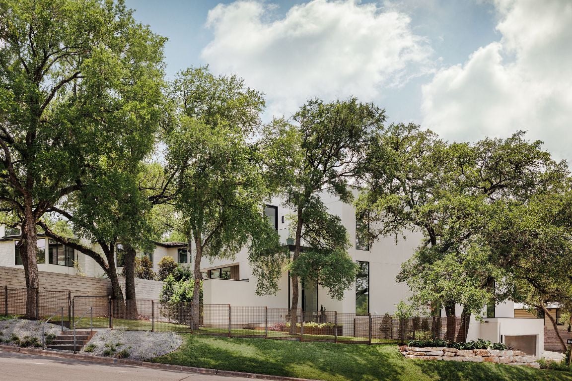 Welcome to the Belmond of Barton Hills— where architecture & atmosphere gracefully converge. Situated on one of the most coveted streets in Barton Hills, this newly completed residence extends an invitation to a life of quiet sophistication, set beneath a canopy of heritage live oaks on a large .27 of an acre lot. This home is Designed by FAB Architecture & offers an expansive 4,401 square feet of meticulously curated interiors. Each of the five bedrooms have five ensuite baths & two half baths for guests. The lush grounds, adorned with annual & evergreen plants, evoke the romance of a private garden estate. Imagine a stunning pool & yard that feels like your own personal Hotel St. Cecilia, inviting moments of serene contemplation & relaxation. You are greeted with an impressive 12-foot, Western Steel and glass pivot door. The main level offers twelve ft. ceilings, wide-plank European white oak floors, Level 5 smooth drywall, alongside plastered accents including the fireplace & the primary bath. The kitchen embodies elemental luxury, with rift white oak cabinetry, Taj Mahal countertops & hand-fired clay tiles. Sub-Zero & Wolf appliances. This space flows effortlessly into a welcoming family room anchored by an oversized elegant fireplace. Upstairs, the primary suite offers a personal sanctuary. The Primary bath offers Calacatta Gold marble floors & countertops. Venetian plastered walls in the en suite bath frame a soaking tub, generous shower, and dual vanities, echoing the serenity of a world-class spa. Modern comforts abound yet remain subtle: a private elevator, 8-foot solid white oak doors, prewired for sound with outdoor speakers & dual HVAC units seamlessly integrated through linear mud-in diffusers. The exterior, with Integral Stucco and Western oversized windows & doors, exudes quiet confidence—a contemporary form softened by timeless detail. This is more than a home; it's a destination for those who navigate the world with style, presence & ease.