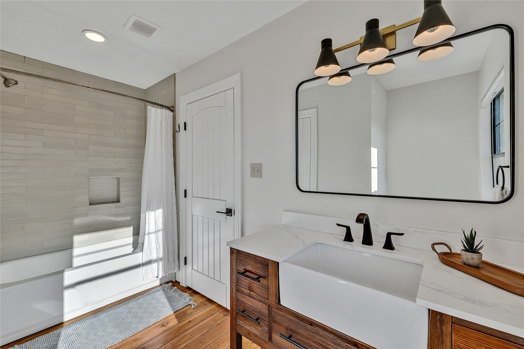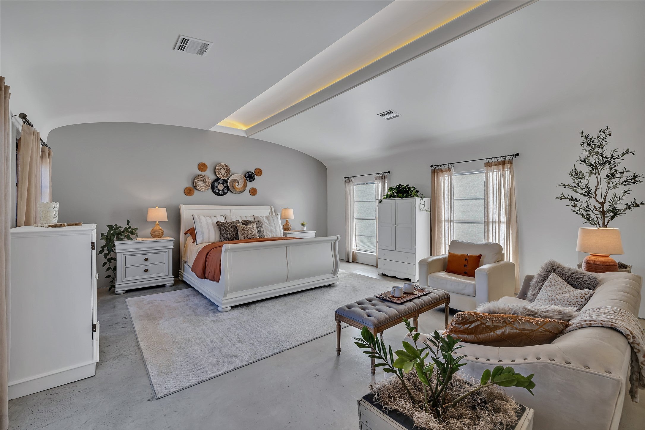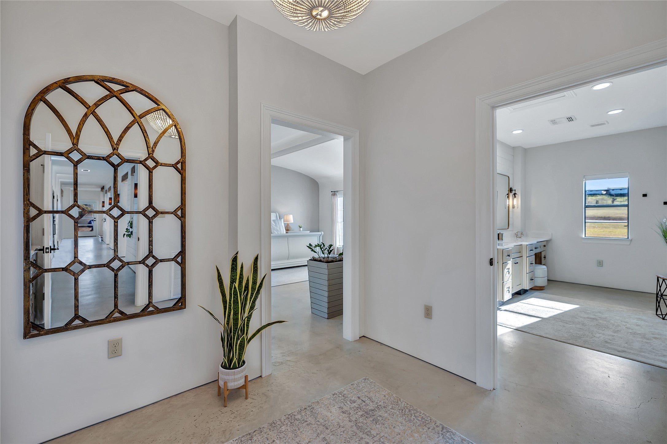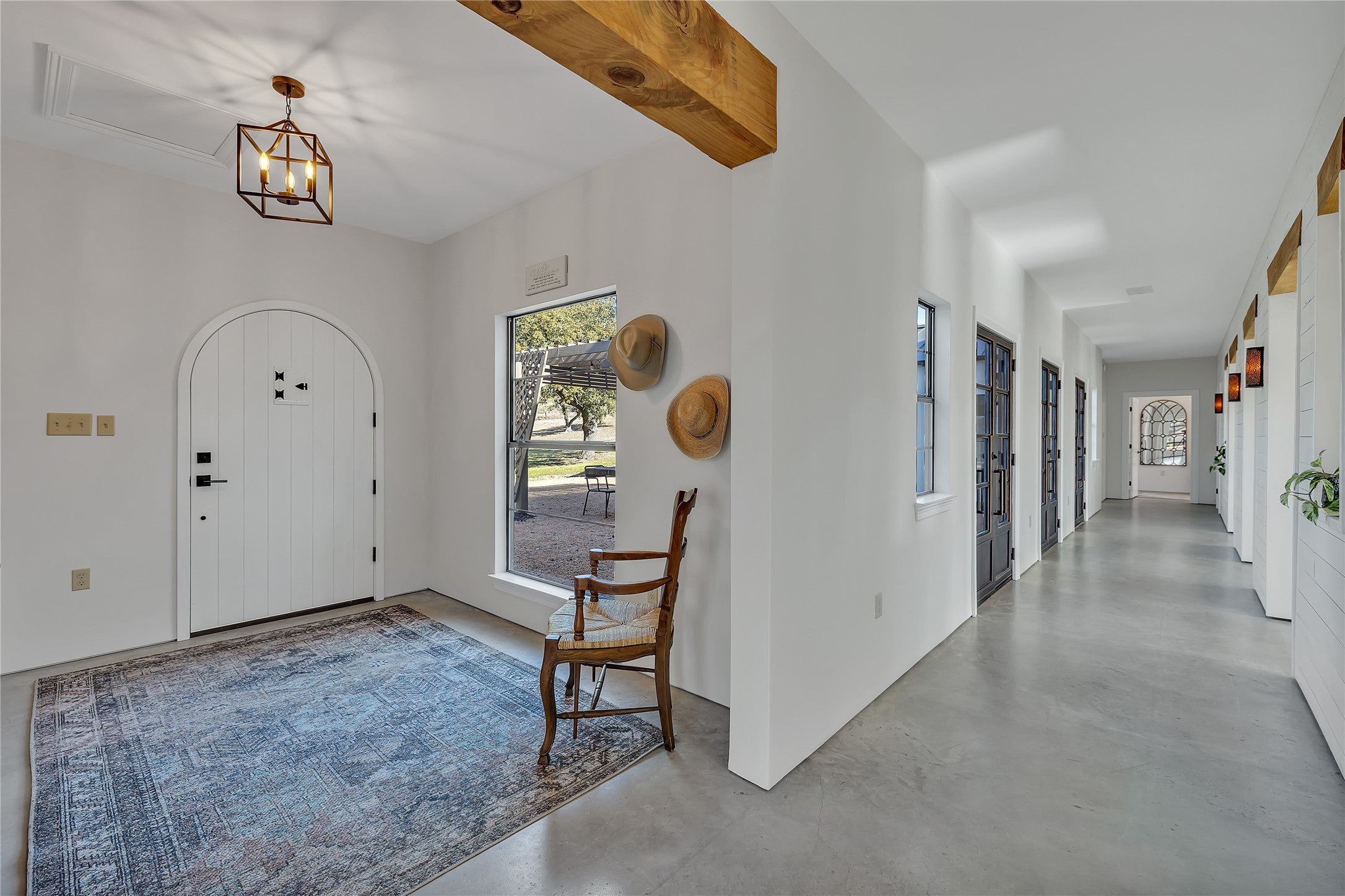 Set on 4.087 acres in the Texas Hill Country, this modern farmhouse offers luxury and comfort in a prime location near Fredericksburg, Comfort, and Kerrville. Thoughtfully designed, this two-story home features 4 bedrooms, 3.5 bathrooms, and elegant details throughout. Inside, heated floors, recessed mood lighting, and limestone walkways create an inviting atmosphere. The chef’s kitchen is equipped with high-end appliances, quartz and woodblock countertops, an 11-foot island, and a butler’s pantry, seamlessly connecting to the dining and living areas, where rustic beams, a brick accent wall, and a wood-burning fireplace add warmth and character. Expansive steel entry doors on both sides open to a picturesque yard, perfect for outdoor entertaining. The primary suite, privately located in the east wing, provides a peaceful retreat with arched ceilings, custom lighting, and a spa-like en suite featuring a freestanding tub, heated stone bench, dual vanity, and spacious dressing room. A private office adjacent to the suite is ideal for work or relaxation. Upstairs, three additional bedrooms, two full baths, and a bright family room with hardwood floors offer comfort and space for family or guests. Outside, a detached oversized garage provides room for two cars, a golf cart or ATV, and extra storage. A versatile 36x30 barn, currently used as a horse barn, can easily be adapted to suit different needs. With HOA approval for two large animals, the property is well-suited for horses or even Texas Longhorns. More than just a home, this is a Hill Country retreat, where luxury, tranquility, and thoughtful design come together in perfect harmony.
