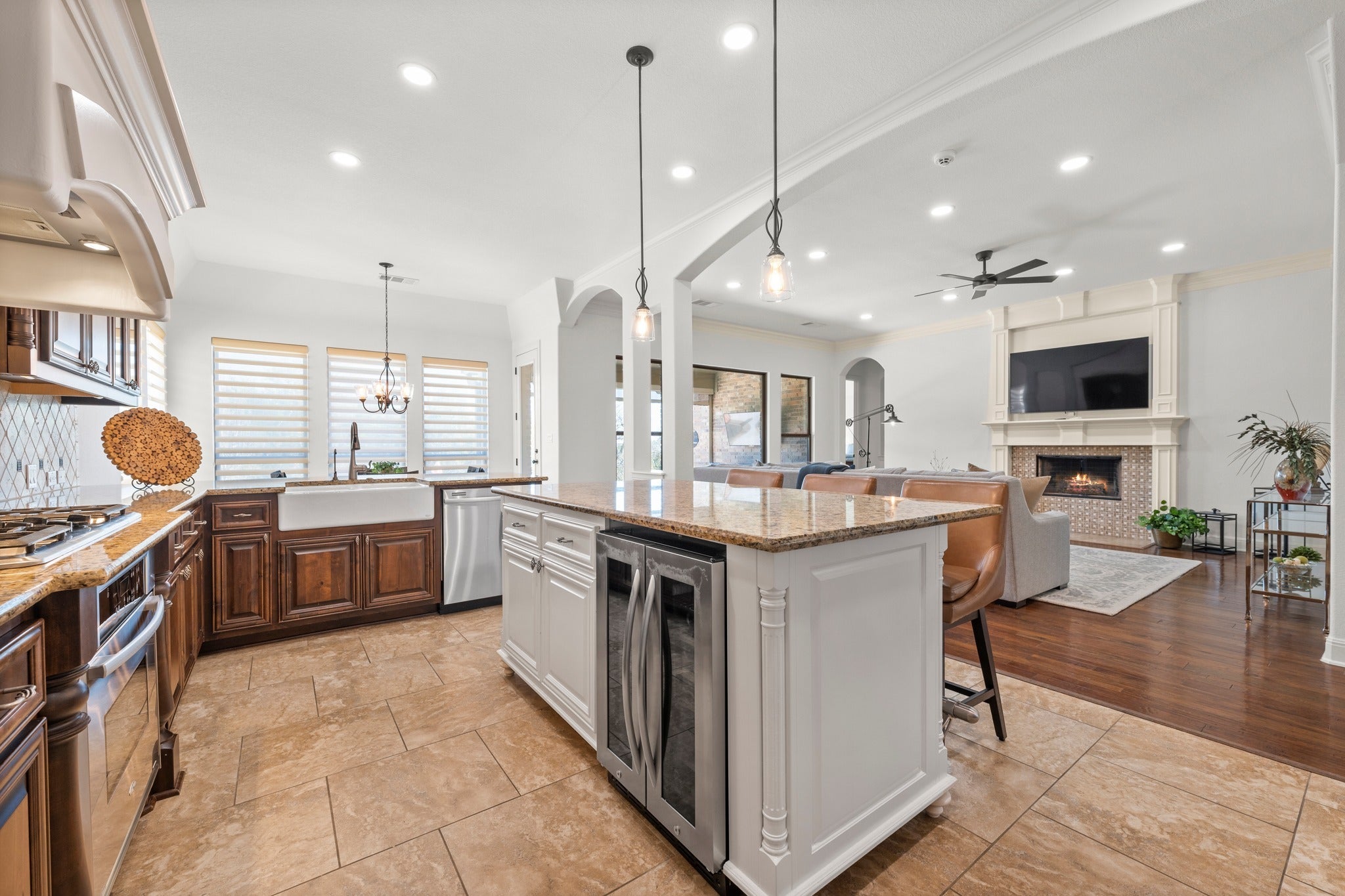 - Bar Fridge, Cooktop, Exhaust Fan, Ice Maker, Microwave, Oven, Range, Stainless Steel Appliance(s), Vented Exhaust Fan