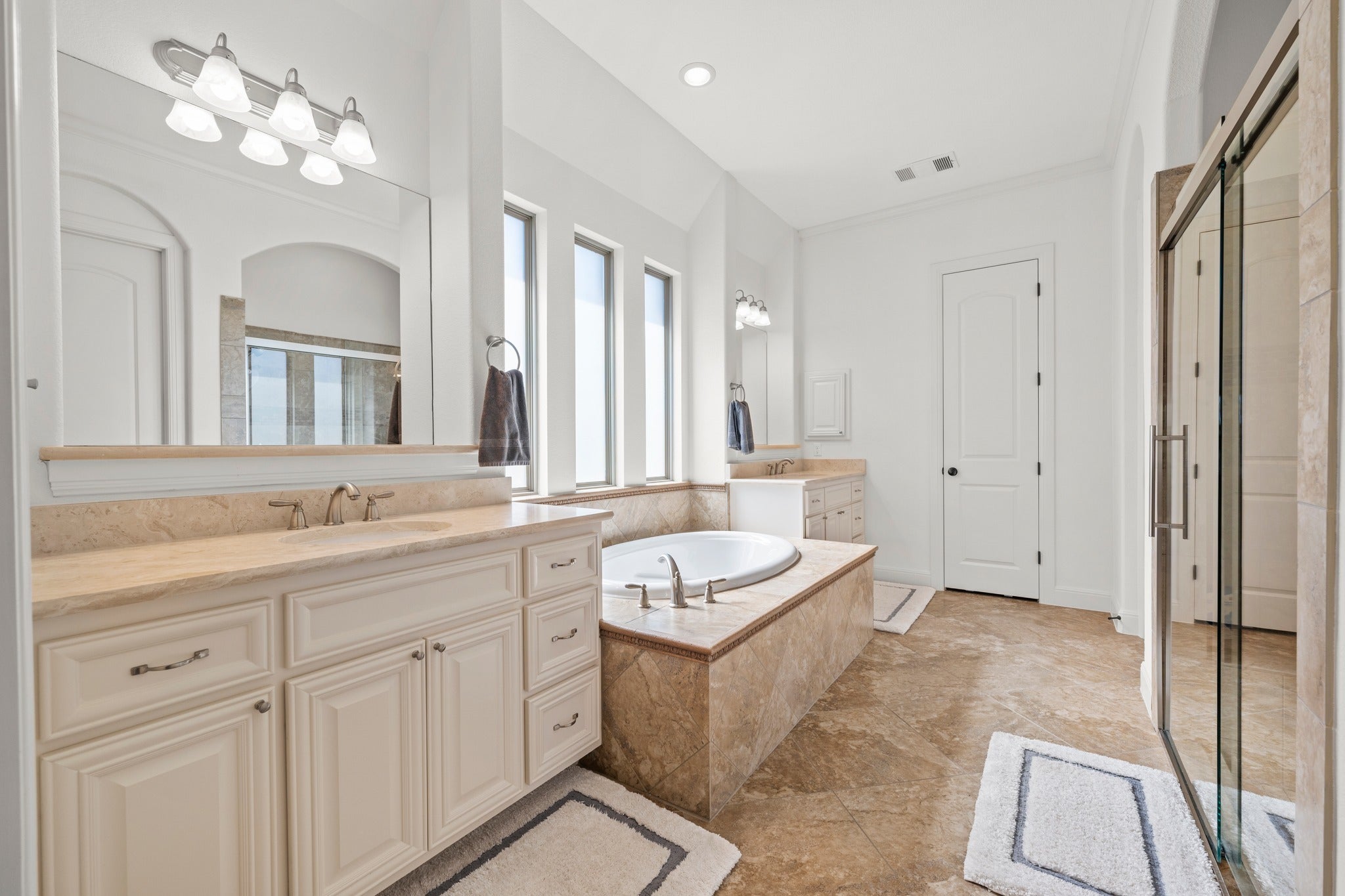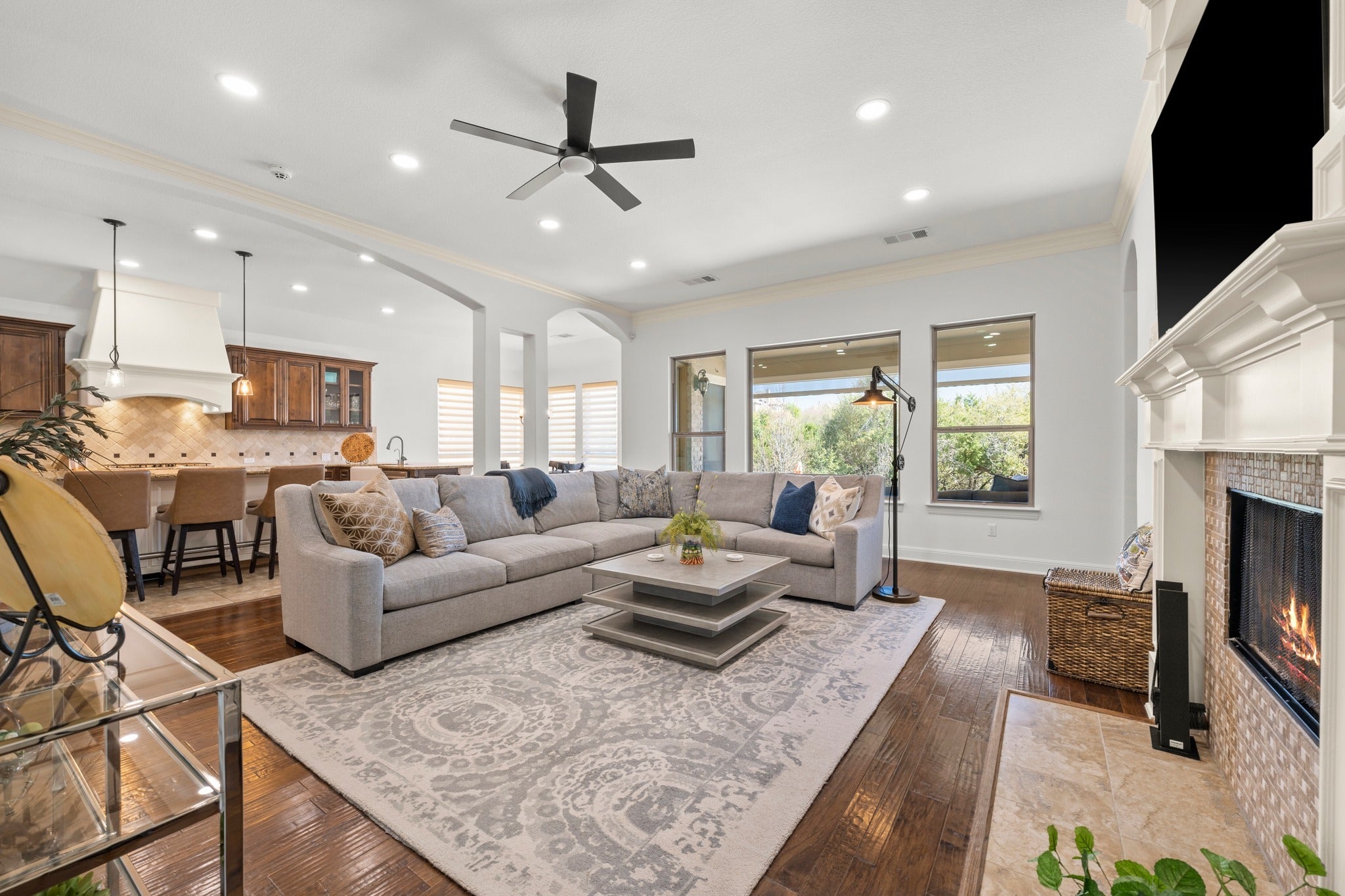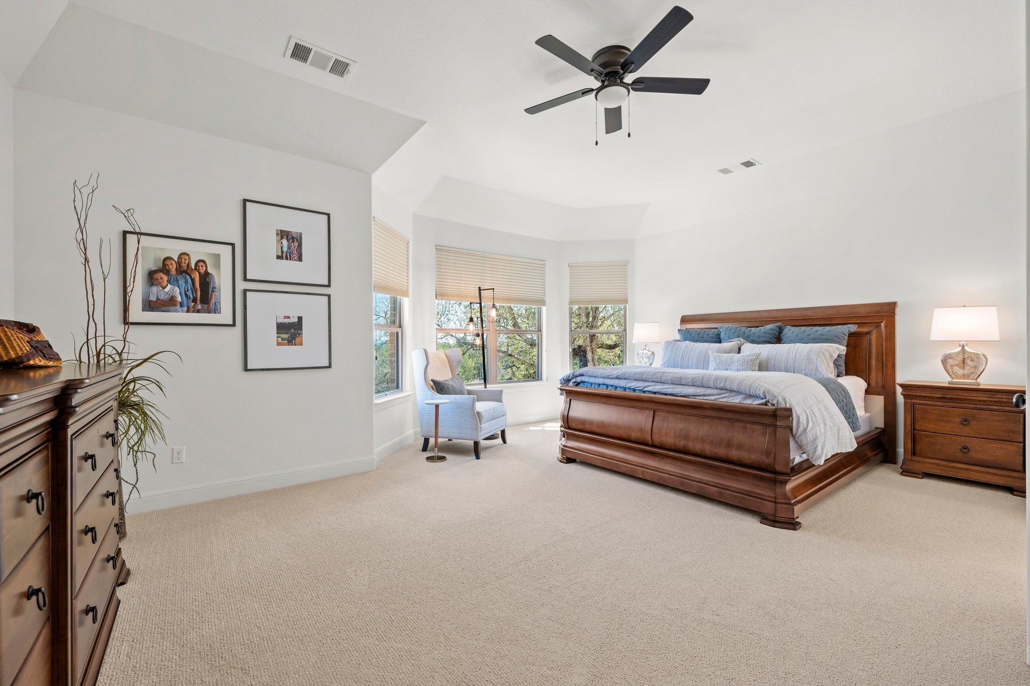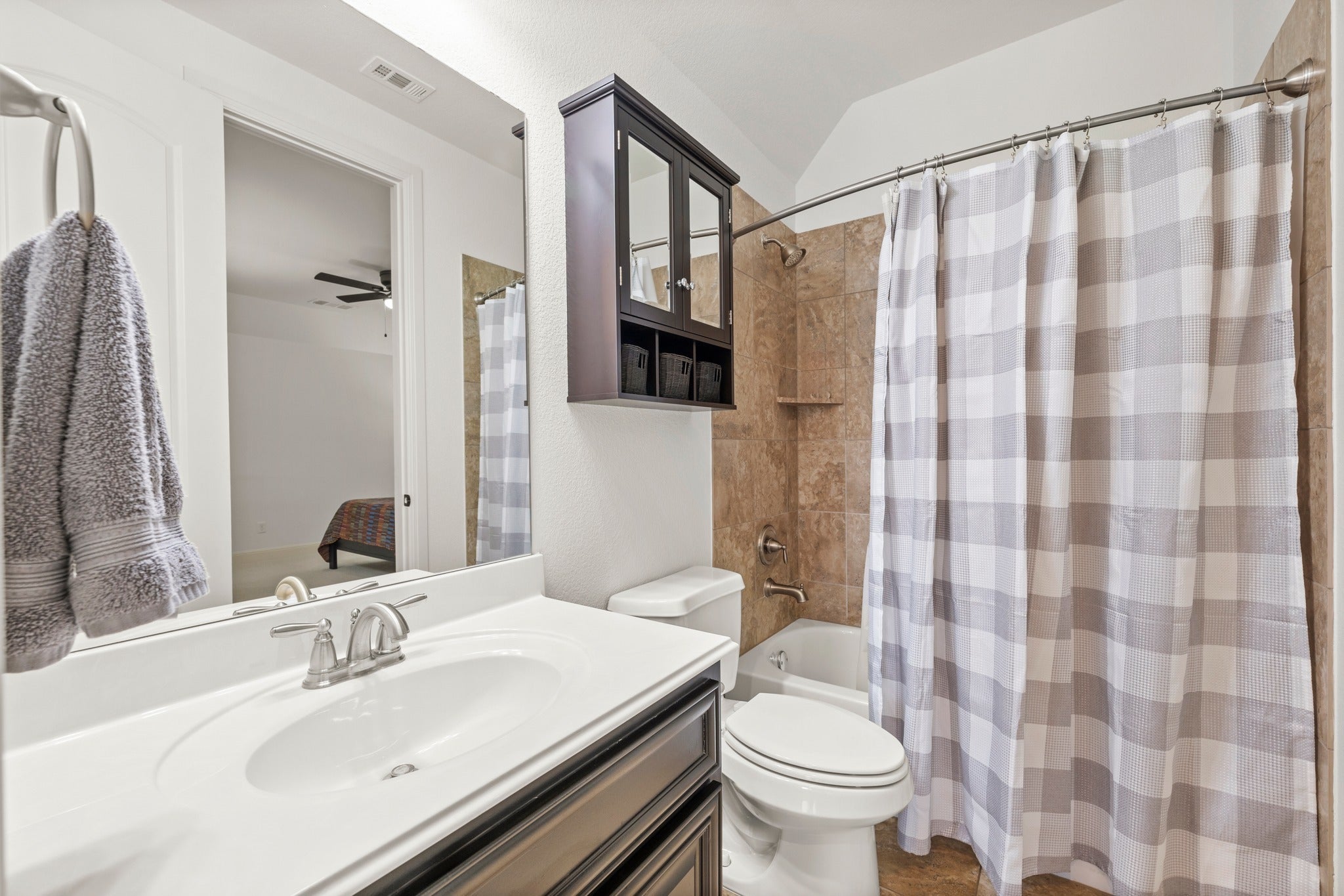 Welcome to 17501 Wildrye Drive in the highly sought-after Rocky Creek neighborhood, located in Lake Travis ISD. This beautifully updated 4-bedroom, 4-full bathroom home sits on a private greenbelt lot with no neighbor on one side and peaceful Hill Country views in the back. Inside, you'll find fresh paint, brand-new carpet with upgraded padding, and stylish lighting throughout. The open-concept floor plan offers soaring ceilings, a spacious living area, and a well-appointed kitchen featuring granite countertops, stainless steel appliances, and abundant storage. The primary suite is located on the main level with a spa-like en suite bathroom, and two additional bedrooms downstairs each have their own full bathrooms—ideal for guests or multi-generational living. Upstairs is a large game room or flex space with a full bath, perfect as a fourth bedroom or office. Outside, enjoy a true backyard oasis with a resort-style pool and spa, brand-new fire pit area, fresh Zoysia sod, and updated flower beds, hardscaping, and gravel walkways on both sides of the home. A spacious covered patio overlooks the greenbelt and offers beautiful sunset views. Additional features include a spacious 3-car garage, a built-in safe, and pre-wiring for an EV charger. Zoned to top-rated schools with a brand-new elementary campus opening in 2027. Don’t miss your chance to own this stunning, move-in ready home in one of West Austin’s premier communities.
