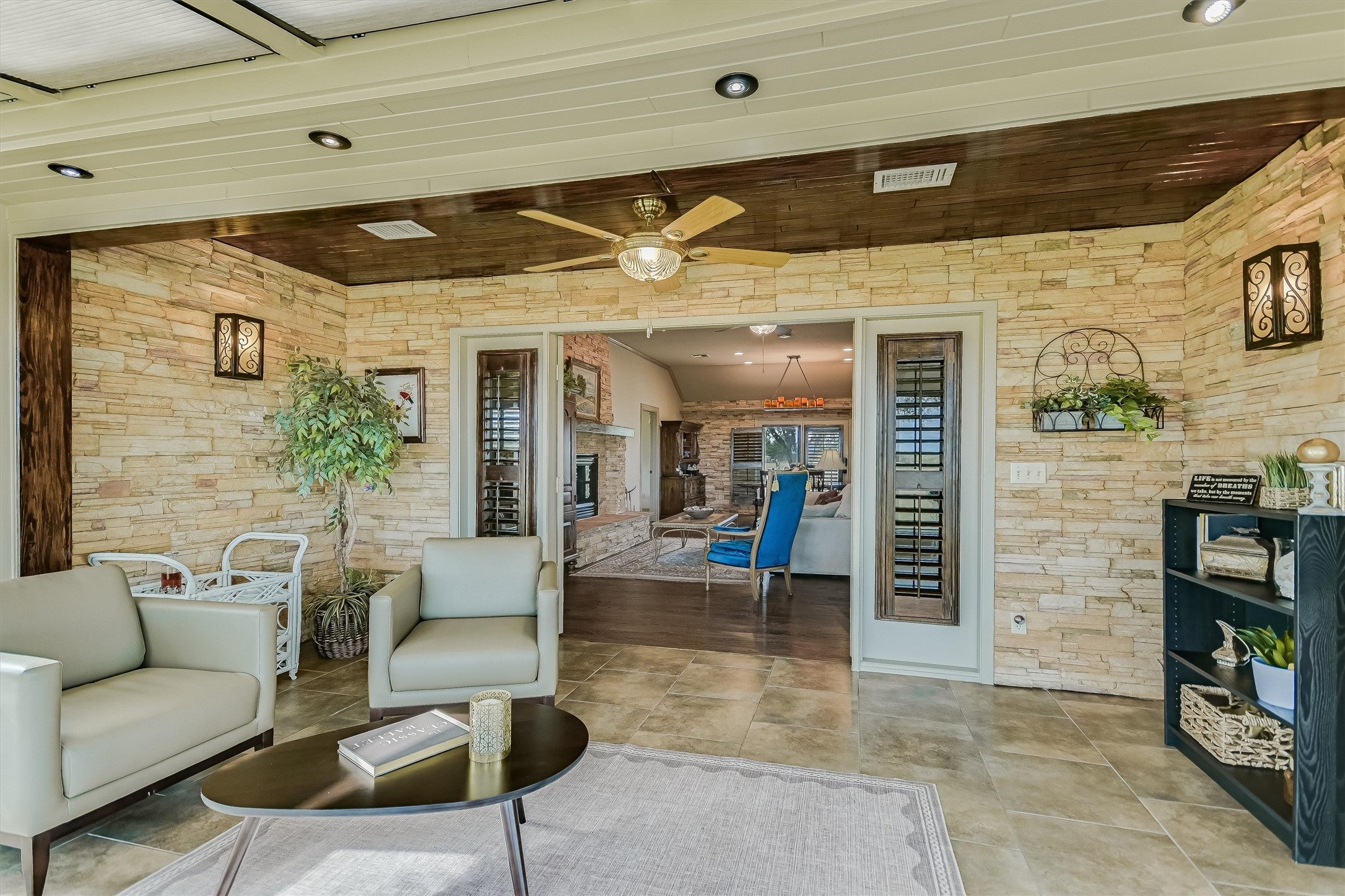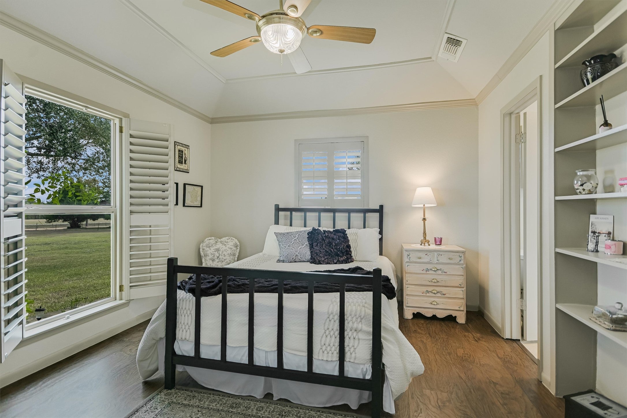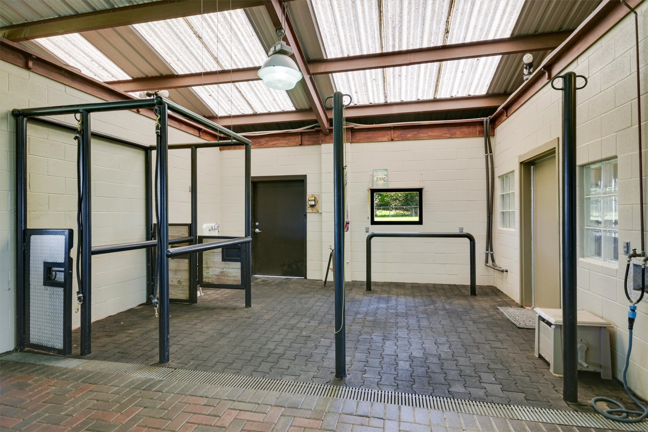 A private equestrian sanctuary in the heart of Texas wildflower country, Six Oak Ranch offers 7.89 serene acres tucked along a quiet lane in beautiful Brenham. At the center of the property is a custom-designed, DERBY-INSPIRED HORSE BARN crafted with reinforced concrete block, steel trusses, and 4-foot footings. It includes four premium horse stalls with custom Louisville-made metalwork, a wash bay with rubberized flooring and French drains, a tack room, full electricity, and exceptional lighting. A portion of the structure is built stormproof, with a concrete roof and hurricane-resistant glass surrounding the restroom, which features a walk-in shower. Exterior perks include drilled-pipe fencing and an RV hookup. The SINGLE-STORY PRIMARY RESIDENCE offers refined country elegance, with an open floor plan, a sunroom, a stone-accented fireplace with a black walnut mantel, and abundant natural light. The updated kitchen features Silestone counters, a farmhouse sink overlooking the backyard, under-cabinet lighting, and travertine flooring. The primary suite includes granite counters, dual sinks, an oversized spa-style shower with a seat, and a walk-in closet. Outdoor living shines with a large patio, hot tub, wood-fired pizza oven, stone fire pit, and three pergolas beneath mature live oaks. The acreage is divided into three corralled pastures—two with automatic water troughs and one with a shared well agreement—offering ample turnout space. A charming GUEST COTTAGE (THINK MULT-GEN OR B-AND-B OPPORTUNITY) PROVIDES 2-BEDROOMS, 2 BATHS, a full kitchen, a washer/dryer hookup, a covered porch, and a wheelchair ramp. An 80 by 40 WORKSHOP/GARAGE, automatic doors, an RV carport, an EV charger, and a CLIMATE-CONTROLLED, CEDAR-LINED STORAGE room. Modern utilities include three deep Jasper Aquifer wells, two anaerobic septic systems, separate Bluebonnet Electric meters, and high-speed Starlink internet. Please request the "Highlights and Features" PDF for more details.