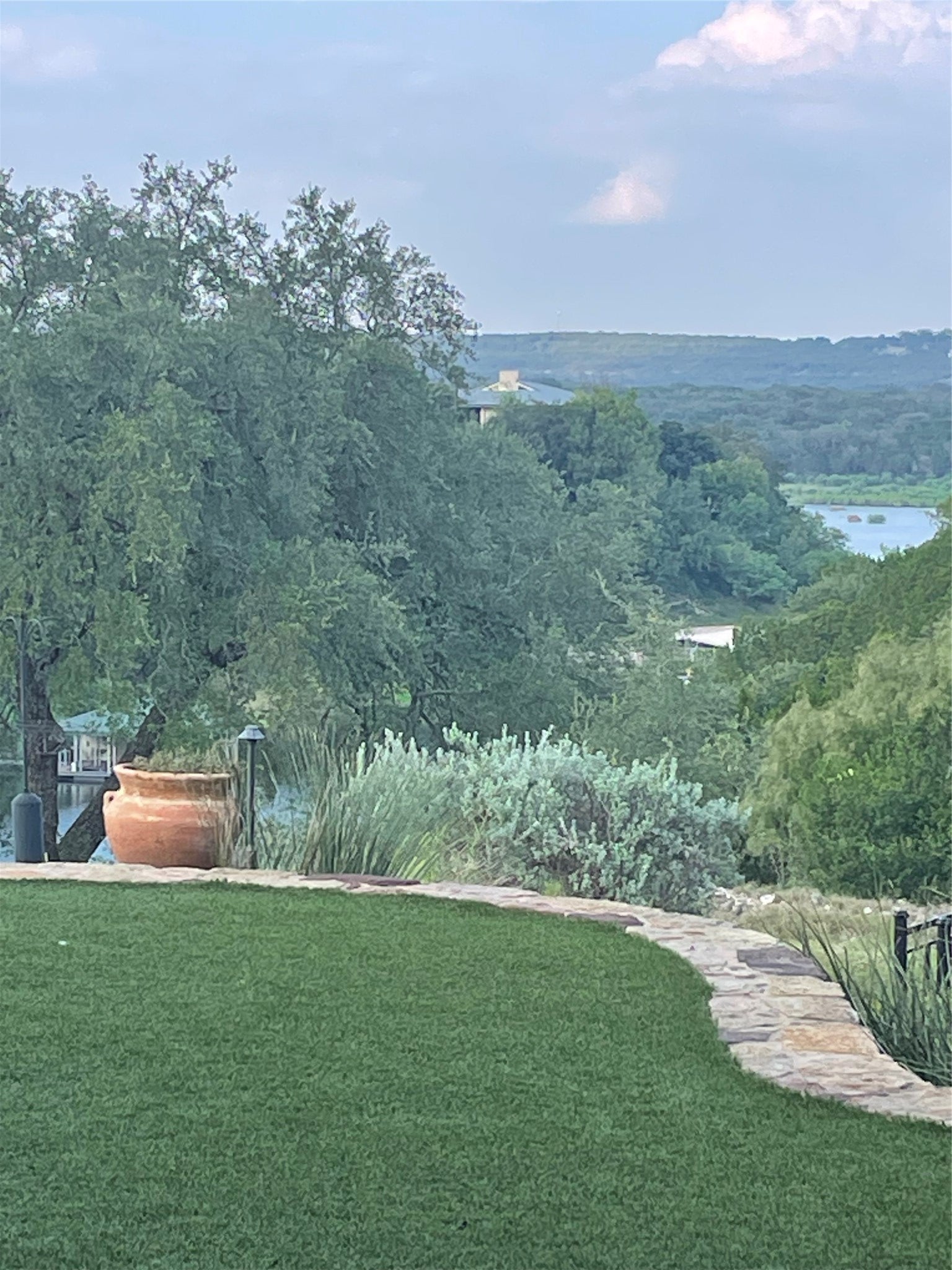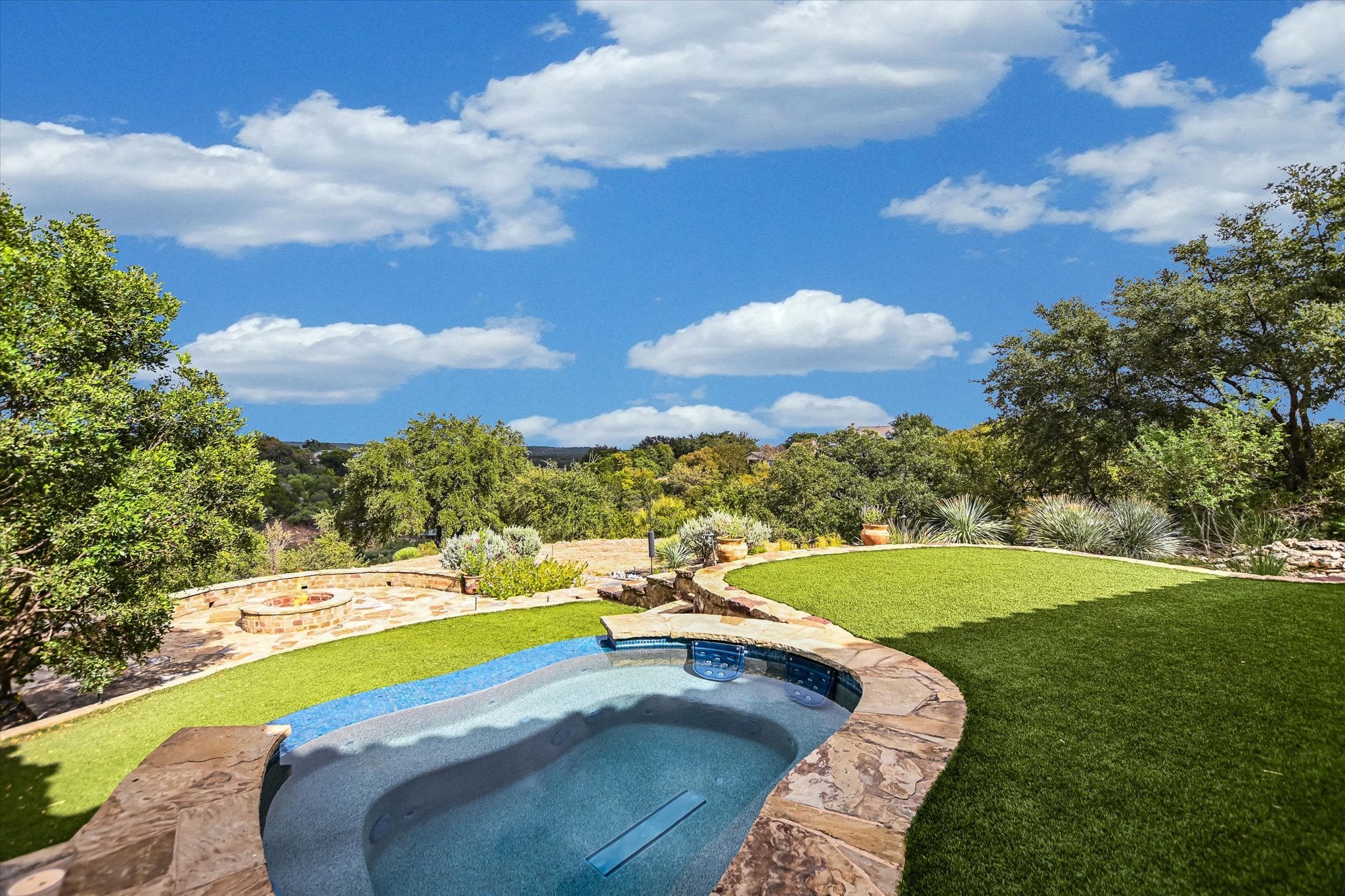 WATERFRONT* GOLF COURSE LOT* PRIVACY ON 3.14 AC * ENERGY EFFICIENT * CUSTOM CRAFTSMANSHIP. Golfers welcome back to the newly renovated Arnold Palmer designed golf course at Barton Creek Lakeside! The course & club facilities received a multimillion $$ renovation & is back in full swing. This country club lifestyle behind 24 hour guarded gates of BCL offers the best in golf, pickleball, tennis, fitness, dining and a full service pool--there's even a marina for residents only - THE WATER IS BACK. This magnificent estate home sides the 8th Fairway and has direct waterfront access to large cove on Lake Travis. The 5,547 sqft 4/4.5/3+ was uniquely built by John Hagy Custom Homes w/ a focus on Energy Efficiency built w/ ICF construction-(concrete forms/walls) for a true lifetime home. It also has 10- 250' wells for the Geothermal heating/cooling systems and a newly added solar panel system all maximizing energy efficiency. The quality and attention to detail is evident throughout the entire home-rich solid knotty alder cabinets, solid alder baseboards, wood and stone floors, rare walnut/coffee hued Cantera stone columns in/outside and top graded encased crank windows and more. Off the grand foyer is a 1100 bottle wine room and the massive Primary suite, executive study, safe room, planning center, chefs kitchen w/ top tier SS appliances, fully equipped media room, mud room and laundry room, and 2 guest bedrooms and bathrooms are all on the first level with a short elevator ride to the upstairs guest suite and game room w/ full bar and terrace overlooking the lake and Hill Country. There is an Infinity spa/pool (Spool) off of the expansive back patio living area complete w/ full outdoor kitchen and a waterfall for ambiance. Seller has recently installed a built in SS Thermador side by side refrigerator and dishwasher; a new A/C unit and has transformed this beauty into a Santa Barbara styled masterpiece. GO TO YOUTUBE 26804 SEPT2025 HD 720p FOR A DESCRIPTIVE VIDEO
