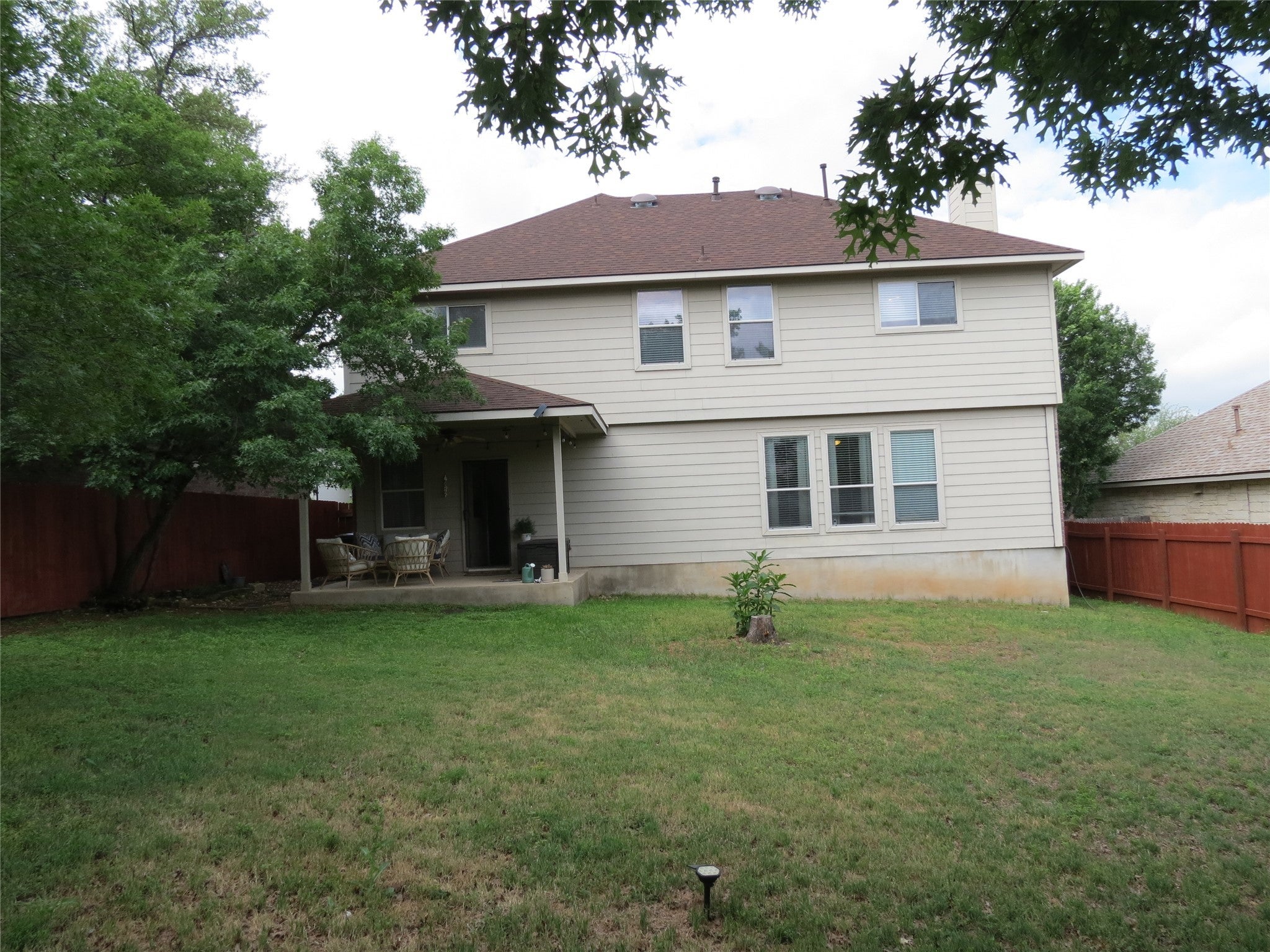 Beautiful 2-story home in Vista Ridge. Located on a large lot with mature trees - lots of shade! Updates include tile floors downstairs, laminate wood floors upstairs, (NO CARPET), wrought iron staircase rails, and custom shelves in living room. Grand vaulted ceilings when you enter the home. Spacious kitchen area with plenty of counter space that's open to the living room. Upstairs living area is perfect for entertaining. All bedrooms upstairs with upstairs laundry room. Covered rear patio. Located 1 block from neighborhood clubhouse, playground, and pool. Near Robin Bledsoe Park, and Leander Public Library. Not to mention zoned for great schools.