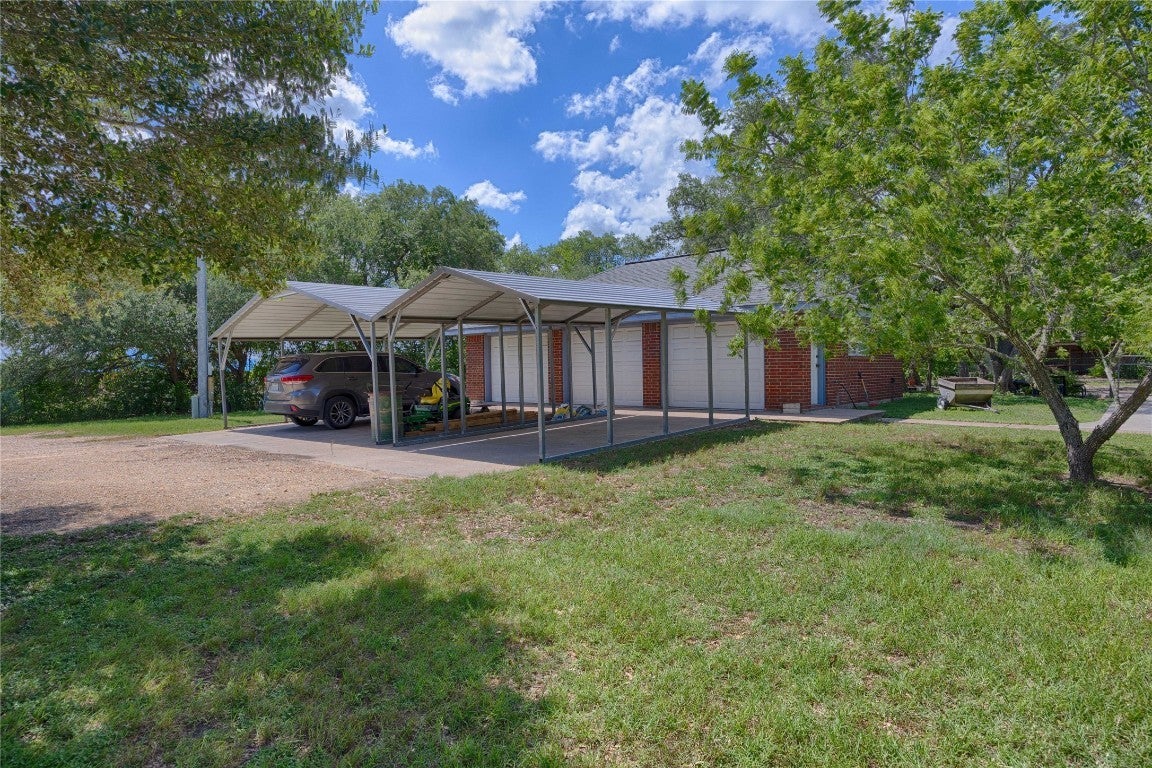 - Circular Driveway, Covered, Carport, Door-Multi, Detached Carport, Detached, Enclosed, Garage, Garage Door Opener, Lighted, Oversized, Garage Faces Side