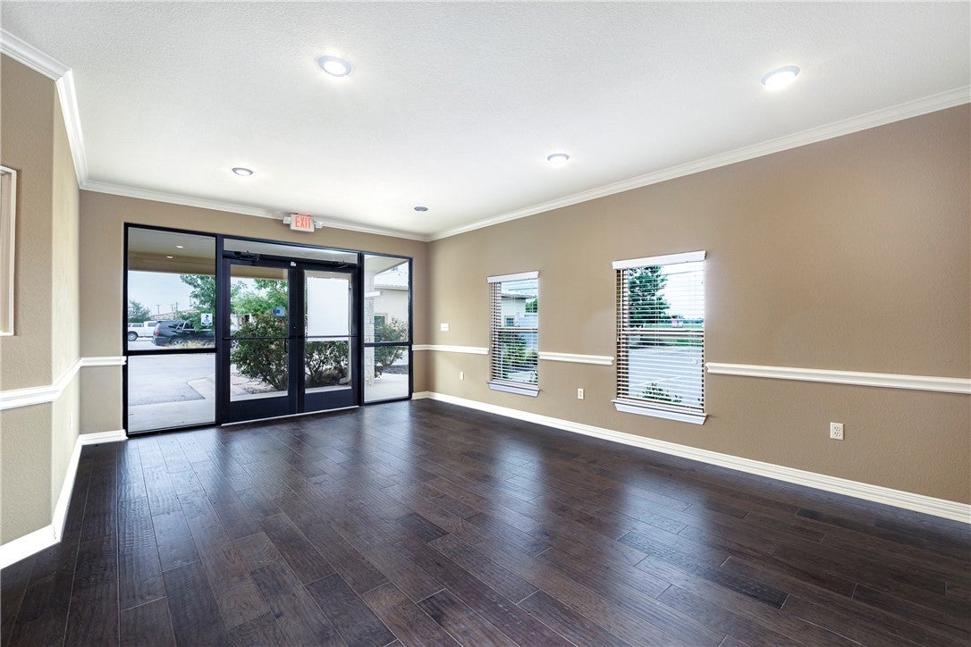 Discover an upscale, stand-alone commercial office building situated in a desirable enclave of professional businesses. Ideally positioned near Salt Lick BBQ, Dell Diamond, Kalahari Resort, and with excellent visibility off Hwy 79, this location offers convenience for both your team and clients. Built in 2018, the interior is bright and inviting with abundant natural light. This professionally wired commercial office features CAT6 internet cabling throughout, ensuring high-speed, reliable connectivity for all your business operations. The layout includes six private offices, ideal for focused work or executive use. A versatile conference room doubles as a common work area, perfect for meetings, team collaboration, or client presentations. Guests are welcomed into a reception area with a built-in reception desk, offering a polished and professional first impression. The space also includes a large kitchen, suitable for breaks along with a storage closet for convenient organization of supplies and equipment. Designed for both productivity and flexibility, this office suite combines private workspaces, collaborative areas, and modern infrastructure to support a dynamic business environment.