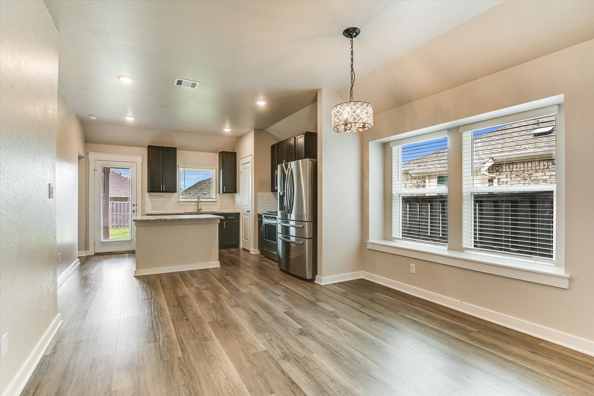 Adorable, move-in ready home offered for lease for the first time in Georgetown's highly desirable Parmer Ranch! This clean, like-new 3-bed, 2-bath home features fresh interior paint, updated fixtures, a brand-new refrigerator, and a new dishwasher. The open floor plan includes durable vinyl plank flooring and a convenient bonus space—perfect as an office for working from home, kids or pet play area. The primary suite is privately located at the back of the home and features a charming window seat overlooking the backyard. The primary bath includes dual vanities and a rain-head shower. Smart home features include a smart thermostat and programable light fixtures. Enjoy the covered rear patio and fully fenced backyard with irrigation. 2-car attached garage with garage door opener. Enjoy Parmer Ranch's amenities which include a 10-acre park, playgrounds, zip line, pond, walking/jogging trails, pickleball/sports courts, and a beautiful, resort-style community pool. Fantastic schools and convenient shopping nearby, including a brand-new H-E-B just minutes away, with easy access to Ronald Reagan Blvd. **Landlord criteria: 650+ credit score, 2+ years verifiable employment, 2+ years positive rental history, 3x the monthly rent in income, no evictions, and no violent criminal or theft history, no smoking. Small dog/cat considered at landlord’s discretion. No exotic pets or aggressive breeds.**