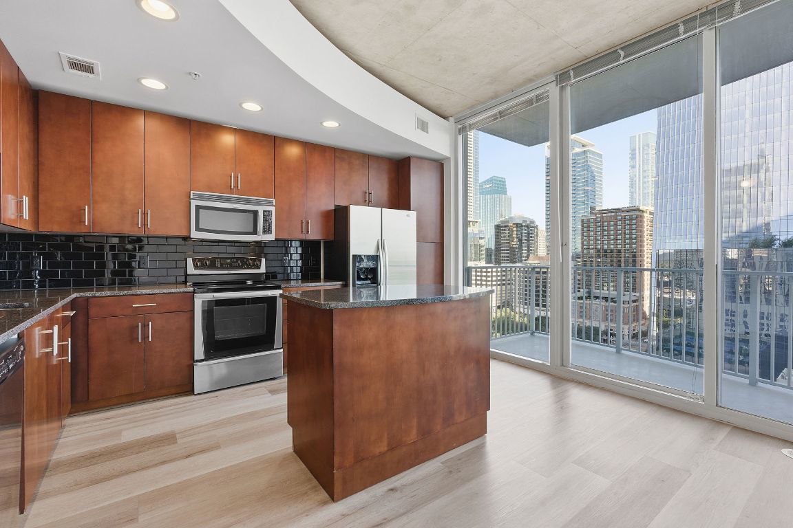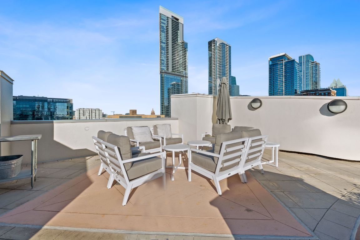 Beautiful East facing condo at 360 Condominiums. Interior features include luxury vinyl plank flooring, open kitchen and living room and flooring to ceiling windows spanning the entire condo, bringing in tons of natural light. Enjoy stunning panoramic views of Downtown Austin and exclusive access to a private terrace with a lounge and grill area, designated only for the 17th floor. 1 reserved parking spot included. Building amenities include 24 hour concierge, owner's lounge, fitness center, resort style pool deck with grills, conference room, media room and dog park. Unbeatable location just steps from it all! Walk to 2nd St District, Trader Joe's, Seaholm District, Whole Foods, West 6th St and all that downtown has to offer!