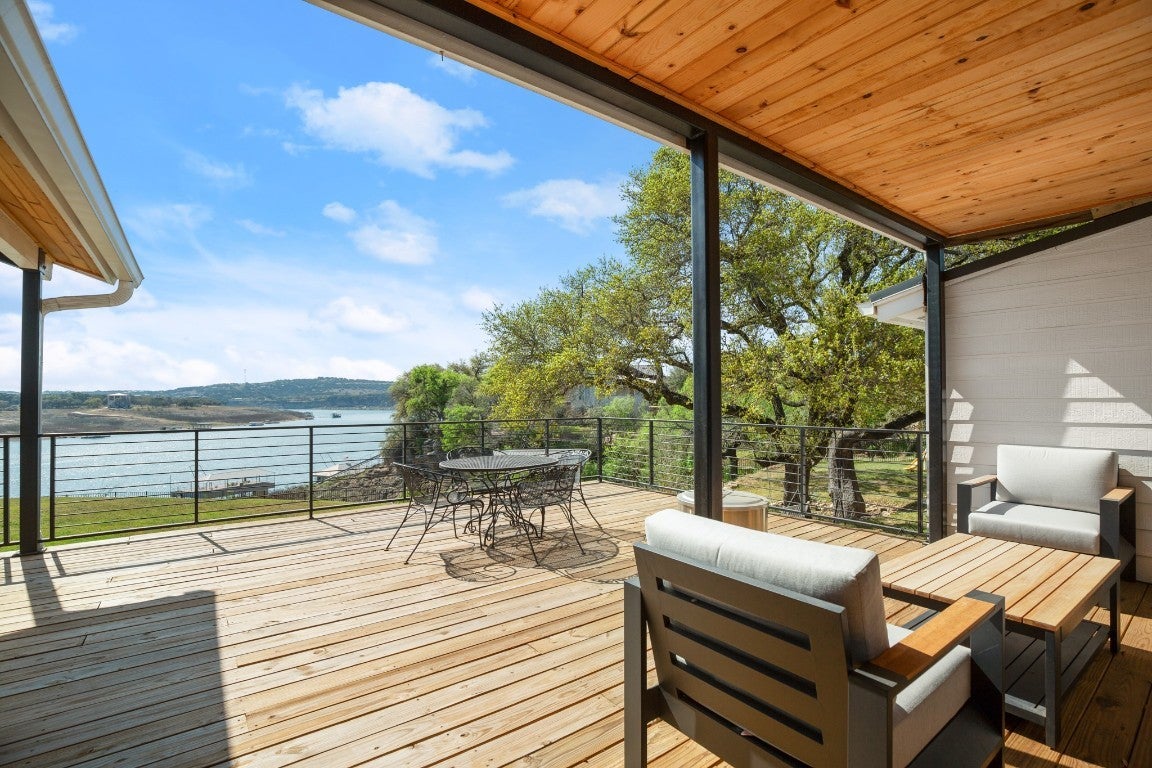 Absolutely stunning, recently remodeled waterfront property nestled on 2.1501 acres along the main channel of Lake Travis' south shore! This exceptional property is complete with a private boat dock and lift. A newly installed tram provides effortless access to the dock without the need for stairs, though you can also use the newly built steps if preferred. Enjoy breathtaking panoramic lake views from every room on the main level, including the office, through beautiful steel-framed windows! This property is made up of two lots: 1401 and 1405 Cat Hollow Club Dr. The vacant lot at 1401 Cat Hollow Club Dr (1.001 acres) and the home at 1405 Cat Hollow Club Dr (1.150 acres) are being sold together. The vacant lot offers potential for future sale or development. The farmhouse-style home has been meticulously remodeled with high-end upgrades, including new HVAC systems (2 units), wood flooring, steel-framed windows, quartz countertops, and stainless steel KitchenAid appliances. The owner's suite features a spacious walk-in shower, and the expansive back deck, complete with fencing, a gazebo, and a deck area, is perfect for enjoying the stunning lake views. Every detail of the remodel has been crafted with quality and design in mind. The detached two-car garage offers ample workshop space, which has been fully upgraded and finished to serve as additional living space while still maintaining its functionality as a garage. Conveniently located near the Hill Country Galleria, shopping, dining, local wineries, Pace Bend Park, and Briarcliff Marina, with access to Lake Travis ISD schools.