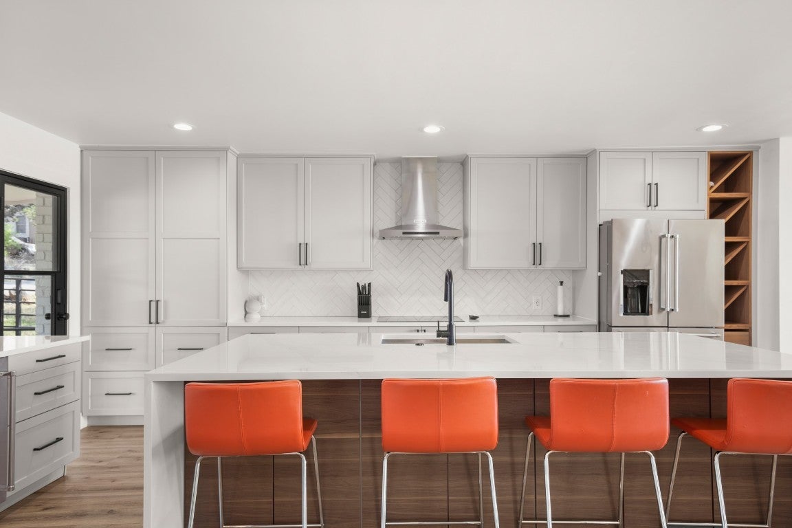 - Built-In Electric Oven, Built-In Electric Range, Bar Fridge, Dryer, Dishwasher, ENERGY STAR Qualified Appliances, Exhaust Fan, Electric Water Heater, Disposal, Microwave, Stainless Steel Appliance(s), Vented Exhaust Fan, Washer, Induction Cooktop, Wine Cooler