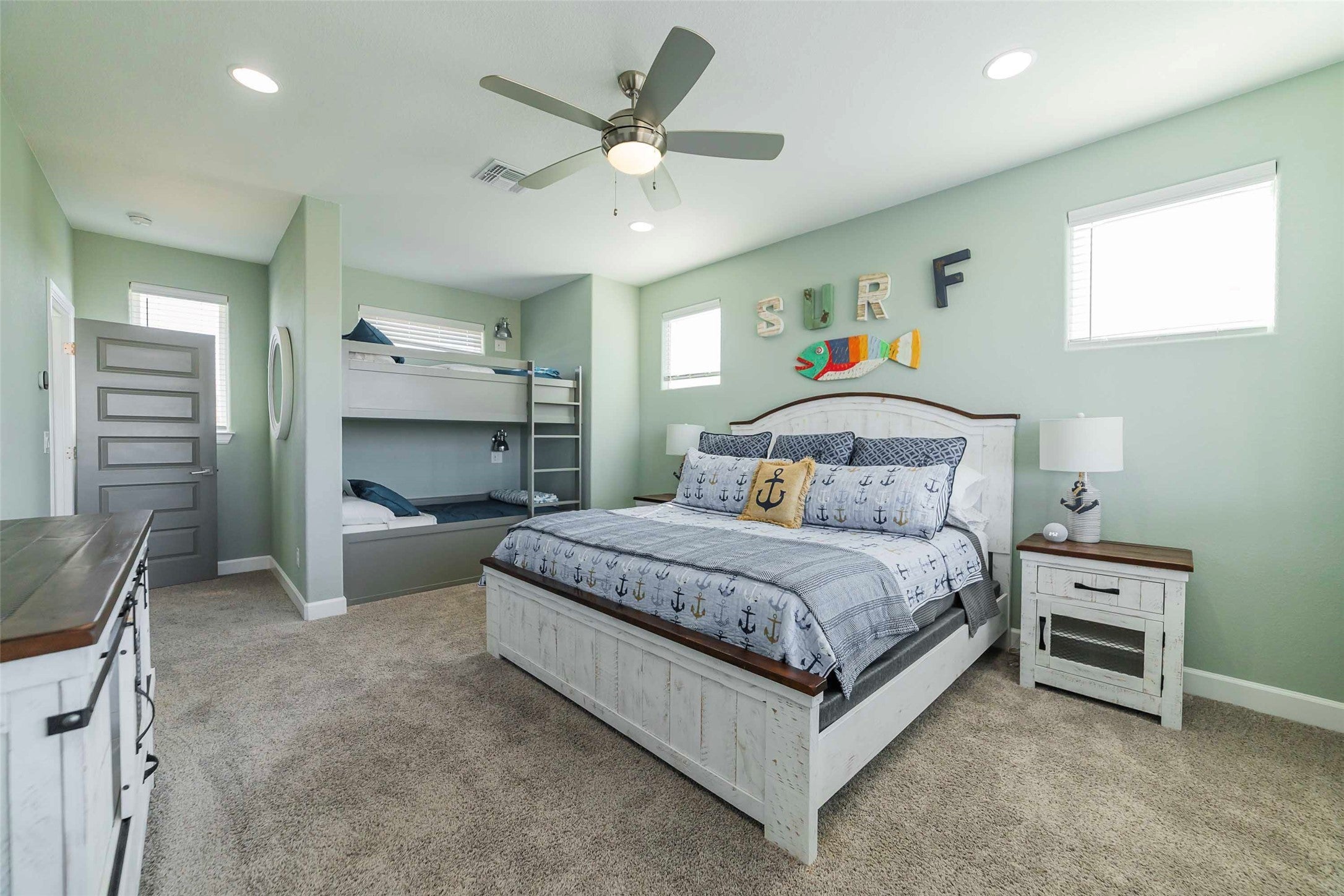 Welcome to your turnkey waterfront escape on Lake LBJ, an exceptional opportunity to own a fully furnished, resort-style retreat in one of the lake’s most desirable gated communities. This stunning 4,496 SF lakefront home offers 6 spacious bedrooms, 5 full baths, 1 half bath, and comfortably sleeps 24+ guests with 19 total beds. Designed for entertaining and large gatherings, the home features three king suites with built-in bunks and a dedicated bunk room with eight bunks, ideal for family retreats. The open-concept main level is filled with natural light and showcases modern finishes and lake-inspired. Expansive living, dining, and kitchen areas flow seamlessly together, creating the ultimate entertaining space. The chef’s kitchen includes double ovens, gas cooktop, microwave, two oversized pantries, and generous prep space. The primary suite features a built-in workspace, while additional guest suites include bunk accommodations and shared baths with double vanities. Upstairs you’ll find a spacious game room with pool table and sleeper sofa. Step outside to your private backyard oasis featuring a resort-style pool and spa, two covered patios, outdoor kitchen with gas grill and refrigerator, and a highly upgraded private boat dock with lounge area, large boat slip, and two jet ski ramps. Kayaks and pool toys convey. Located in a calm protected cove just off the main body of Lake LBJ, offering peaceful water with quick access to open lake. Buyer’s agent to verify all information.