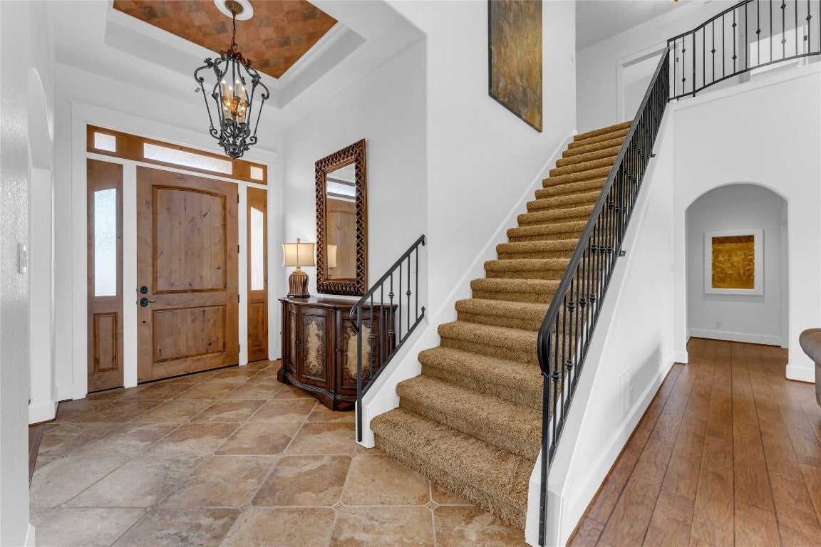 This stunning 5-bedroom, 3.5-bath residence offers a thoughtful blend of bold architectural character and everyday livability. From the moment you step inside, you’ll notice the open, spacious floor plan filled with natural light from oversized windows, creating a warm and inviting atmosphere perfect for both daily living and entertaining. The home features two wood-burning fireplaces — one in the living area and another in the sunroom/den — ideal for cozy winter evenings. A wall of windows showcases serene backyard views, bringing the outdoors in year-round. The chef’s kitchen is a standout with knotty alder cabinetry, quartz countertops, a large center island with sink, and a warming drawer — perfect for hosting family and friends. Energy efficiency is a major highlight, with eco-friendly geothermal heating and cooling, high-performance foam insulation, R-46 blown attic insulation, zoned HVAC, and six thermostats for personalized comfort throughout the home. A metal roof adds long-term durability with a lifespan of 75+ years. Safety and functionality meet with a fortified safe room featuring 6” concrete walls and ceiling, plus a steel door with four locks. The 3-car garage includes a dedicated 240-volt outlet, making it electric-vehicle ready. Step outside to a professionally landscaped backyard retreat, complete with terraced rock work, mature trees, full fencing, and a charming table fire pit — perfect for relaxing mornings or evening gatherings. This all-electric, energy-efficient home offers comfort, security, and timeless design in a peaceful Liberty Hill setting.