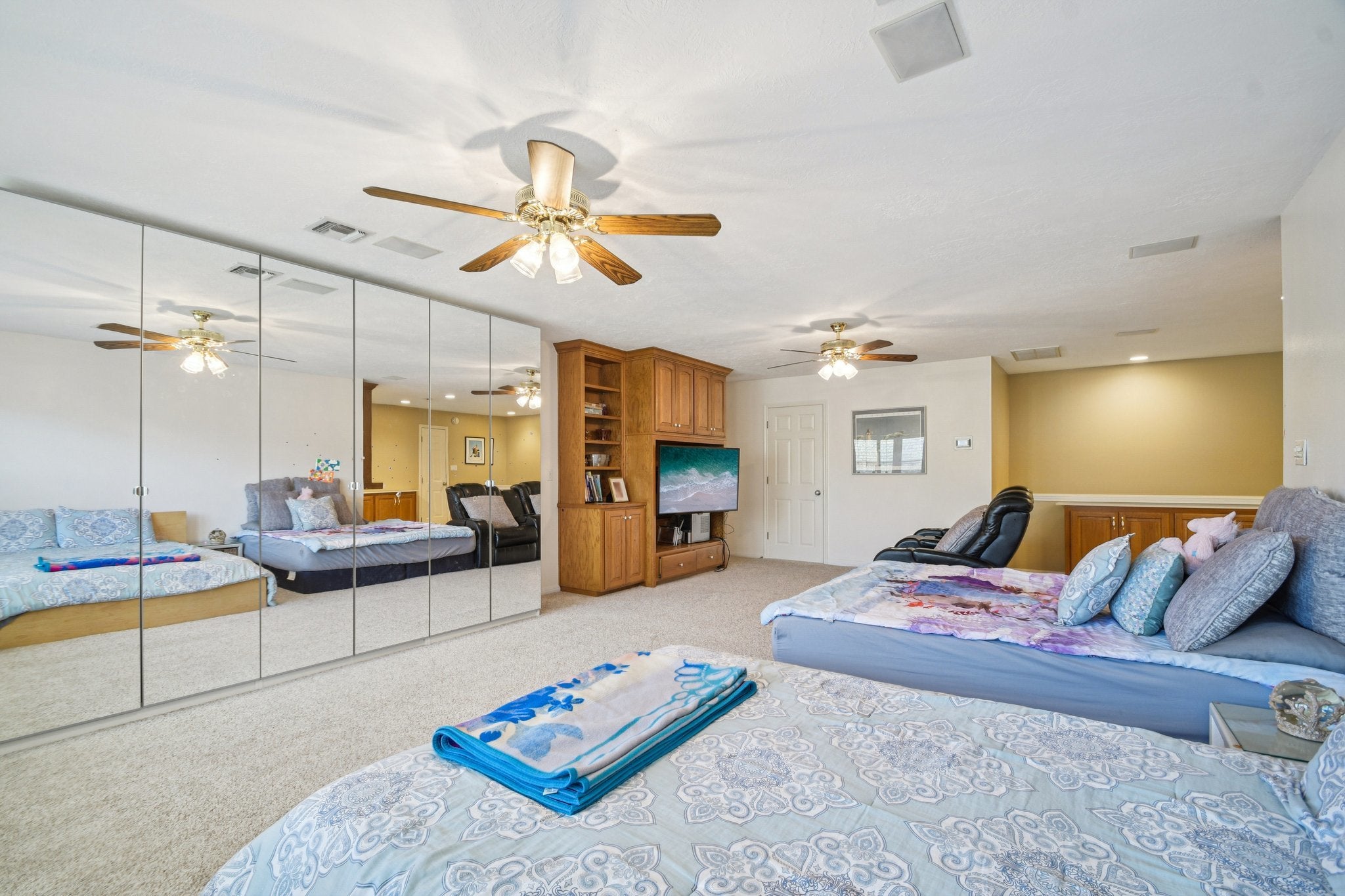 - Glass Doors, Great Room, Masonry, Raised Hearth, Wood Burning, Blower Fan, Circulating