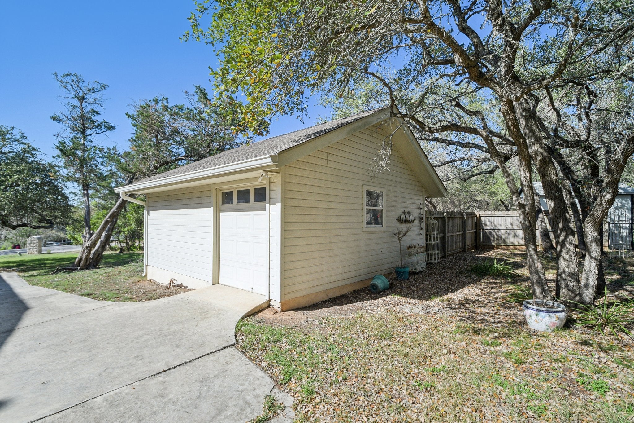 Welcome to a private Hill Country retreat in Wimberley’s sought-after Woodcreek community, ideally positioned on a quiet cul-de-sac and backing to a nature preserve for added privacy and scenic views. Situated on approximately 0.74 acres—one of the larger lots in the neighborhood—this spacious 4-bedroom home offers over 3,500 square feet of flexible living space designed for comfort, functionality, and versatility. The layout features multiple living areas, a generous loft, and adaptable spaces ideal for a home office, game room, or multi-generational living. Large windows throughout fill the home with natural light while showcasing the surrounding Hill Country landscape and mature trees. Car enthusiasts, hobbyists, and those needing extra storage will appreciate the oversized 2-car garage, complete with a dedicated golf cart entrance and additional utility or workspace area. In addition, a detached garage/workshop offers incredible flexibility—perfect as-is for projects and storage, or with potential to be converted into a guest suite, pool house, or private office. Step outside to enjoy the expansive lot with ample room to create your own outdoor oasis—whether that’s a pool, garden, or extended entertaining space. With no immediate neighbor on one side and a peaceful natural backdrop, this property offers a level of privacy that’s increasingly hard to find. With its flexible layout, multiple structures, and generous space, this home is especially well-suited for multi-generational living or those seeking room to grow and adapt. Located just minutes from local shops, dining, and outdoor recreation, this home blends the tranquility of Hill Country living with everyday convenience. Opportunities with this combination of lot size, privacy, and versatility in Woodcreek are rare. Buyer to verify all information.