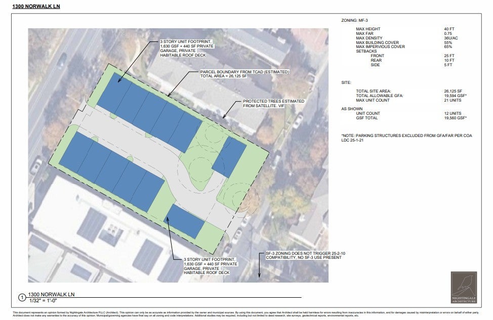 A rare development opportunity in the heart of West Austin. Located on a quiet street in Deep Eddy, 1300 & 1302 Norwalk Lane currently consist of two multifamily buildings featuring a total of 6 one-bedroom units and 6 two-bedroom units, with only one unit currently vacant. This setup provides holding income while you pursue design and planning approval for redevelopment or refurbishment of the existing improvements. The property spans a gently sloping, rectangular 0.6-acre lot with dual street frontage. Zoned MF-3, it allows for up to 20,000 square feet of Gross Floor Area and up to 21 units. Preliminary schematics show a layout including a driveway and 12 x 1600 sq. ft. with 2-car garages and private roof terraces. This property is across the road from the Muni Golf Course and a short walk to O'Henry Middle School, HEB and Maudies. It is also less than a mile to Westenfield Park / Pool / Tennis Courts, Littlefields, and Juiceland; and less than 2 miles to Austin High, Zilker Park, Barton Springs, Town Lake, Lake Austin, numerous bars and restaurants on West Lynn and West 6th St. It's proximity to MoPac delivers direct connectivity to the airport, the Domain, and highways 183, 71 and 290. This property is zoned to Austin ISD's best schools.