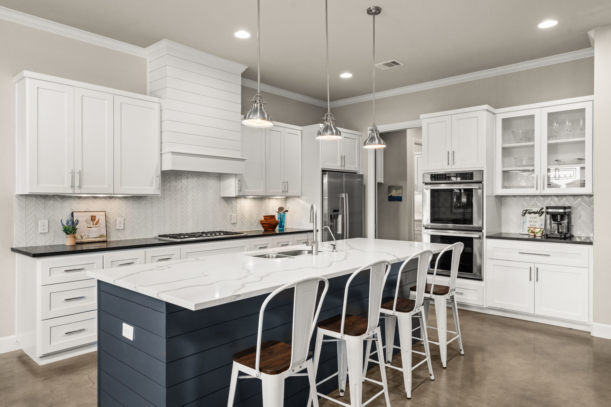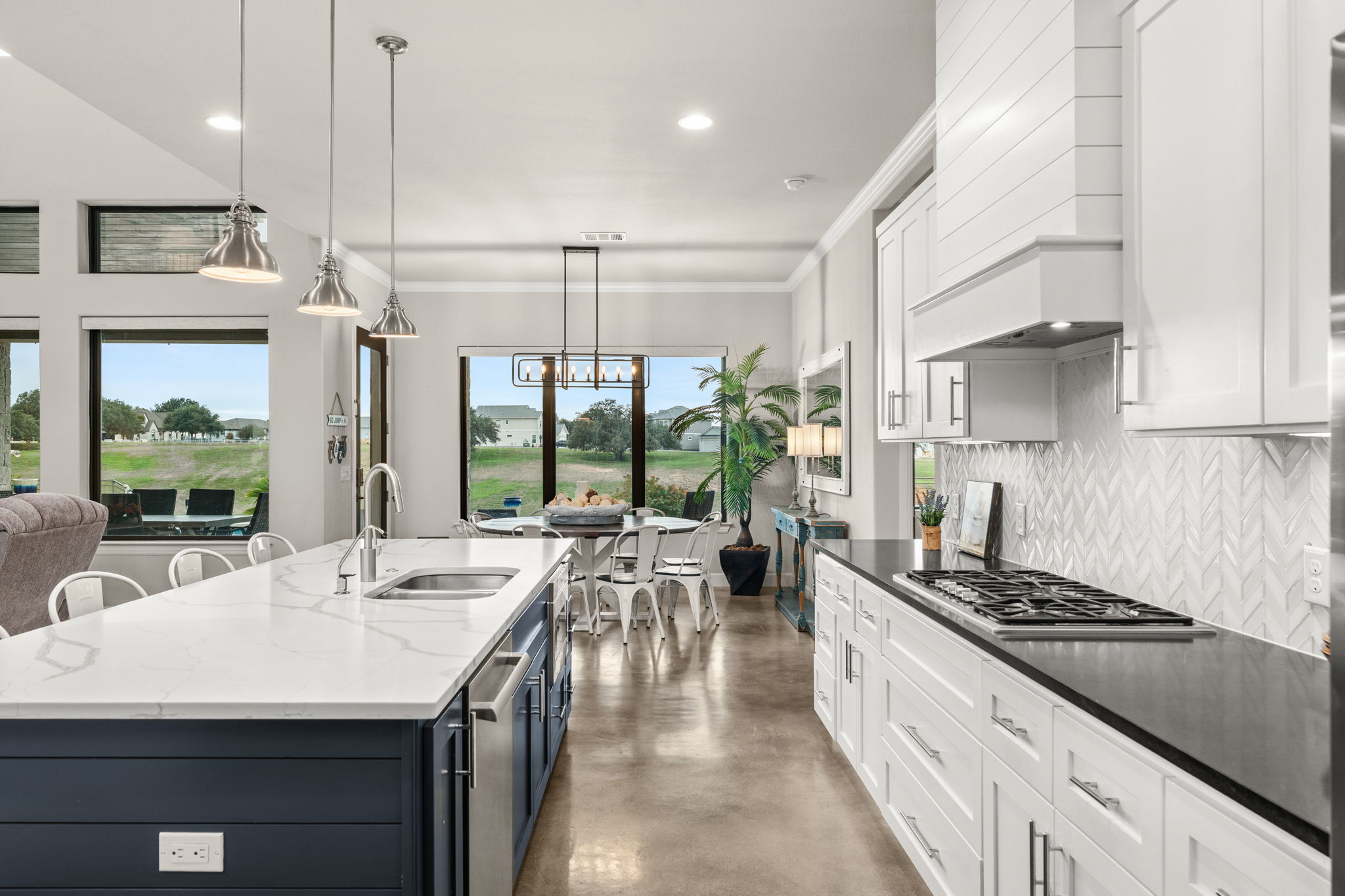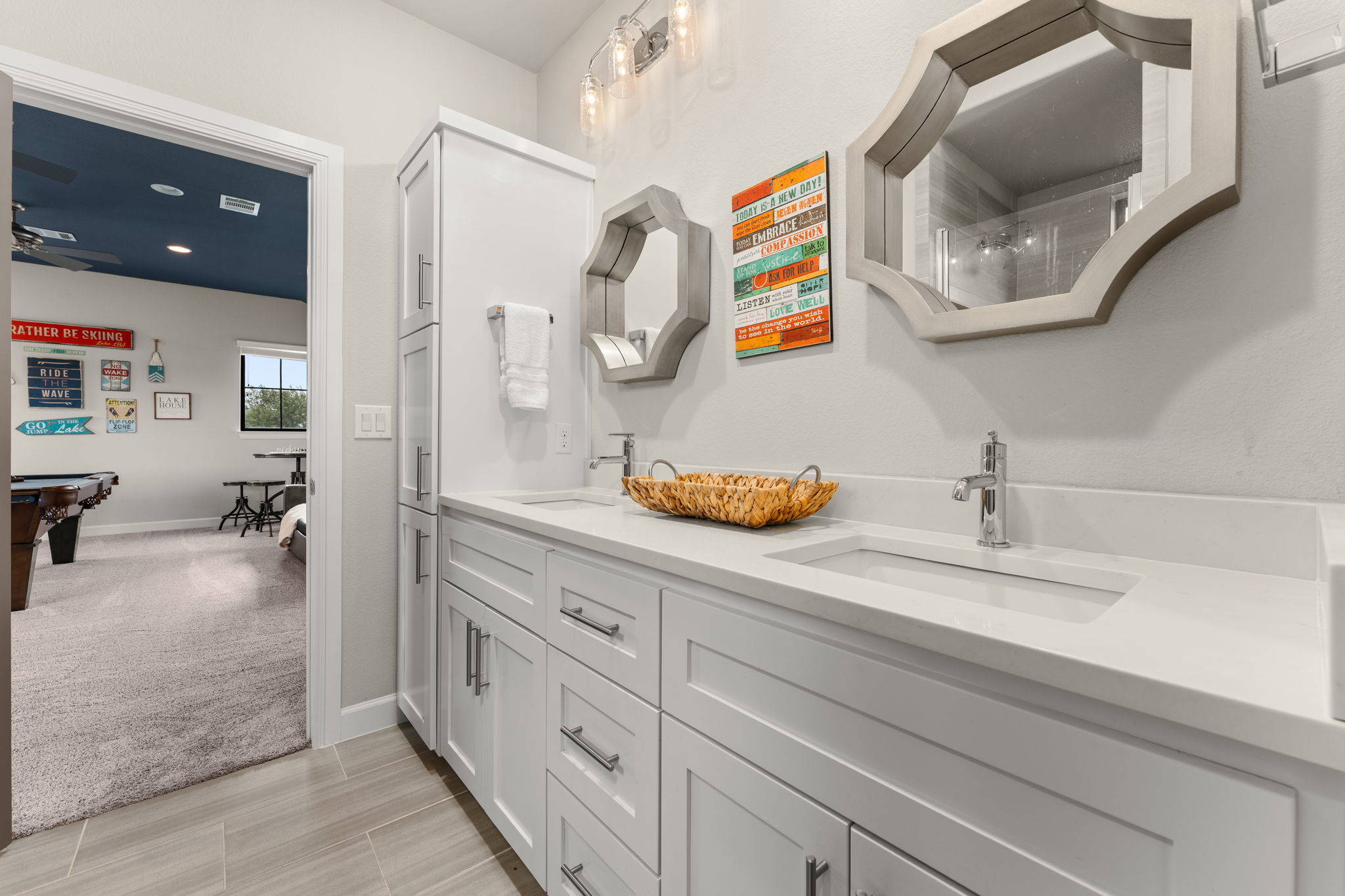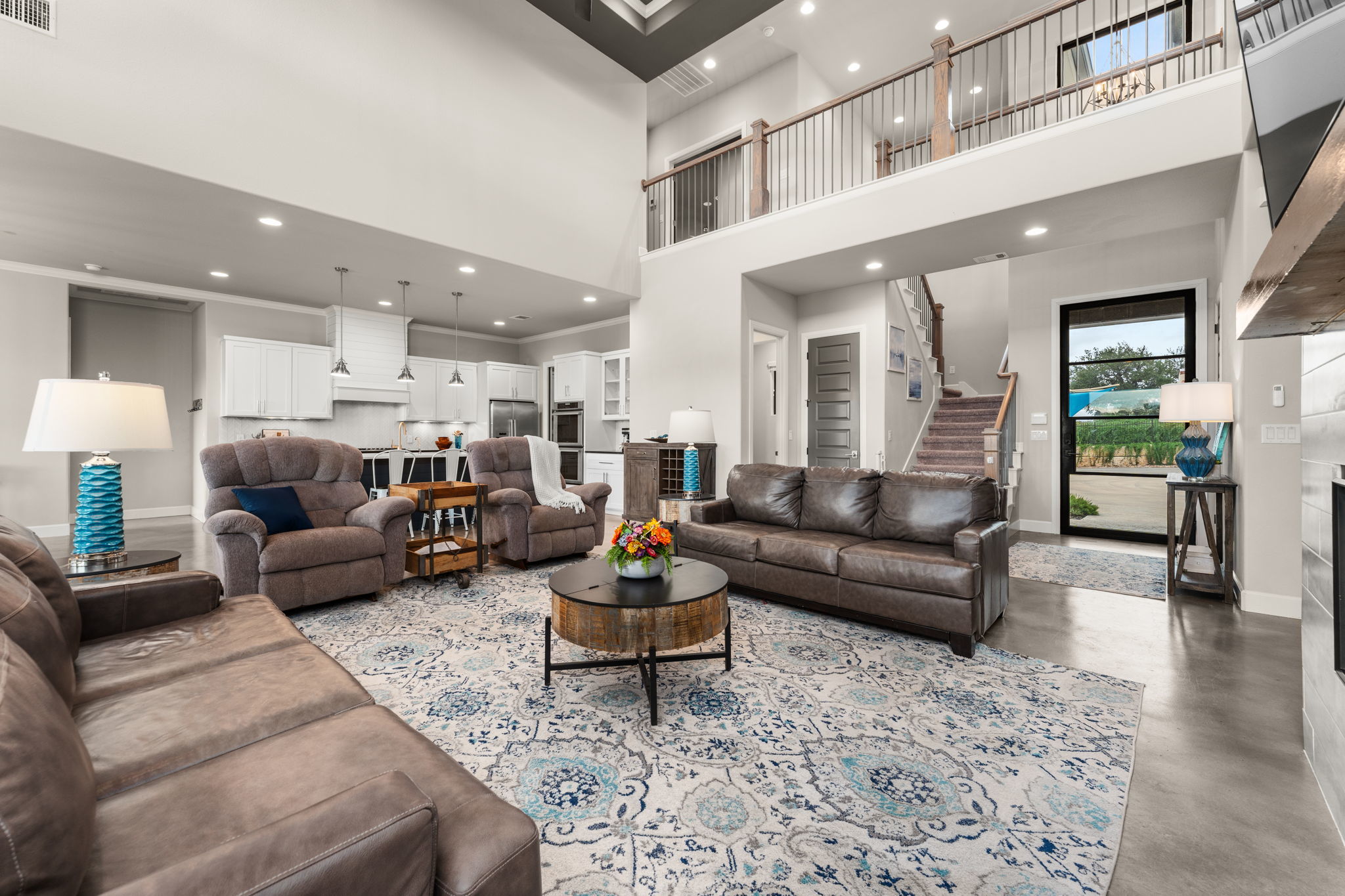 Stunning Turn-Key Luxury Waterfront Home in a Gated Community on Lake LBJ Fully furnished and ready to enjoy, this luxury lakefront retreat offers 6 bedrooms, 5.5 bathrooms, approx. 4,410 sq ft, a resort-style pool and spa, and an upgraded private boat dock. Designed for large groups and effortless entertaining, the home sleeps more than 24 guests with 16 total beds thoughtfully arranged throughout. The main level features an open floorplan with abundant natural light, a spacious dining area that flows into the kitchen and living room, and a kitchen with two large pantries, double ovens, and generous workspace. The primary suite includes a built-in work area, and two additional guest suites offer ensuite baths. Modern finishes and lake-inspired decor create an elevated and inviting setting. Upstairs offers an extra-large king room with built-in bunkbeds and a Jack and Jill bathroom with double vanities shared with a queen bedroom. An oversized bunk room with four bunks sleeps eight and connects by Jack and Jill bath to a spacious game room featuring a queen pull-out couch and a pool table, allowing the game room to serve as an additional bedroom if desired. Outdoor living includes a sparkling pool and spa, generous covered patios, and a highly upgraded private boat dock with a comfortable lounge area and fireplace, double JetSki lifts, and two boat slips with all-aluminum lifts and remotes. The home and the dock are equipped with an automatic bug control system for added comfort. Located in a calm, protected cove, the setting is ideal for paddleboarding, kayaking, floating, and effortless docking. A rare opportunity to own a fully furnished, turn-key luxury waterfront property in one of Lake LBJ’s most desirable gated communities. Buyer to independently verify all information.