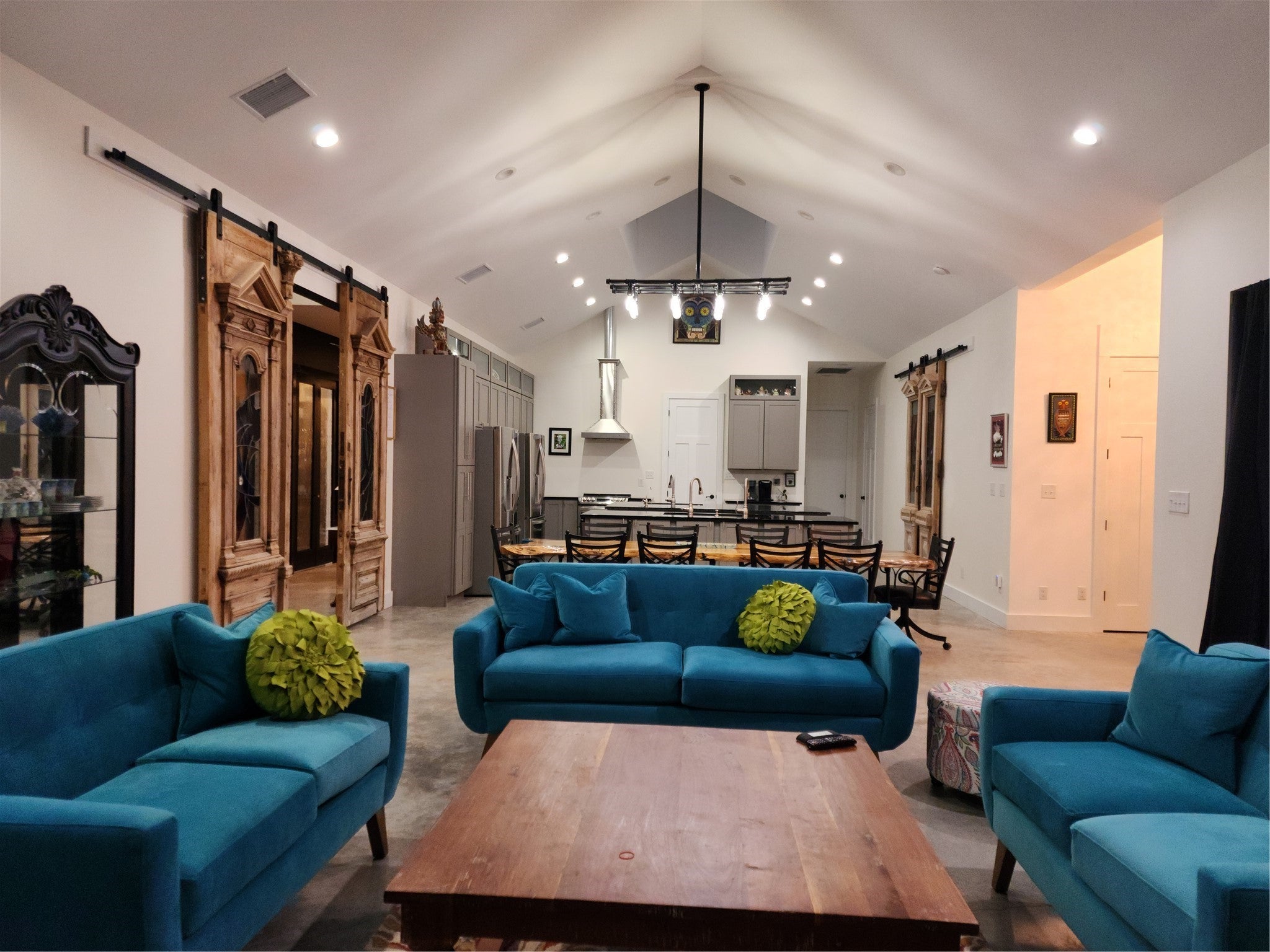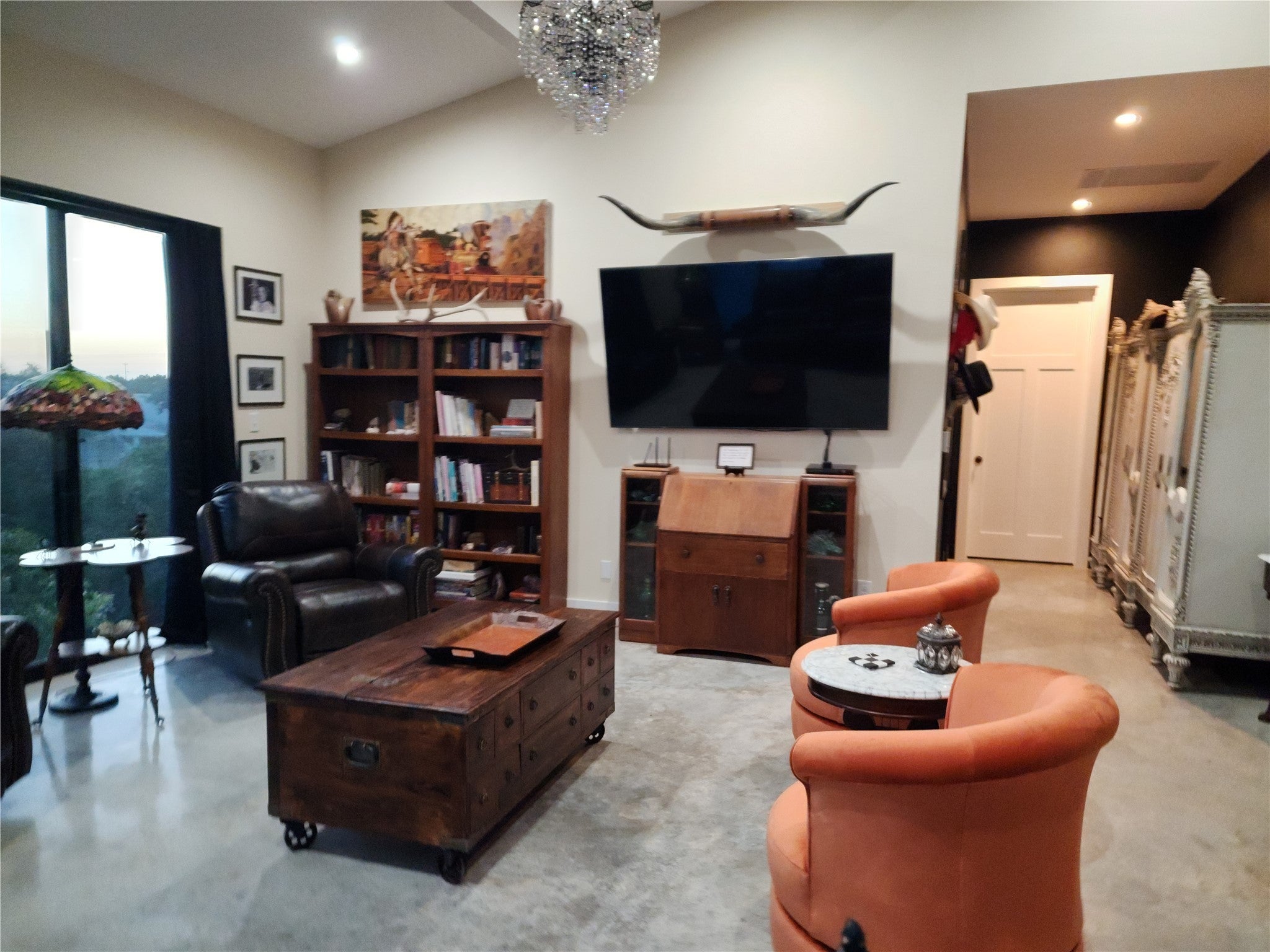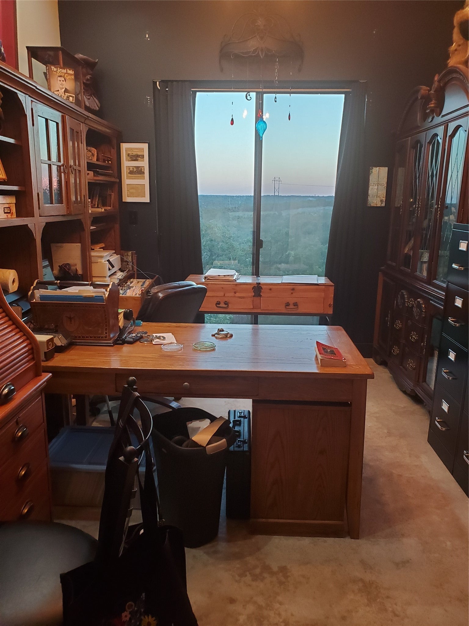 Truly panoramic views. Sunrises from the east facing patios and sunsets from the west back patio and deck. Large apx 20 x 24 covered vaulted ceiling patio with outdoor kitchen area and sink. Refrigerator and bar seating. Propane gas fireplace open to this patio and gathering/living room. View from large kitchen and dining areas in open concept area in home. Unique home has 2 primary bedrooms with spacious baths in seperate wings. One is accessible from adjacent living area, the other is in 2nd wing with 2nd large bedroom. 3rd bedroom with upstairs secret room, So cool! That wing is accesible thru media room and 3rd living area. That wing has a seperate entrance with ramp. The master in this wing has 9 ft wide patio doors open to back deck. This plan is ideal for multi-gen life style or large family with the one wing ideal private escape for parents. The bonus is both wings have their own laundries and study/offices. There are 10 ft walls and 8 ft tall patio doors all thru the house. Zoned into 3 seperate areas with their own heat pump A/C units. The exterior walls and ceilings are foam insulated. All ceilings are vaulted in the main house and in the 2nd residence. 2nd residence is being used as art studio. It has approximately 1,000 feet of the total footage listed and also has an upstairs large storage area. There is a fenced area behind privacy fence that has multiple raised garden beds. The large southfacing covered patio with vaulted ceiling has beautiful panoramic views that also catch the east sunrises and west sunsets. So much family living is available here in this tuly unique home.Want more land? Adjacent 2 lots: 2 acres 250,000 and 3.8 acres 350,000. Beautiful sunsets, sunrises and priced right. The main house is aproximately 4429 HAVAC. The 2nd house is, currently used as studio is aproximately 1390 HVAC. Travis county combines the total footage and it is confusing.