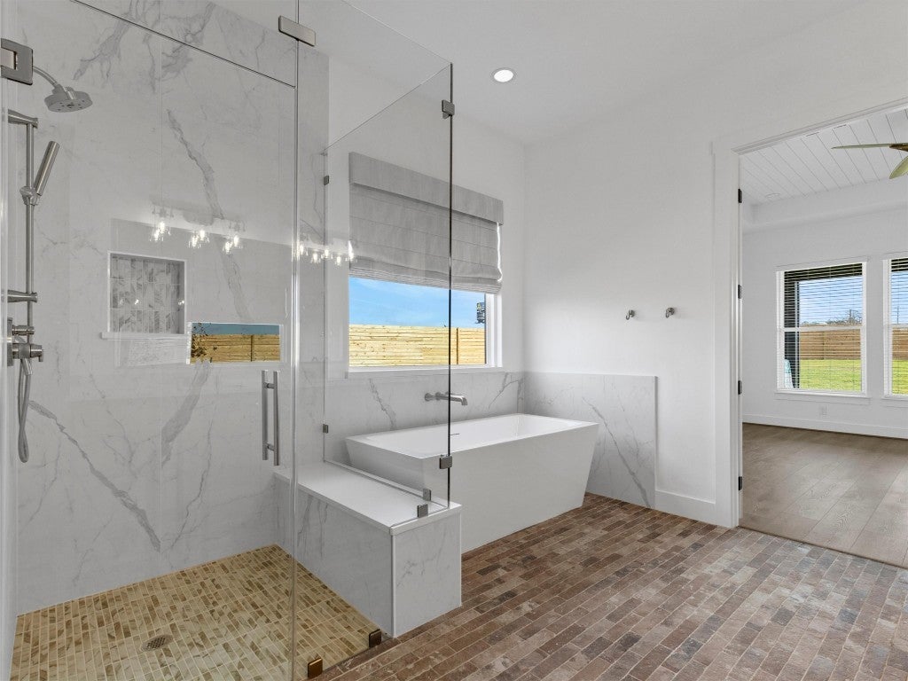 Designed with a sense of quiet luxury, this home balances open living with a warm, comfortable feel. Spacious yet inviting living, kitchen, and dining areas function seamlessly together, creating an easy flow for everyday living and entertaining. The open-concept kitchen is well equipped with a gas range and vent hood, Frigidaire Professional appliances, built-in oven and microwave, wine refrigerator, under-cabinet lighting, and a curved island that anchors the space. Wood-look vinyl plank flooring flows through the main living areas, complemented by wood-beamed ceilings, recessed lighting, and large display windows with custom shades. A brick gas fireplace with mantle adds warmth and character to the living area, while the dining space features a tray ceiling suited for both daily meals and gatherings. The back patio extends the living space outdoors, with a planned summer kitchen designed for relaxed entertaining. Additional highlights include a butler’s pantry, mud area off the garage, laundry room with built-ins, and an oversized three-car garage with an epoxy-coated floor. Thoughtful finishes and generous storage throughout create a home that feels refined, functional, and easy to live in. Agent on site in model TH, Friday & Sunday 12-5 PM and Sunday 10-4. For all other showings, please contact listing agent for access.