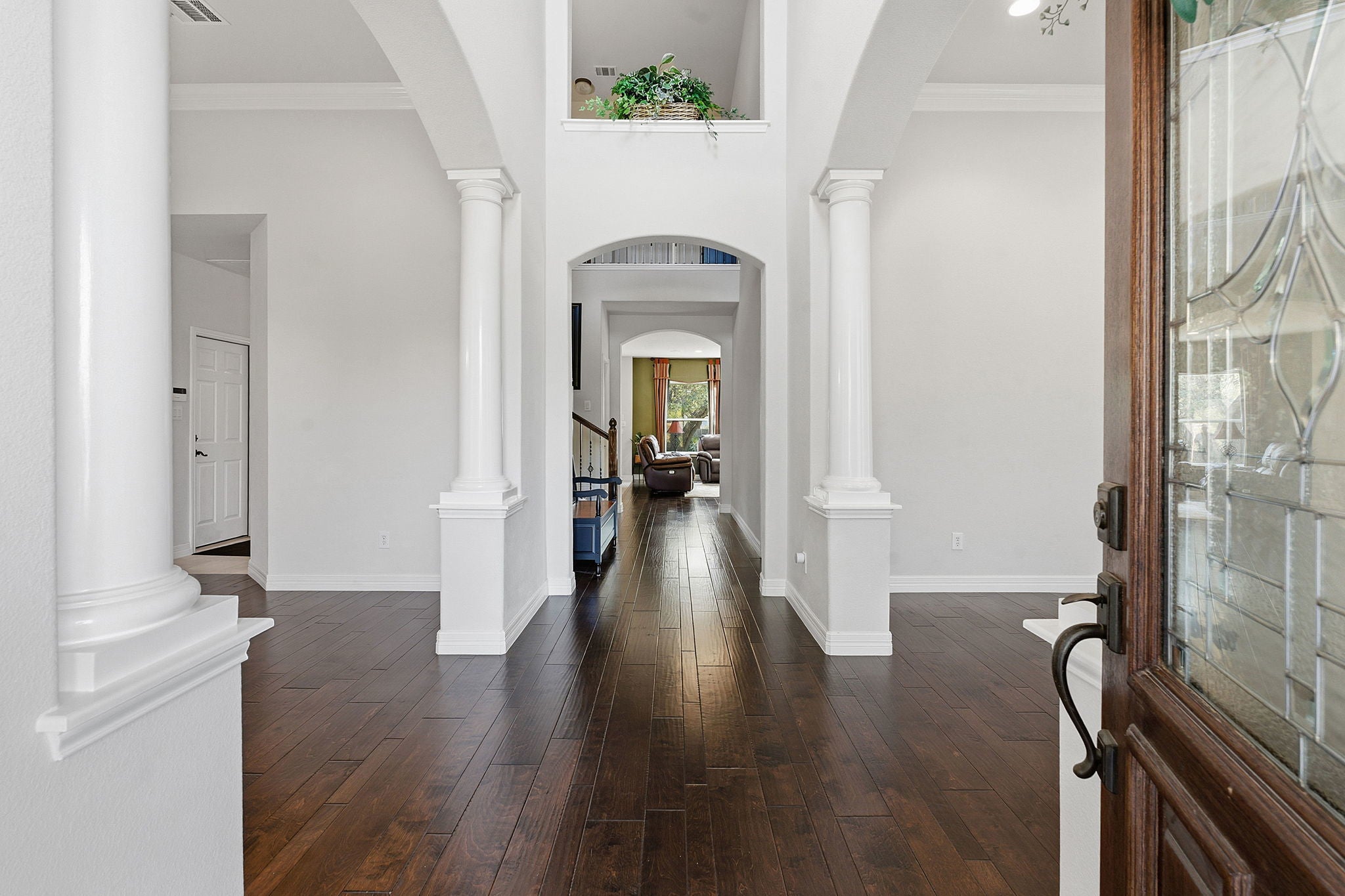 Beautifully maintained Wilshire home located on a premium corner lot in the highly sought-after Avery Ranch Golf Community. This spacious residence offers 4 bedrooms, 3.5 baths, plus a dedicated office, along with a 3-car garage and timeless four-sided stone exterior. A highly desirable layout features the primary bedroom with an attached sitting room on the second level, along with a secondary first-floor bedroom with a private en-suite full bath—perfect for in-laws, guests, or multigenerational living. Formal living and formal dining areas provide elegant entertaining spaces, while a wood-burning fireplace adds warmth and character. Recent updates include fresh interior paint upstairs, a tankless water heater, and a Trane HVAC systems approximately 5 years old. Exterior paint was completed approximately 5 years ago, reflecting pride of ownership throughout. Outdoors, enjoy a full sprinkler system with an auto-sensing Wi-Fi controller for efficient and convenient lawn care. Ideally located just 10 minutes from the Apple campus and minutes from shopping, dining, top-rated schools, and easy access to the interstate. This is a rare opportunity to own a thoughtfully designed home in one of Northwest Austin’s most desirable golf course communities.