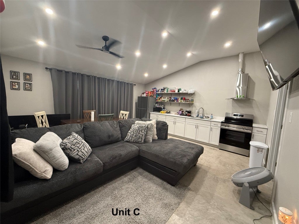 Spacious and versatile property featuring a 3-bedroom main residence with a dedicated TV room and separate office. The home offers a grand primary bathroom with upscale finishes. Full 2-car garage included, along with a luxury garage apartment ideal for guests, additional living space or rental income. Property also includes a separate tiny luxury home, providing excellent flexibility for guest use, home office, or potential rental Income. The beautifully landscaped backyard showcases high, layered pergolas and a built-in grill area, perfect for outdoor entertaining. Unique opportunity with multiple living spaces and exceptional outdoor amenities. Garage Apartment Unit C is currently leased. Luxury Tiny Home Unit B is currently leased.