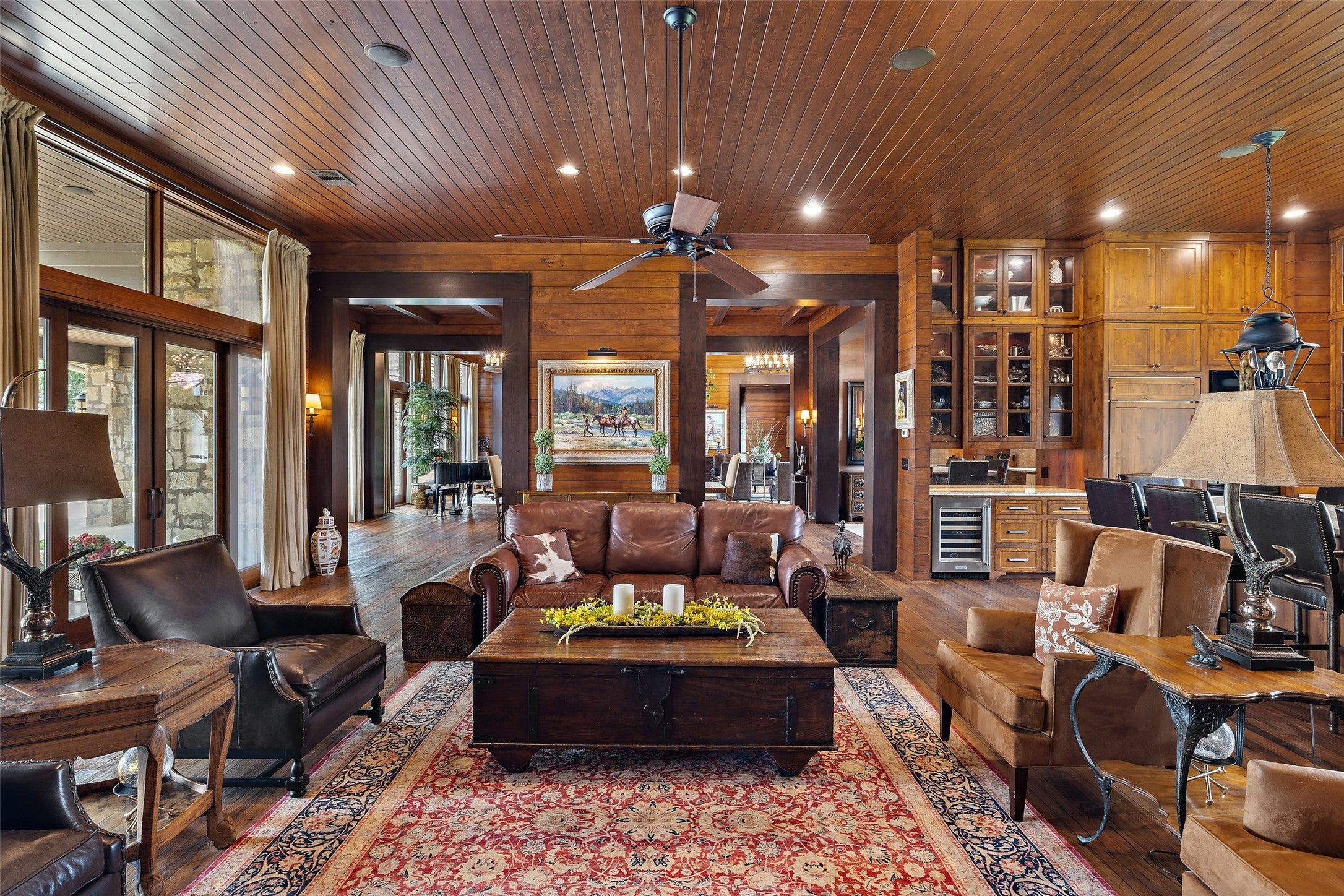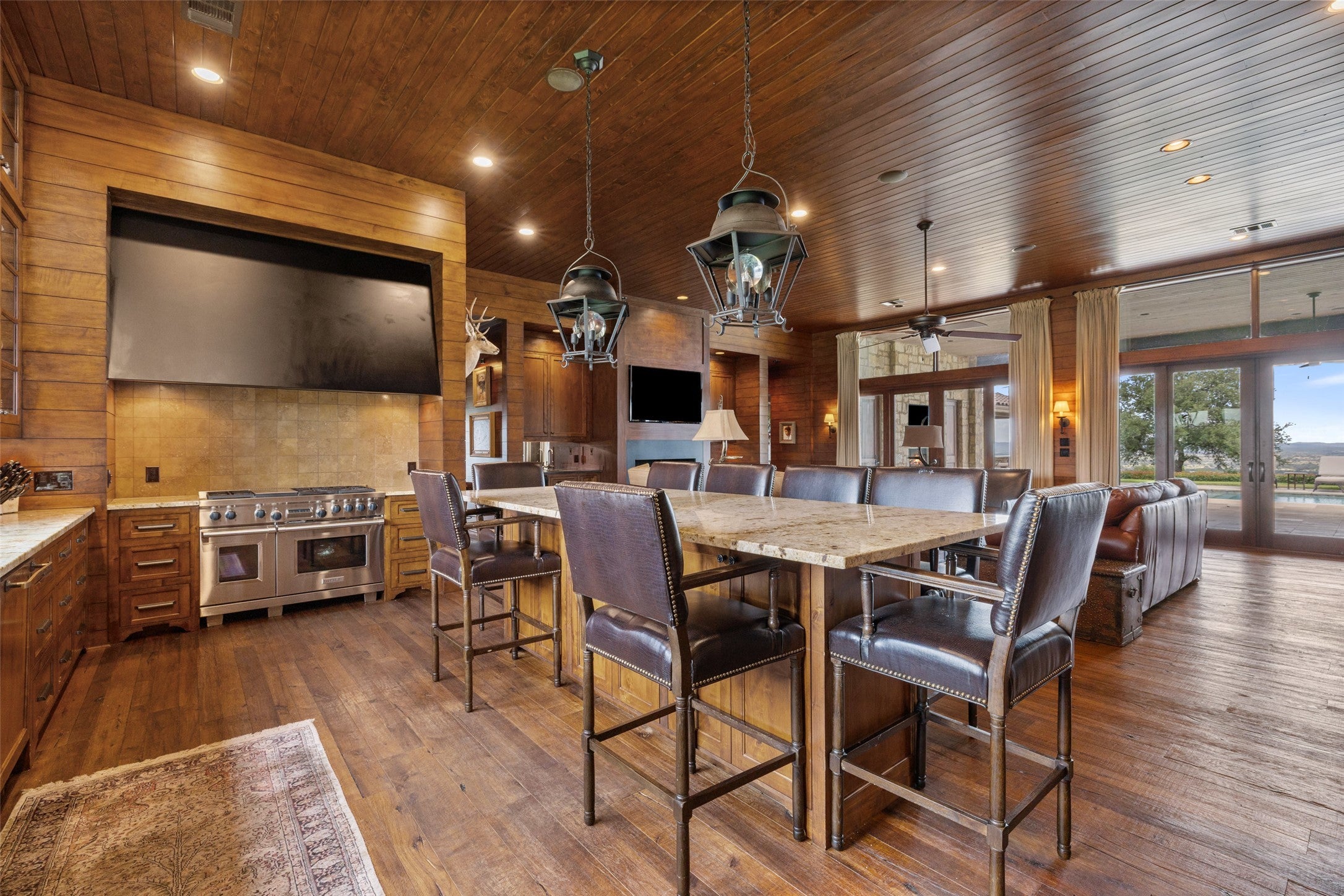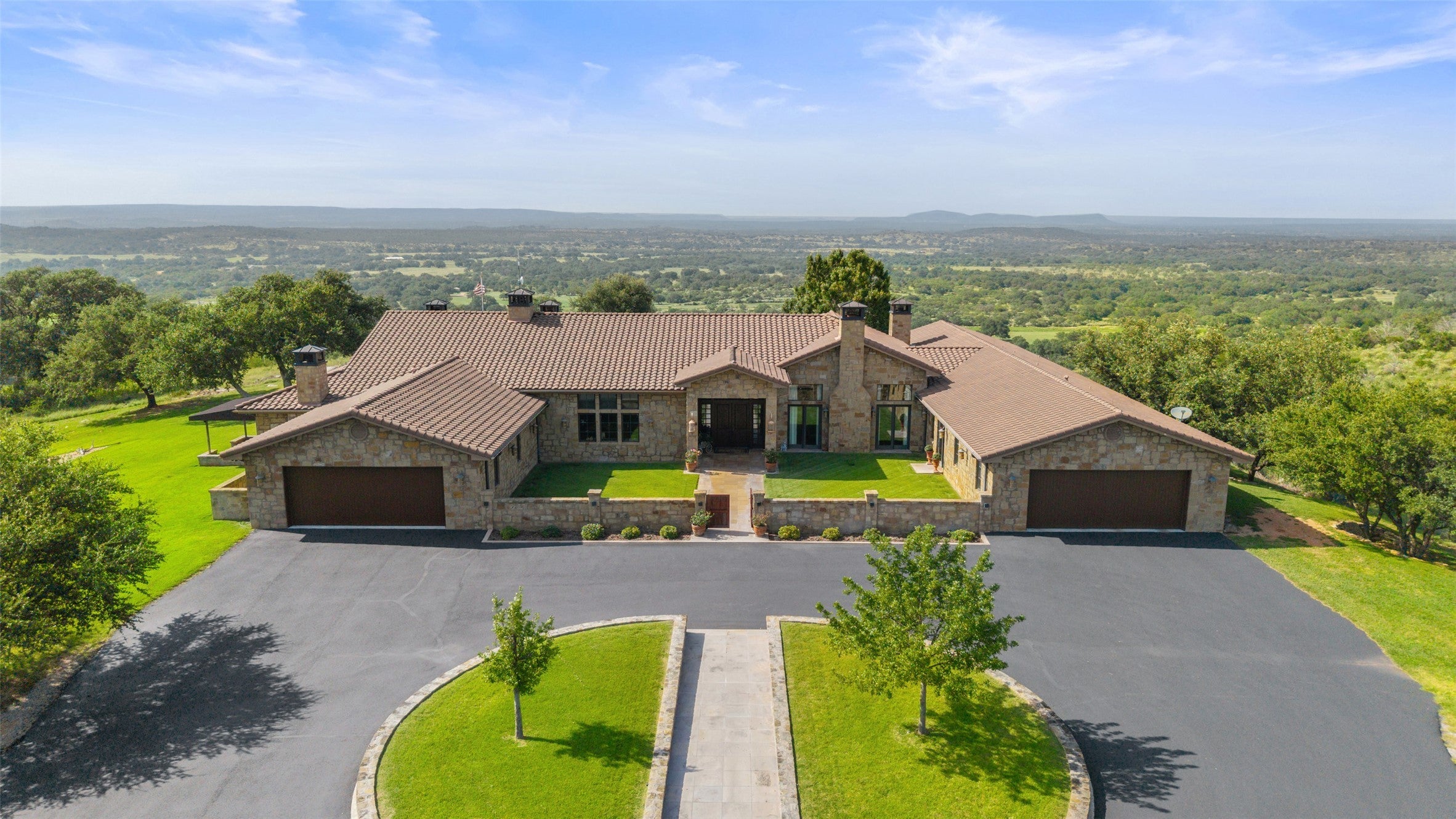 Luxury Hill Country ranch with a 6,750 sq. ft. main home showcasing chef-caliber Sub-Zero, Miele, and Wolf appliances, 2 laundry rooms, a wine room, 2 primary suites, and views, views, and more views. Includes a guest house, resort-style pool, expansive outdoor entertaining area, and a barn with 4 stalls. One-third improved pasture and two-thirds native landscape with mature oaks, 3 ponds, wet-weather creeks, and abundant wildlife create prime hunting and ranching opportunities. Ideally located just 20 minutes to Horseshoe Bay Jet Center, 60 minutes to Austin, and 90 to San Antonio.