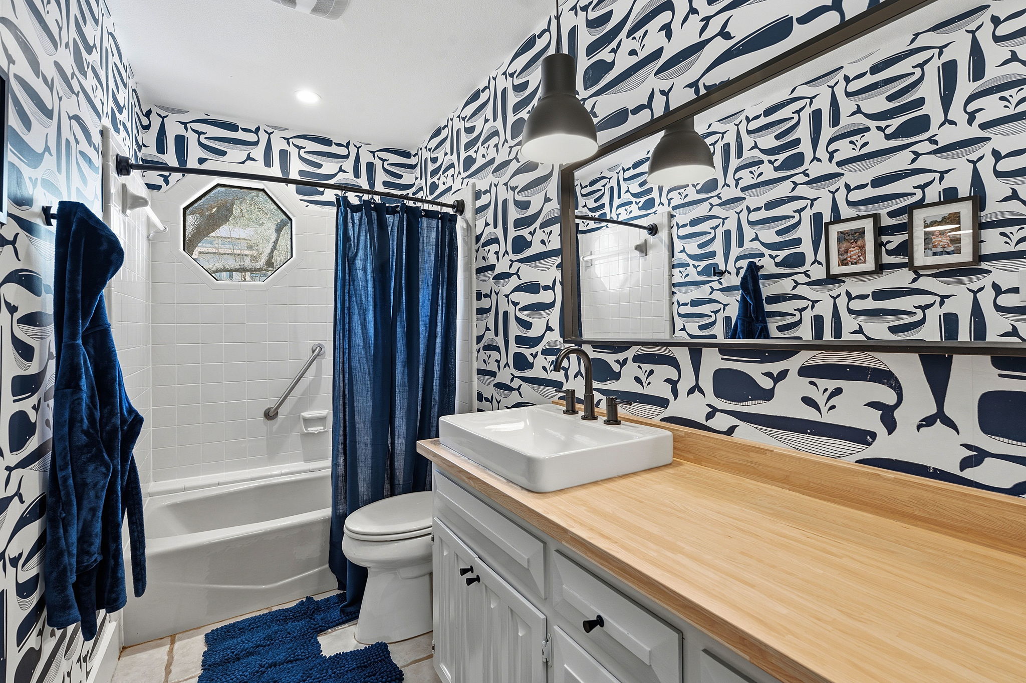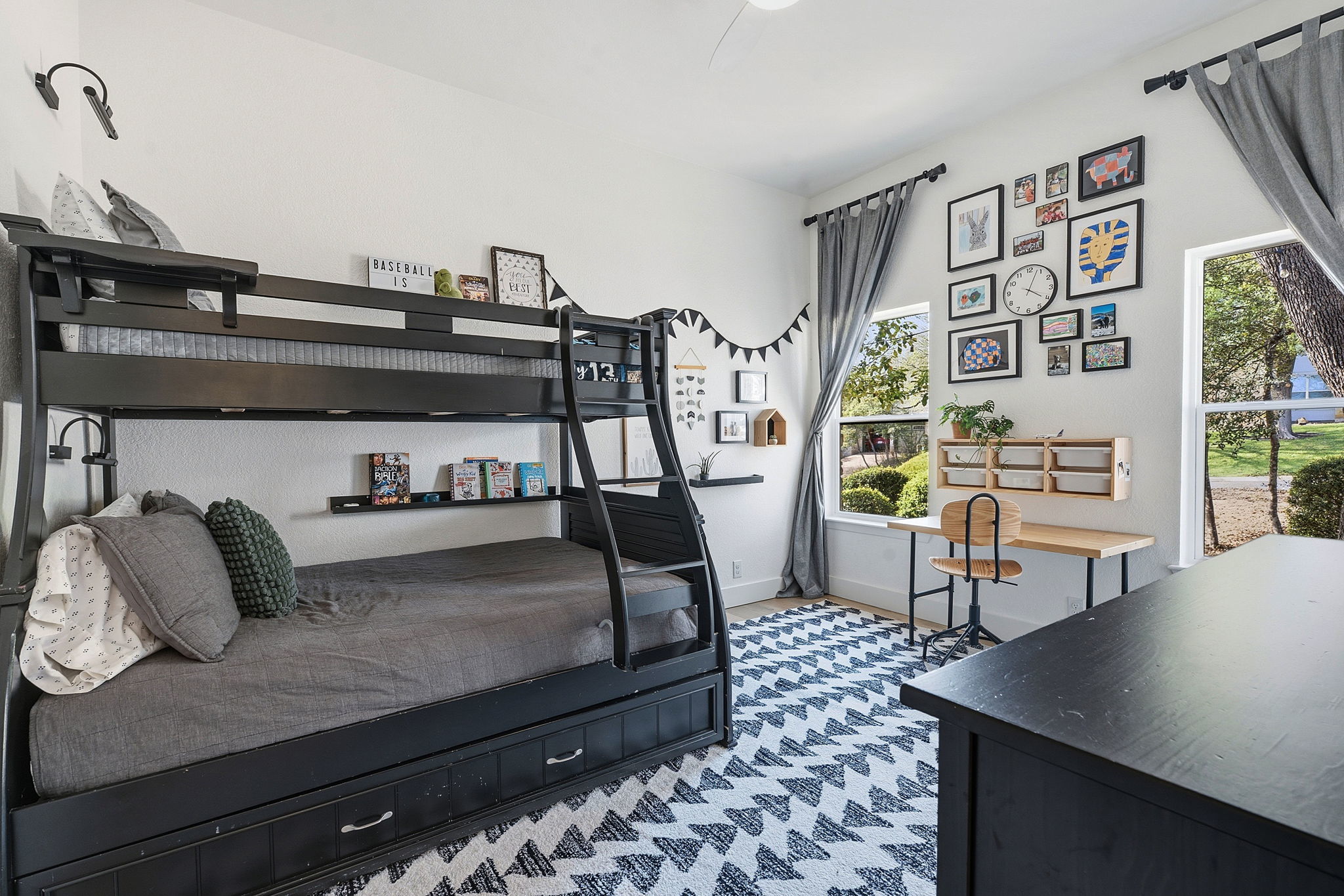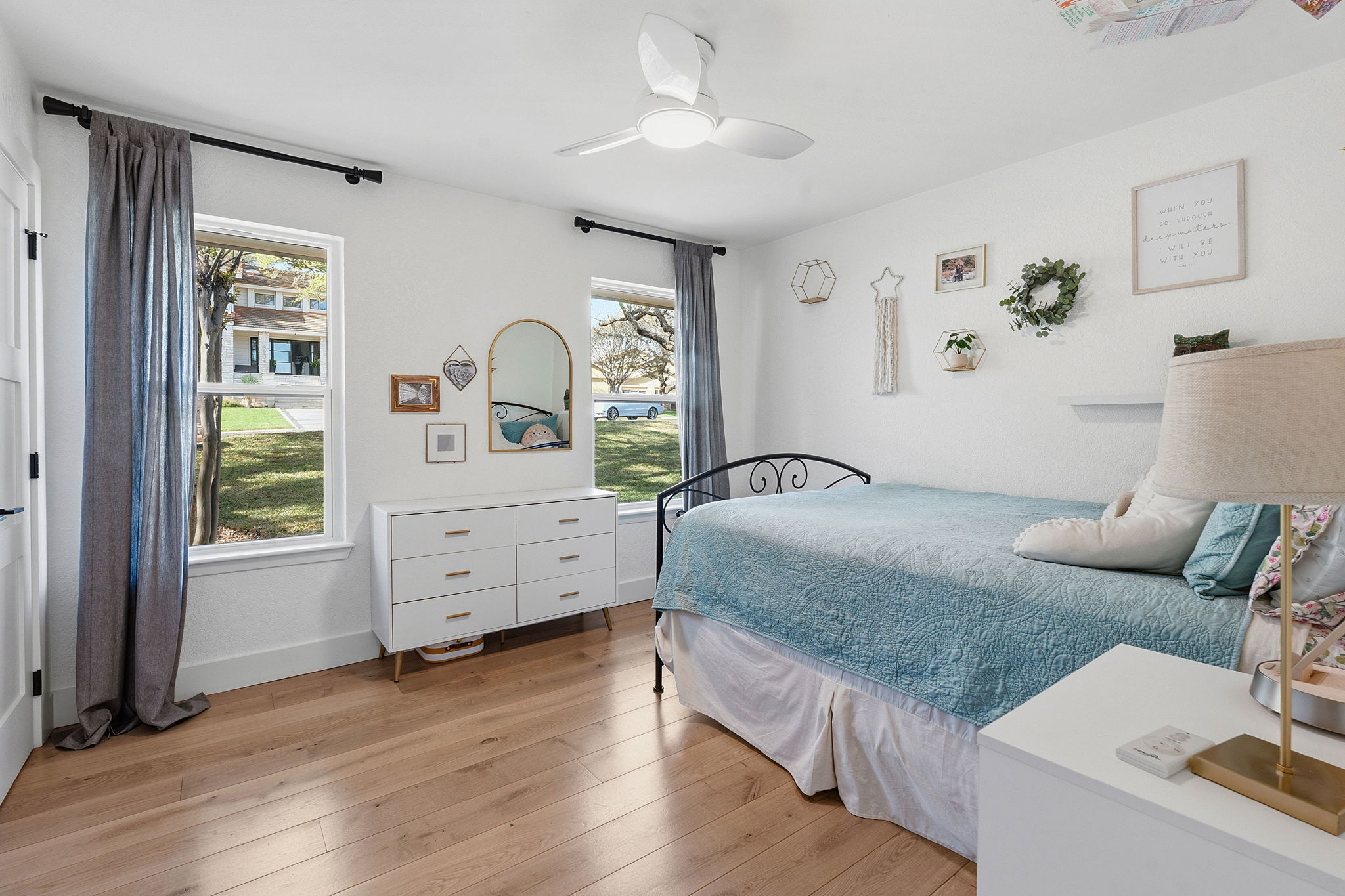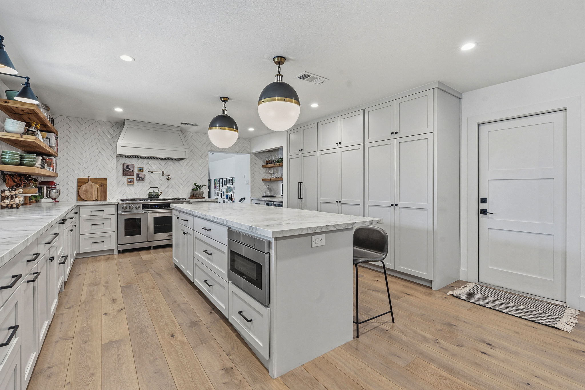 Discover unparalleled sophistication at 5907 Ivy Hills Dr in the coveted Great Hills golf community—moments from prestigious Great Hills Country Club in Northwest Austin. This 3,569 sq ft residence was fully remodeled by acclaimed design-build firm Thirty 7 Degrees, converting the mid-century layout into a seamless open-concept masterpiece with exceptional sightlines and curated luxury finishes. Set on a prime low-traffic corner lot with mature trees, fresh landscaping, and panoramic golf course/Hill Country sunset views from Trex decks and poolside patio. Features include energy-efficient tile roof, lifetime vinyl windows, and custom iron front door opening to a soaring vestibule with dramatic stacked stone accent wall. Main level offers a refined office with built-ins, two secondary bedrooms sharing an updated bath, and grand family room with beamed ceilings, wall of windows, oversized stacked stone fireplace, and wide-plank white oak floors. Dining flows into the chef’s kitchen with bespoke cabinetry, Fisher & Paykel French Door fridge, dual dish drawers, 48" Dacor dual-fuel range with dual ovens, Brizo pot filler, custom hood, Dekton counters, oversized island (seats 5) under Thomas O'Brien pendants, and more. A second retreat features sliding doors to pool views, cozy fireplace, built-ins, plus third bedroom with en-suite bath. Upstairs primary suite includes dual walk-in closets with barn doors, private covered deck for sunset views, and spa bath with frameless walk-in shower (bench), dual vanity, Brizo fixtures, and 67" soaking tub. Outdoors: extra-deep pool under mature oaks, gas firepit, string lights, re-sodded side yard with chicken coop (3 hens), raised garden bed, and play space. Zoned for top-rated Hill Elementary, Murchison Middle, and Anderson High. Enjoy nearby club golf, tennis, pickleball, and poolside living. The ultimate blend of luxury, location, and lifestyle—schedule your private showing today. Welcome home!