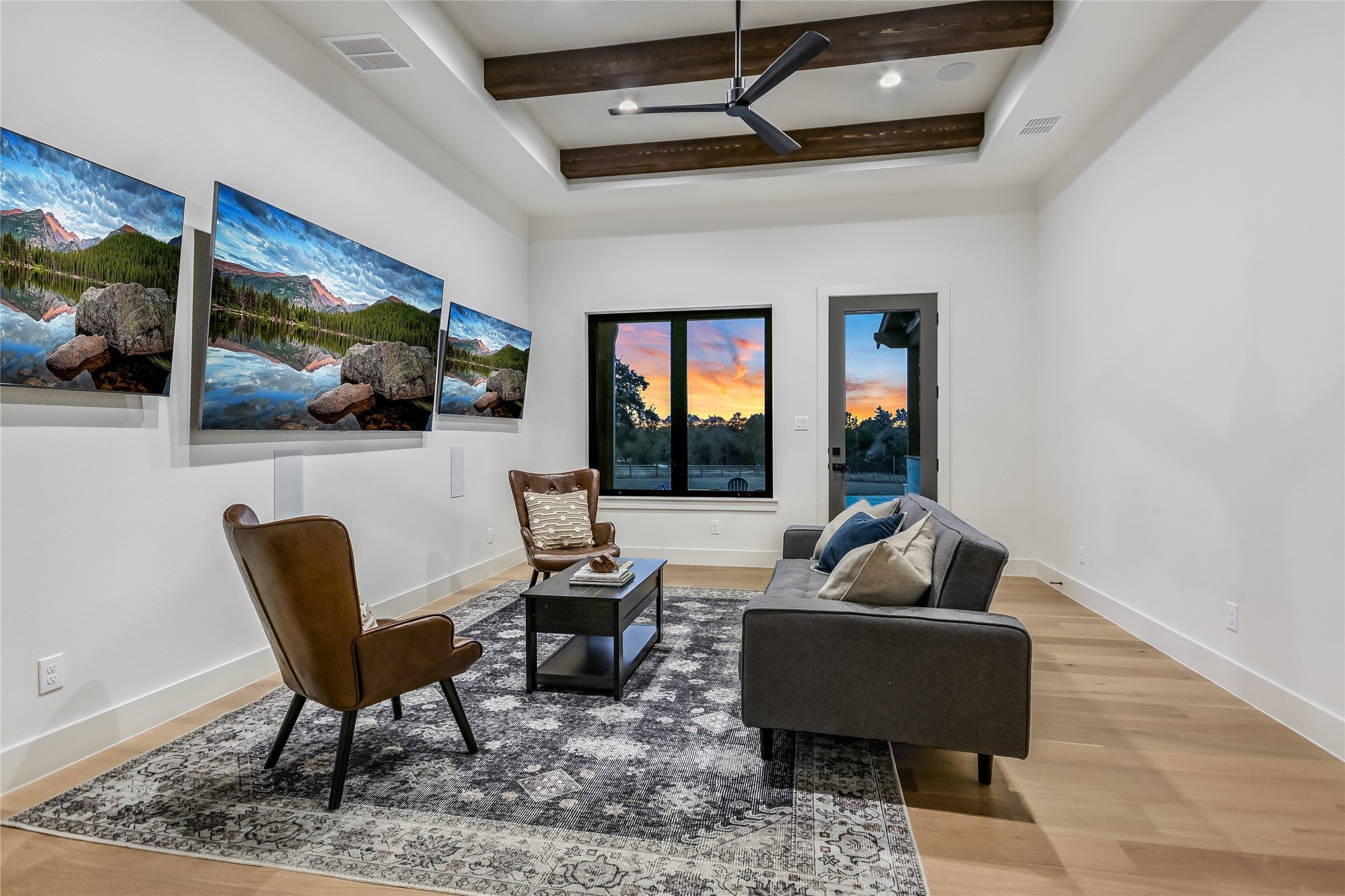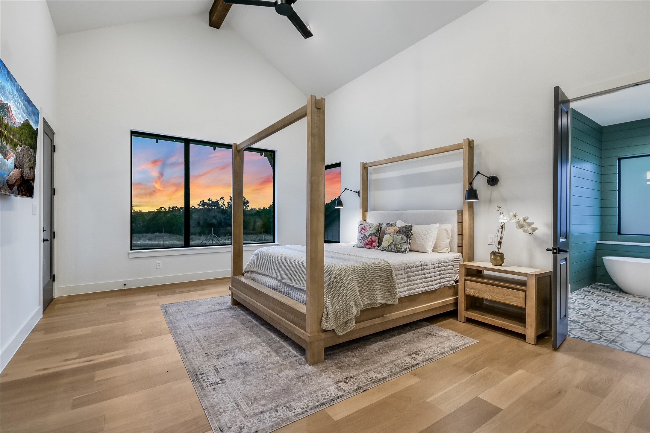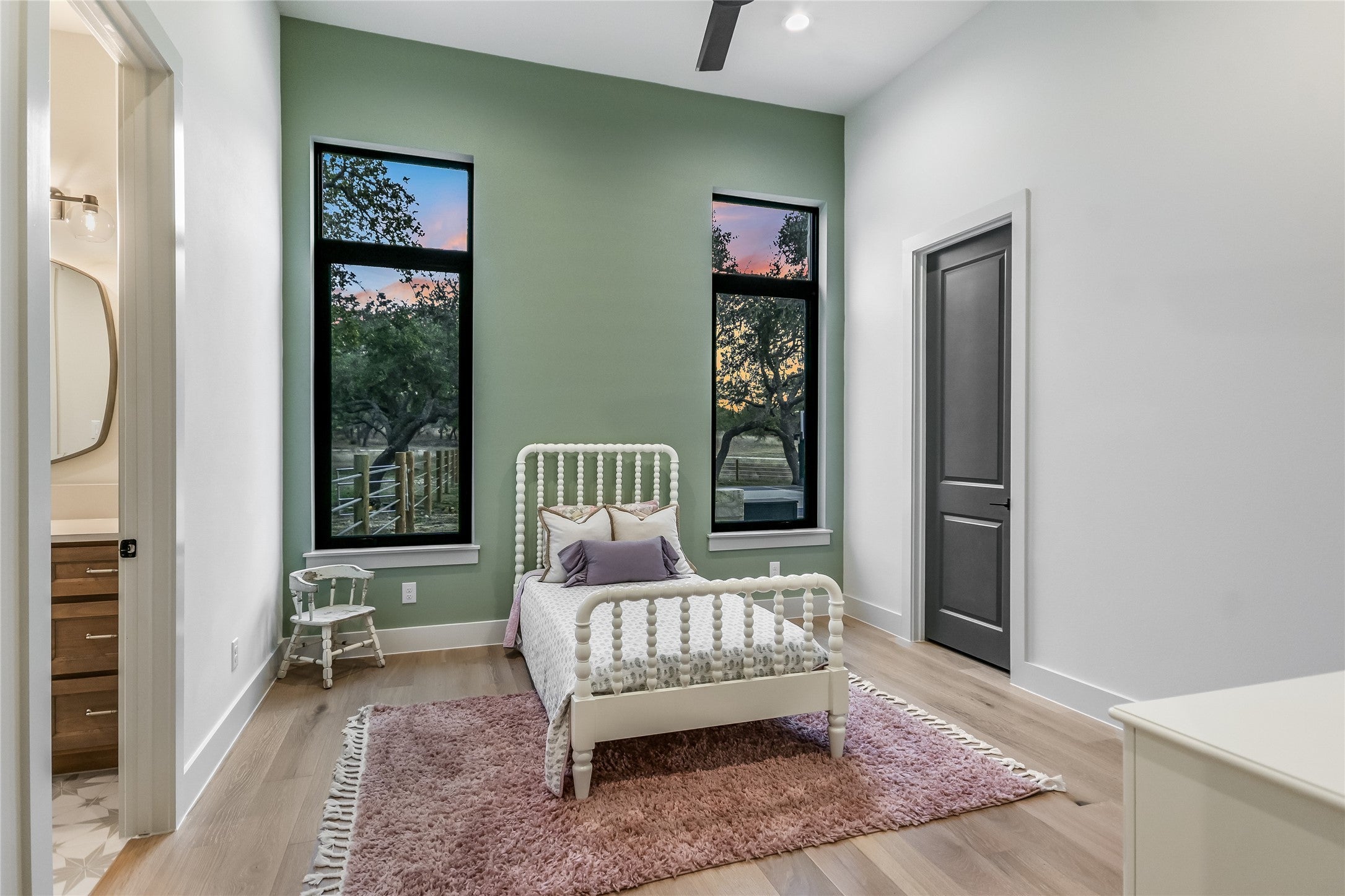 Nestled within the exclusive gated community of Hunter’s Ridge, this stunning one-story estate sits on over 12 acres in the heart of Wimberley, home of the Wimberley Texans. Offering 4,494 sq. ft. of thoughtfully designed living space, this 4-bedroom, 3.5-bathroom home is a true Hill Country retreat, blending luxury with comfort in every detail. Step inside, and you’re immediately welcomed by soaring ceilings, rich wood floors, and an open-concept layout bathed in natural light. The spacious living area centers around a floor-to-ceiling stone fireplace, perfect for cozy gatherings. Just beyond, the chef’s kitchen is both stylish and functional, boasting high-end stainless steel appliances, quartz countertops, an oversized island, custom cabinetry, and a generous walk-in pantry. The primary suite is a private haven, complete with a spa-like ensuite featuring a soaking tub, walk-in shower, and dual vanities. A massive walk-in closet provides ample storage. Three additional bedrooms offer comfortable accommodations, each with unique charm. This home is built for both entertainment and practicality. A dedicated media room promises cinematic experiences, while a hidden speakeasy adds a touch of old-school sophistication. The home gym is perfect for wellness enthusiasts, and an oversized mudroom with built-in storage helps keep daily life organized. A secondary laundry closet adds extra convenience. Step outside to your personal paradise, where a heated pool and hot tub invite relaxation. A sport court is ready for friendly competition, and the outdoor grilling station makes hosting effortless. Custom outdoor lighting enhances the ambiance as the sun sets over the Hill Country. Additional features include a whole-home reverse osmosis system and an oversized three-car garage. Located minutes from downtown Wimberley and top-rated Wimberley ISD schools, this exceptional estate offers the perfect blend of tranquility and convenience.