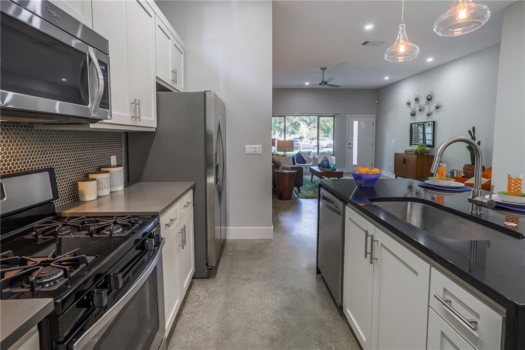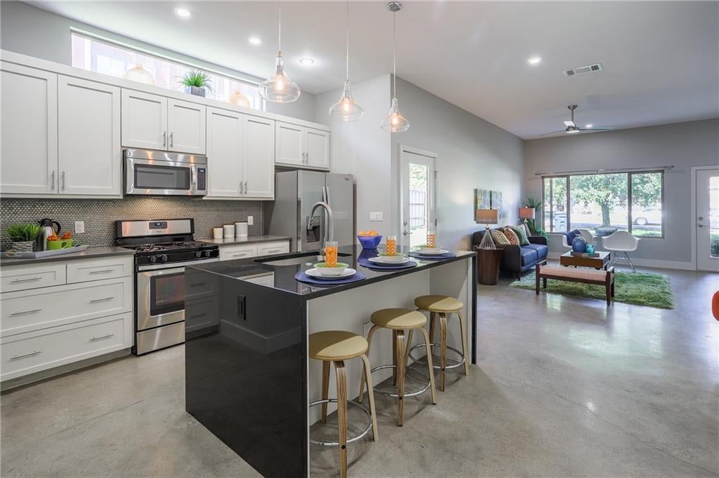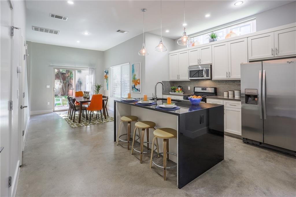 Beautiful high-end newer construction 3 story duplex located near the corner of Guadalupe at Zennia. Large private backyard with awesome deck overlooking the yard. Large open concept living/kitchen/dining with stained concrete floors, granite countertops, stainless appliances, half bath down and all bedrooms up make this a perfect place to entertain. Master bath is incredible with HUGE closet. Fans in every bedroom and large closets with plenty of storage. Washer and Dryer included.