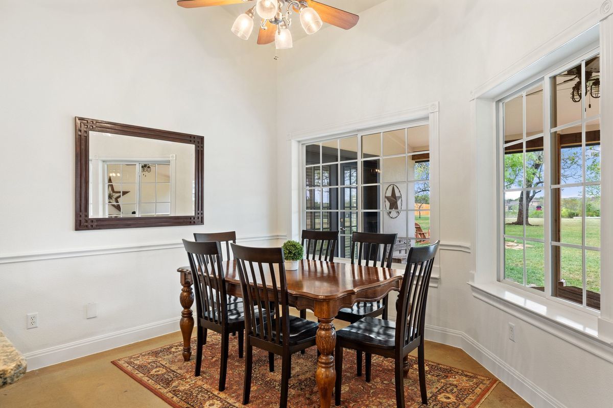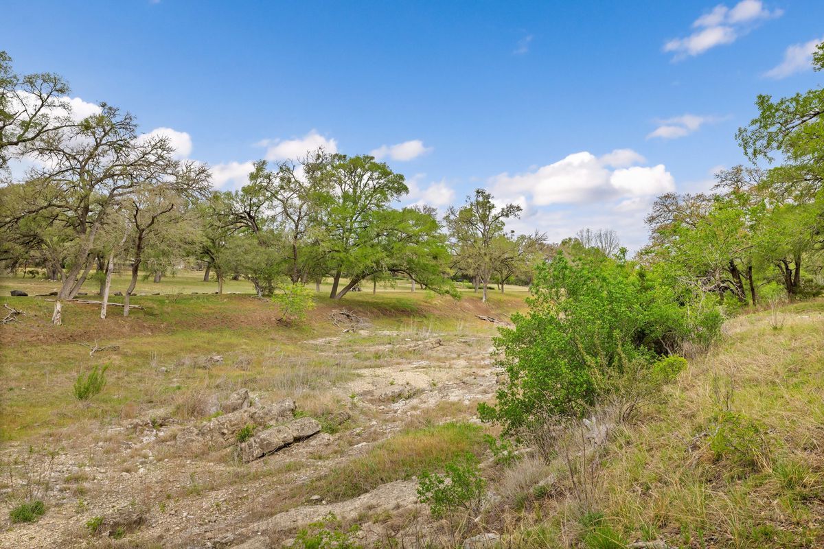 Set within the gated Estate section of Ruby Ranch, this single-story residence sits on 2 usable acres shaded by mature Live Oaks and backing directly to Onion Creek—an uncommon combination of privacy and Hill Country beauty that’s increasingly hard to find this close to Austin. This custom home spans 3001 SF with 4 bedrooms and 3 full baths. The main living area is anchored by a wood-burning fireplace and framed by double French doors that pull in natural light and long views of the property. The kitchen, dining, and living areas connect seamlessly while maintaining clear, defined spaces, striking a balance between openness and thoughtful separation. Out back, an expansive covered patio opens to Live Oaks, a creekside setting, and peaceful sunsets. Gather around the fire pit for evening chats or nurture homegrown vegetables and herbs in the garden. Wildlife and open sky replace traffic and noise. The level backyard is ideal for a pool and casita. Create your own oasis! A dedicated office sits apart from the main living areas, and a flexible secondary space can shift with your needs—fitness, media, or play. The utility room is oversized and practical. The primary suite is positioned for privacy and includes direct patio access. The generous bath is designed with scale in mind—a separate soaking tub surrounded with natural light, walk-in shower, dual vanities, and a thoughtfully configured walk-in closet with built-in organization that maximizes usability. A side entry three-car garage supports both storage and hobby use, and the property benefits from a low 1.71% tax rate. The roof was replaced in November 2025 and has a transferable warranty. Ruby Ranch is known for its acreage homes, quiet setting, and access to the broader Hill Country lifestyle, while still keeping you within reach of Buda, Kyle, San Marcos, and Austin for dining, work, and day-to-day needs. This is the kind of property people hold onto for a long time, and for good reason.