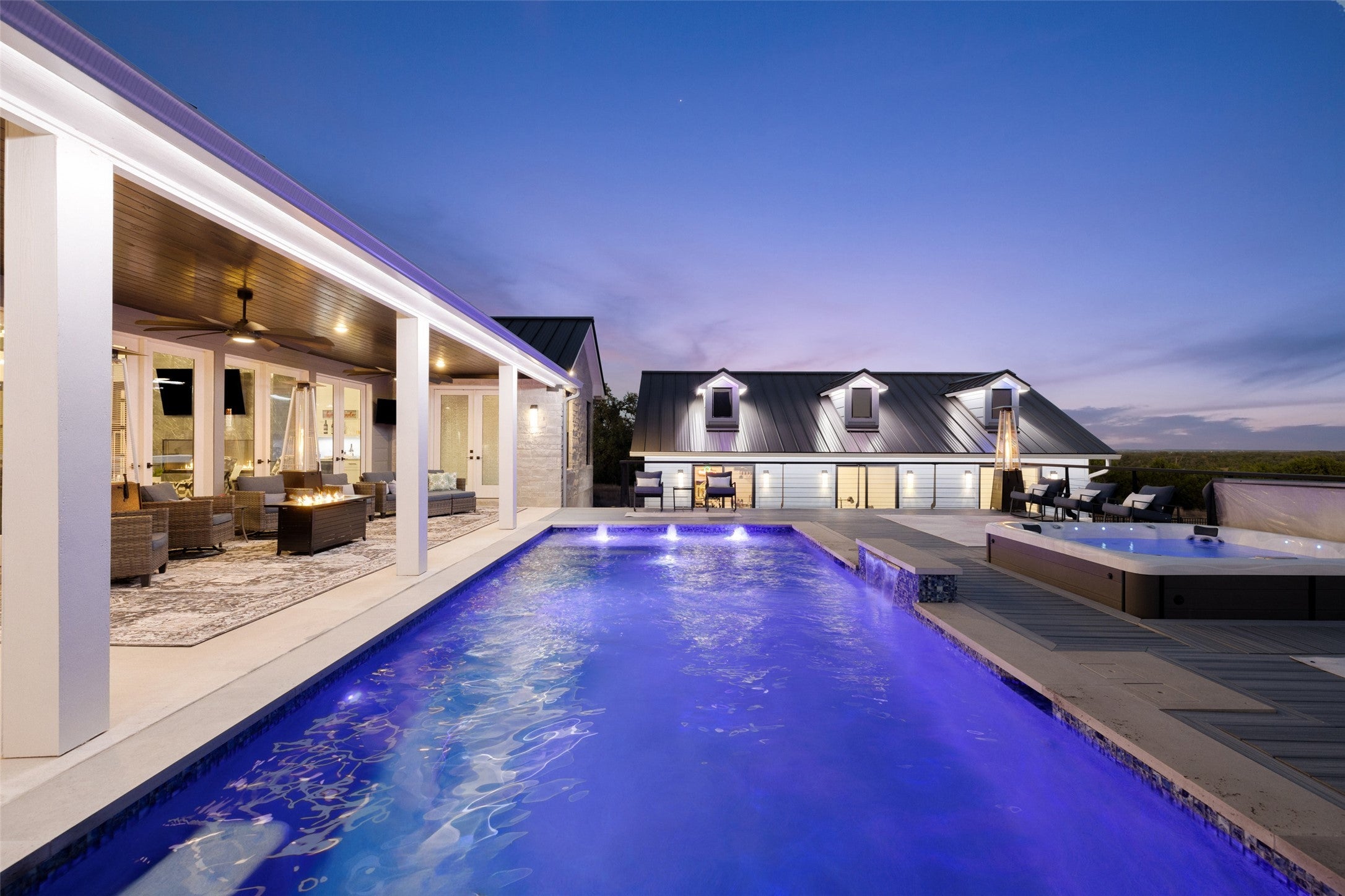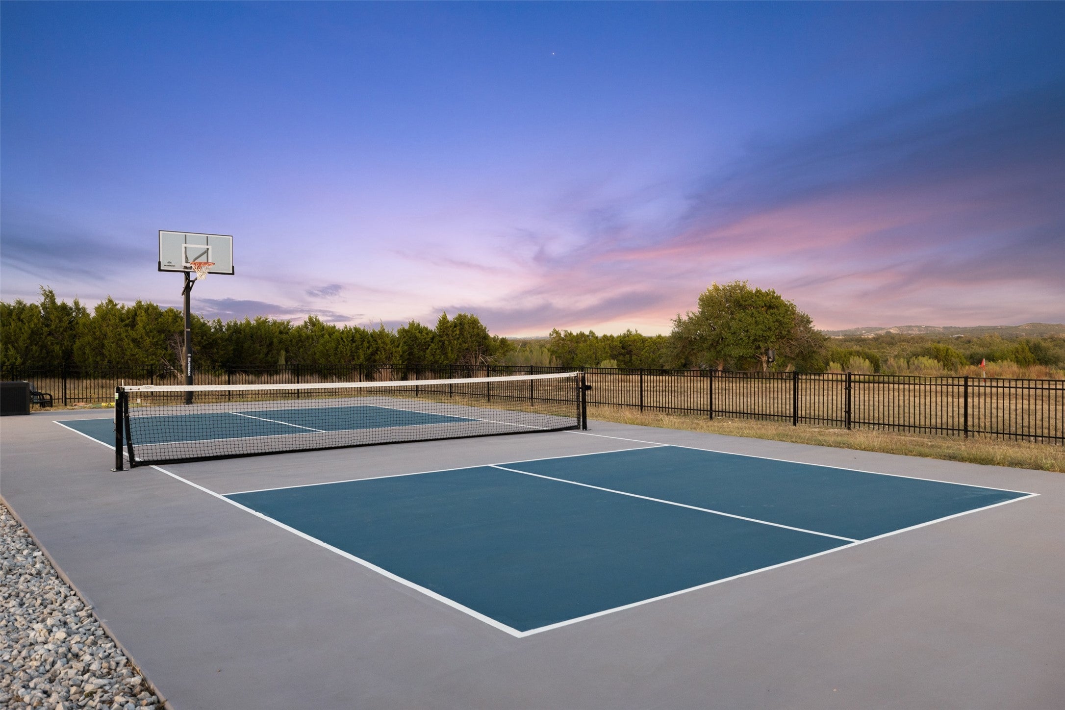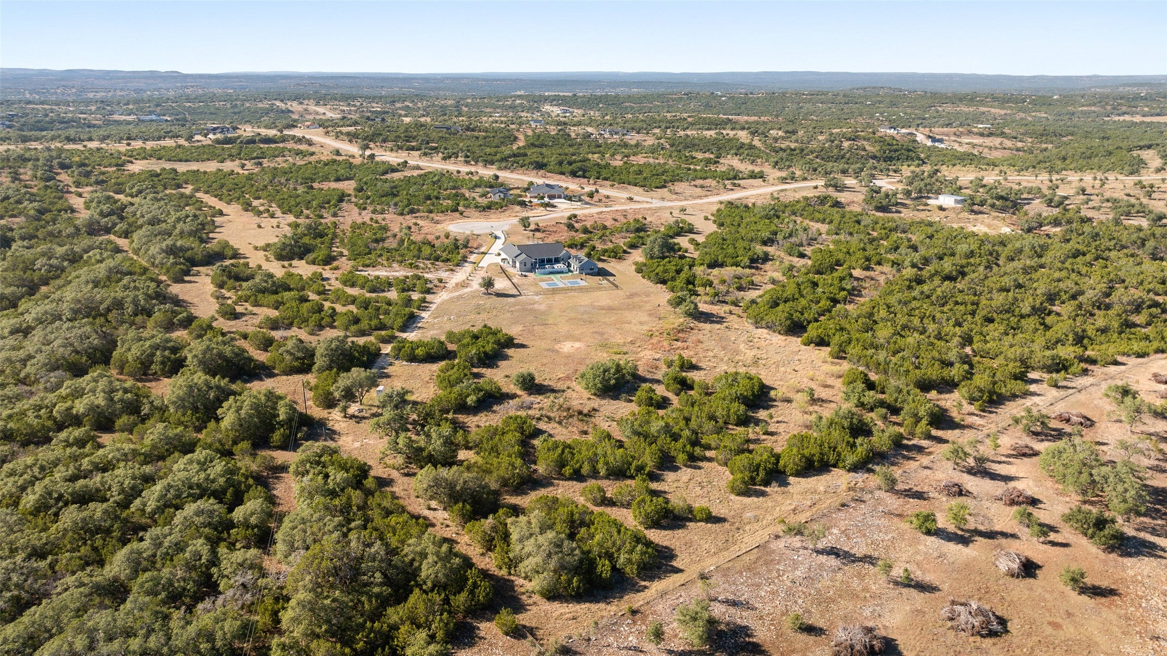 Legacy Hills ~ A Modern Hill Country Sanctuary ( LOW 1.35% TAX RATE with AG-EXEMPTION) Privately positioned on a quiet cul-de-sac within the gated community of Legacy Hills in Blanco County, just right outside Henly, this exceptional 6.5-acre estate redefines Hill Country luxury. Completed in 2023, the single-story residence blends sophisticated design with the serenity of its natural surroundings, offering an effortless balance of elegance and ease. A rare wild game agricultural exemption enhances the property’s privacy and open landscape, where herds of Oryx and Black Buck roam freely against a backdrop of rolling hills and endless skies. Designed for both entertaining and peaceful retreat, the home’s open layout flows seamlessly to a resort-inspired outdoor living space featuring a shimmering pool and spa with hot tub, multiple lounge areas, a pickleball court, and beautiful exterior lighting that transforms the property into a luminous retreat under the Texas sky. A separate guest casita expands the experience with its own game room and private gym, ideal for extended stays or multi-generational living. Every detail was curated for connection—to nature, to family, and to the tranquil rhythm of Hill Country life. Backing to a vast private ranch within a dark-skies community, this property promises unspoiled starlit nights and breathtaking sunsets—all just minutes from the charm of Dripping Springs, Blanco, Johnson City, Fredericksburg, and Austin. Legacy Hills ~ Where modern design meets timeless Texas beauty.