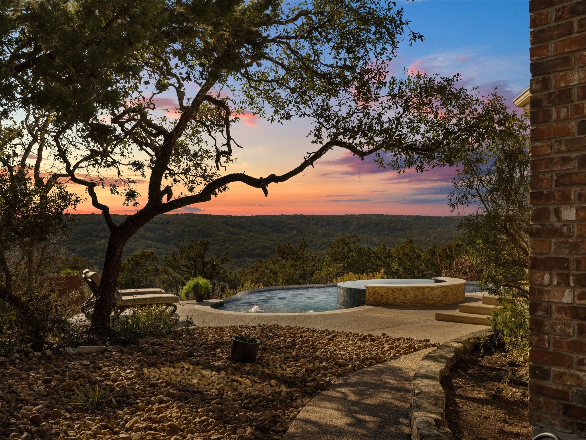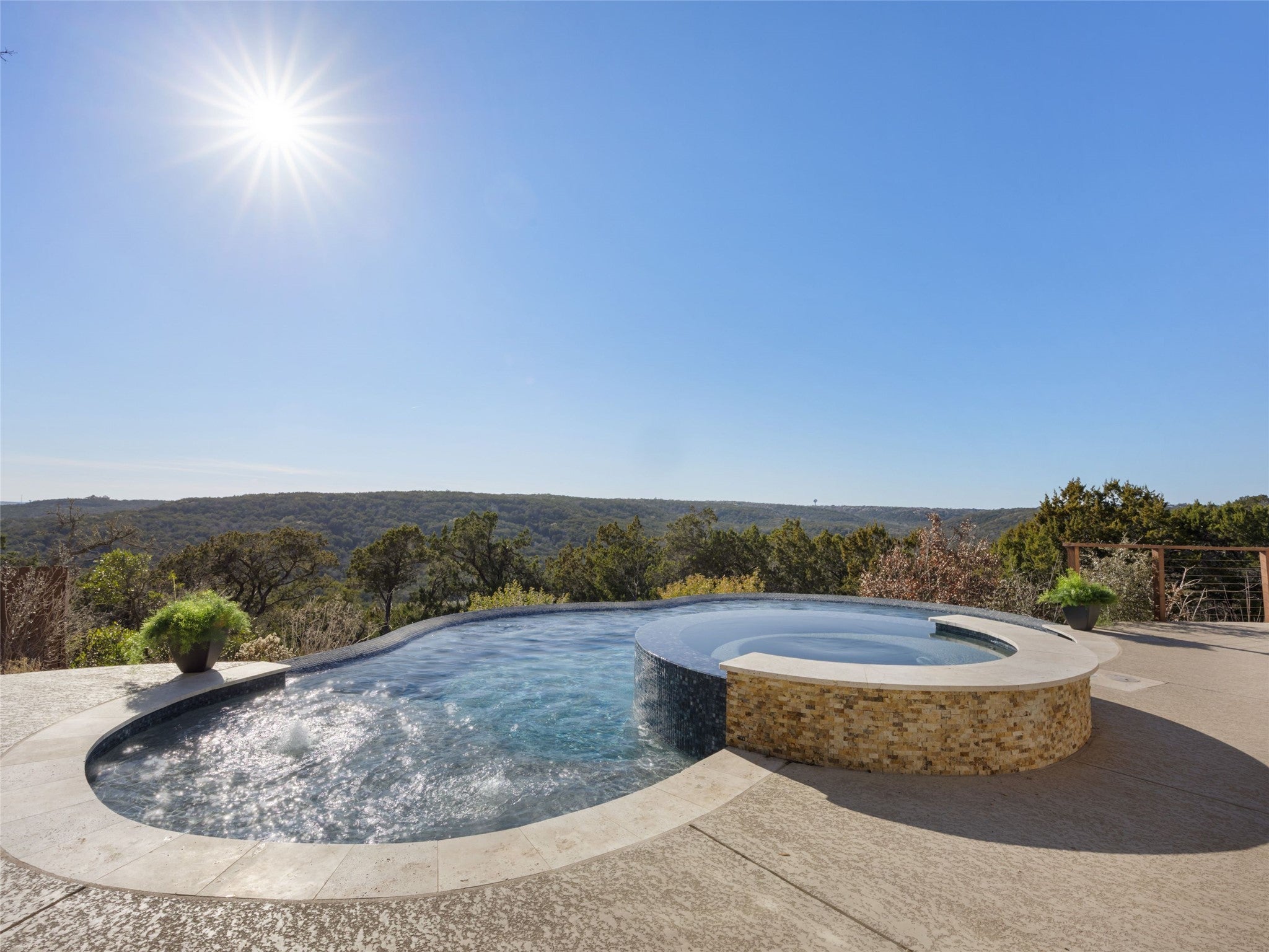 Set on nearly two acres backing to protected green space, 9009 Bell Mountain Drive offers a rare blend of Hill Country views, everyday privacy, and an exceptionally convenient Northwest Austin location. Located in the sought-after Long Canyon community and zoned to Vandegrift High School, this home delivers the kind of Austin lifestyle buyers seek—connected, scenic, and easy to live in. Designed to embrace its natural surroundings, the home features soaring ceilings, expansive windows, and multiple indoor-outdoor living areas that capture sweeping canyon and treetop views. The main living spaces flow seamlessly to outdoor terraces and a newly added pool, creating an ideal setting for entertaining, relaxing, or enjoying peaceful mornings overlooking the preserve. The main level is thoughtfully arranged for daily living, with a spacious primary suite offering a private deck with canyon views, a guest suite, dedicated office, and multiple living and dining areas. The gourmet kitchen anchors the home and is equipped with Wolf appliances, Sub-Zero refrigeration, and an oversized island—perfect for gatherings both large and small. Upstairs, generously sized secondary bedrooms and flexible living space provide room for guests, work-from-home needs, or recreation. Outdoors, the backyard feels calm and natural, bordered by mature trees and preserved green space—an uncommon setting this close to the city. Just minutes from Downtown Austin, The Domain, River Place, and major tech corridors, Long Canyon is known for its natural beauty, spacious homesites, and access to nearby hiking and biking trails. With a three-car garage, solar panels, updated systems, and the rare combination of acreage, views, pool, and location, 9009 Bell Mountain Drive presents an exceptional opportunity in one of Northwest Austin’s most desirable communities.