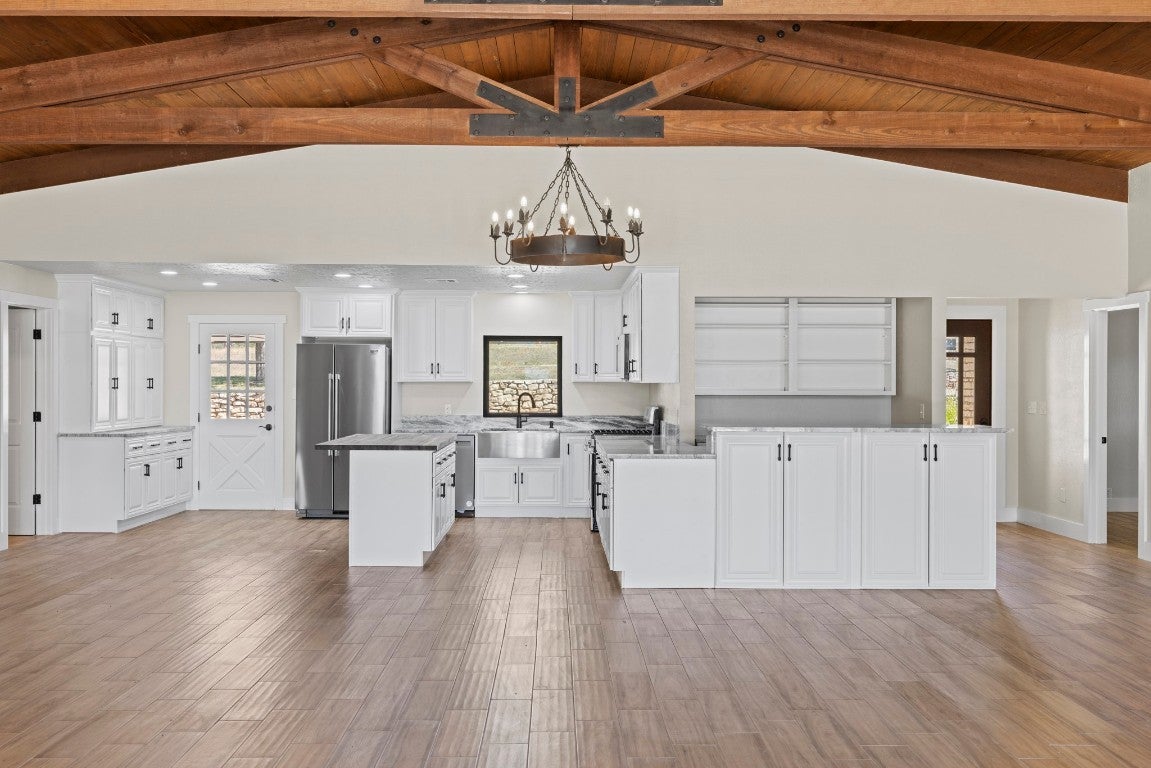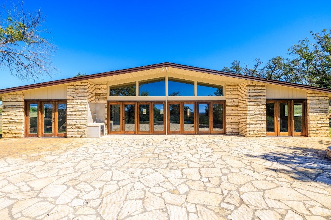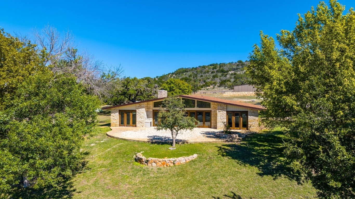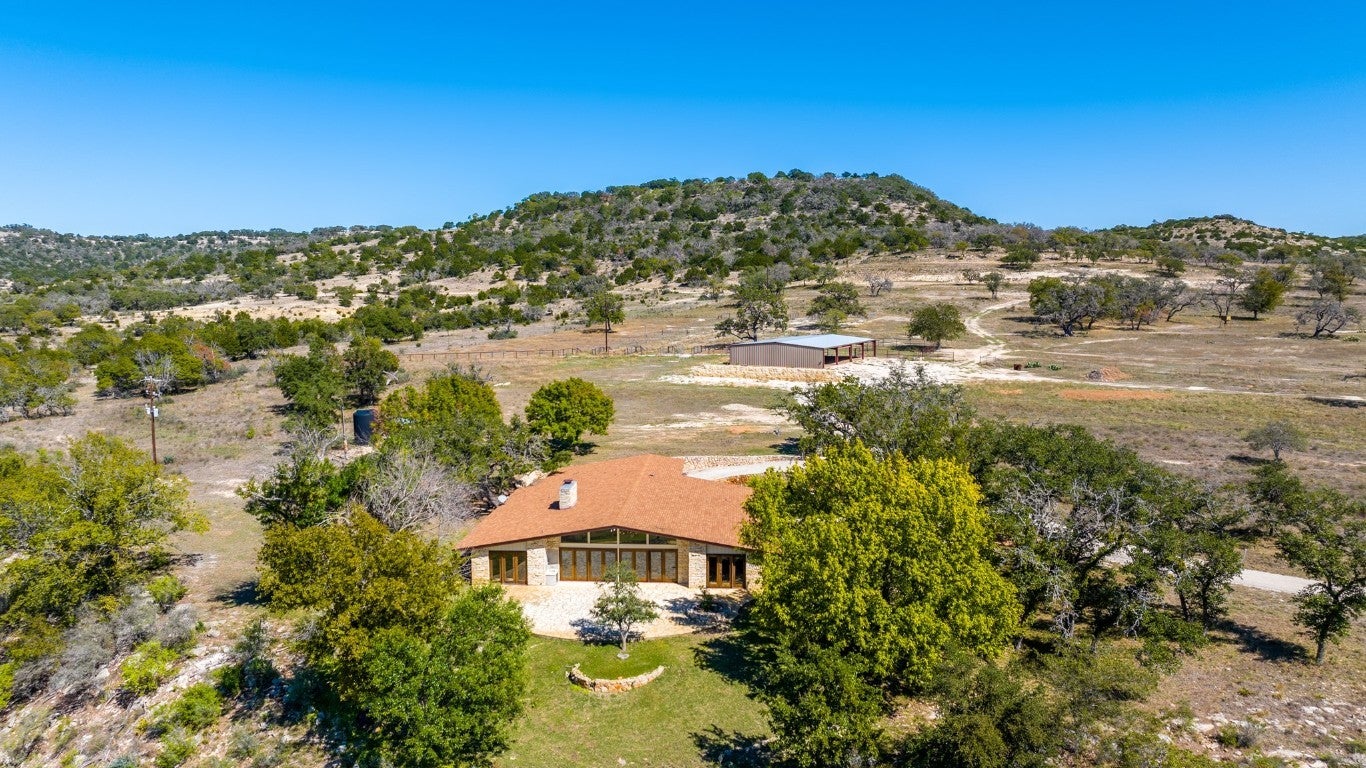 This 149-acre estate on Hwy 87 in Comfort, Texas, offers 1,800 ft of North Creek frontage and a remodeled 4-bed, 4-bath home. The house features high ceilings, exposed trusses, an open-concept layout, a chef's kitchen with marble countertops and stainless steel appliances, and a wet bar with wine refrigerators. The living room boasts a masonry fireplace and floor-to-ceiling windows with panoramic views. The property offers breathtaking hilltop vistas of the Texas countryside and abundant wildlife, including Axis, Blackbuck, Whitetail, Turkey, and Hogs. Conveniently located near Fredericksburg, Comfort, and Kerrville, it's also livestock-permitted with working pens and loading chutes. 241 N Hwy 87 is ideal for those seeking an adventurous yet refined Texas lifestyle.
