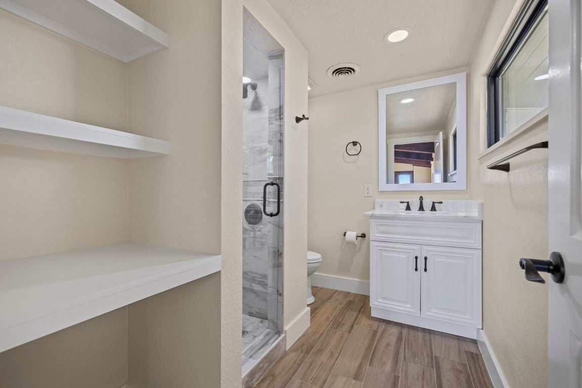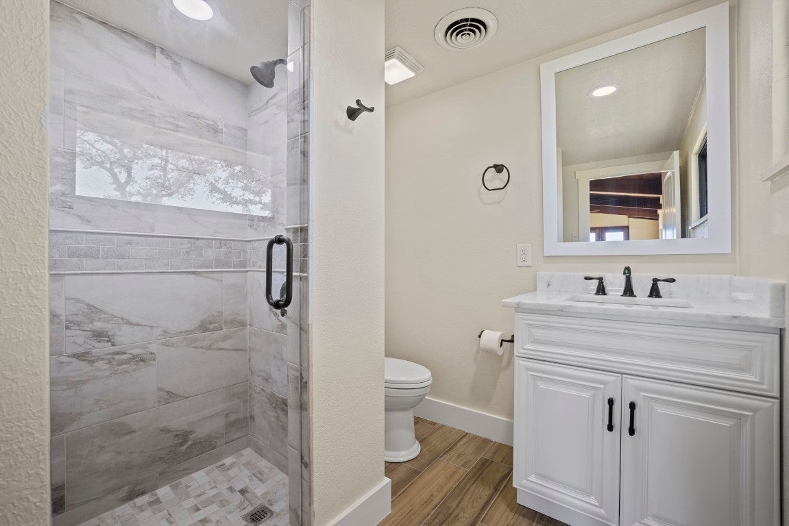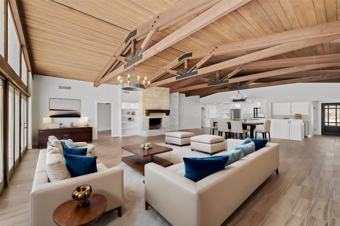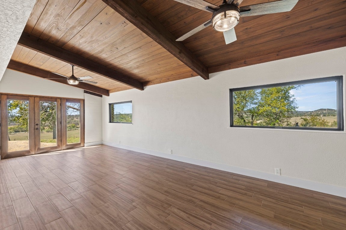 This 149-acre estate on Hwy 87 in Comfort, Texas, offers 1,800 ft of North Creek frontage and a remodeled 4-bed, 4-bath home. The house features high ceilings, exposed trusses, an open-concept layout, a chef's kitchen with marble countertops and stainless steel appliances, and a wet bar with wine refrigerators. The living room boasts a masonry fireplace and floor-to-ceiling windows with panoramic views. The property offers breathtaking hilltop vistas of the Texas countryside and abundant wildlife, including Axis, Blackbuck, Whitetail, Turkey, and Hogs. Conveniently located near Fredericksburg, Comfort, and Kerrville, it's also livestock-permitted with working pens and loading chutes. 241 N Hwy 87 is ideal for those seeking an adventurous yet refined Texas lifestyle.