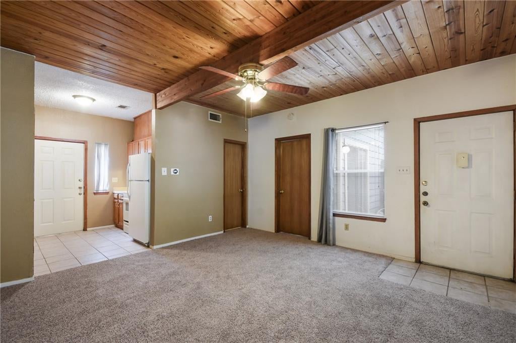 PRE-LEASING FOR AUGUST 2026! This spacious and cozy 1 bedroom 1 bath Condo just steps away from UT Campus is available for an August 2024-July 2025 Pre-Lease. Open living area with wood plank ceiling gives cabin like rustic appeal. Large bedroom with plenty of room for storage in dual closet space, with your washer / dryer closet right there as well. Private fenced in patio. 1 covered parking space included.