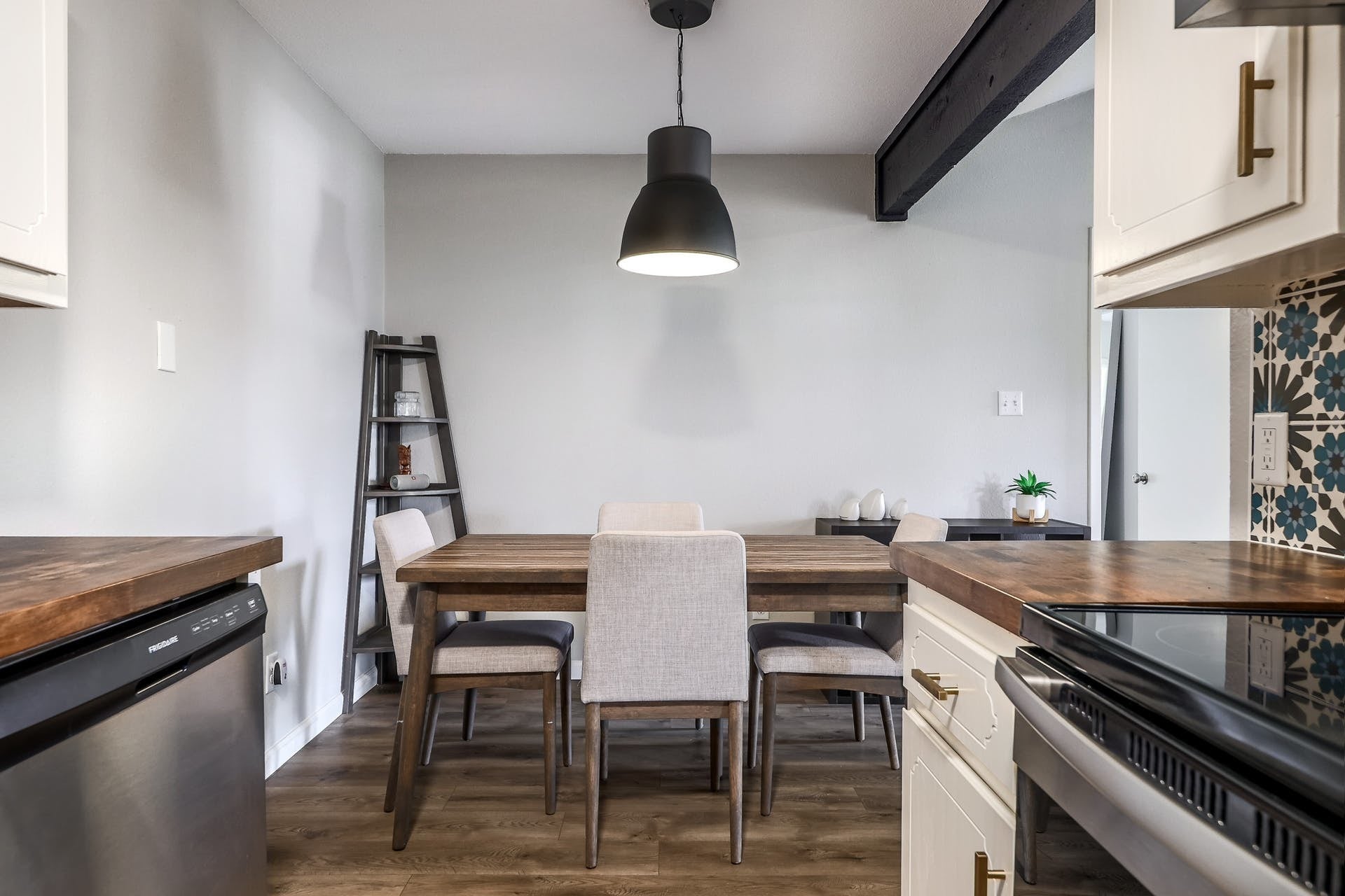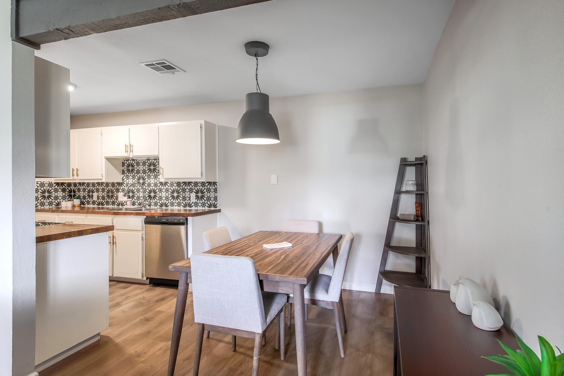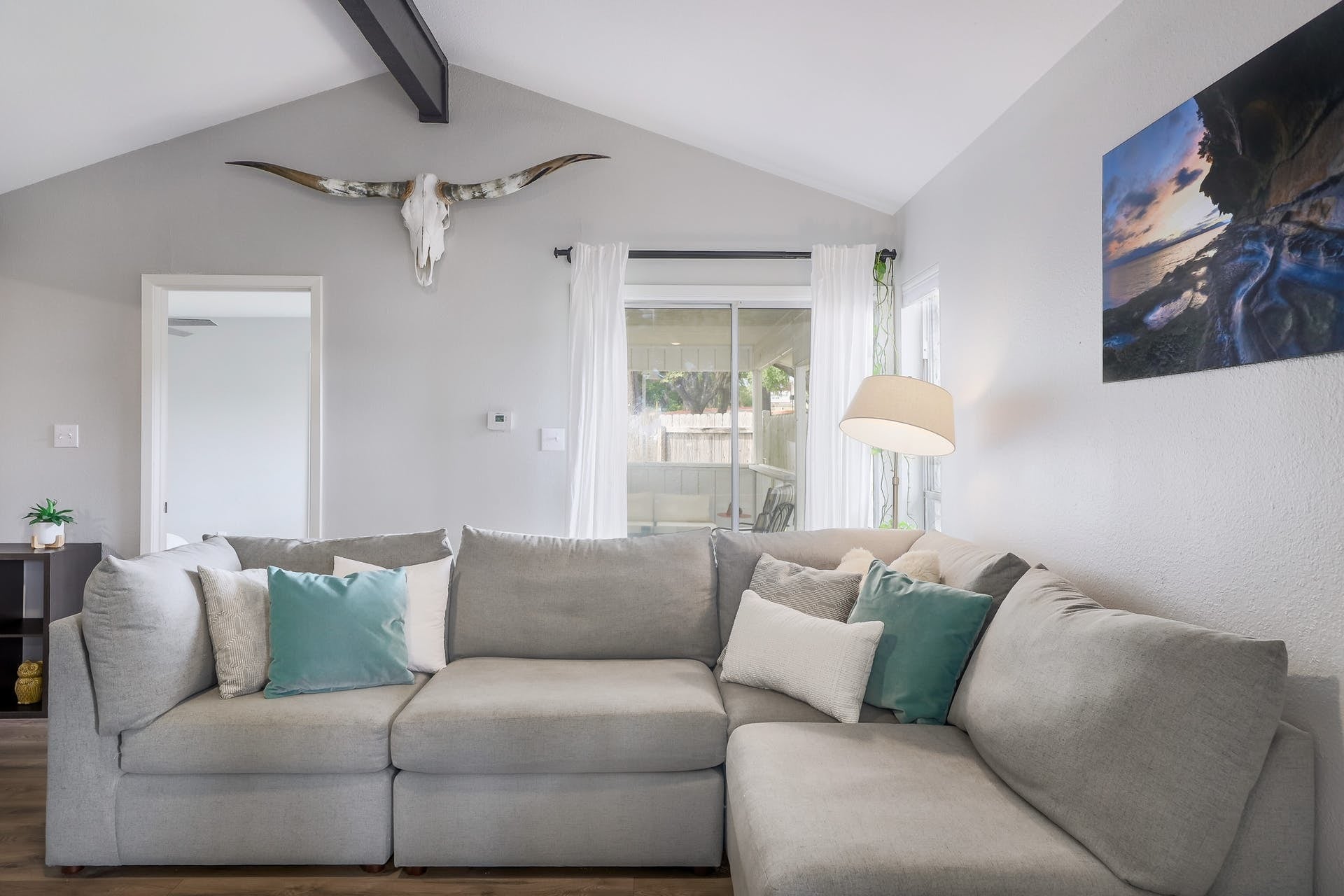 Rent includes water, pets control and yard maintenance. Light-filled and modern, this beautifully renovated 2-bedroom, 2-bathroom home features an open floor plan with stylish vinyl plank flooring throughout. The updated kitchen and bathrooms offer clean, contemporary finishes, while the living and dining areas showcase soaring vaulted ceilings with exposed beams, warm wood accents, and decorative tile details that add character and charm. The spacious primary suite includes a HUGE walk-in closet, private en-suite bathroom, and direct access to a private backyard patio. Enjoy indoor-outdoor living with a large fenced yard and expansive covered patio—perfect for relaxing or entertaining. Additional highlights include a single-car garage, driveway parking, and a private entrance. Ideally located just minutes from Downtown Austin (12 minutes), The Domain (10 minutes), and Tech Ridge (5 minutes), with easy access to major employers, dining, grocery stores, and shopping.