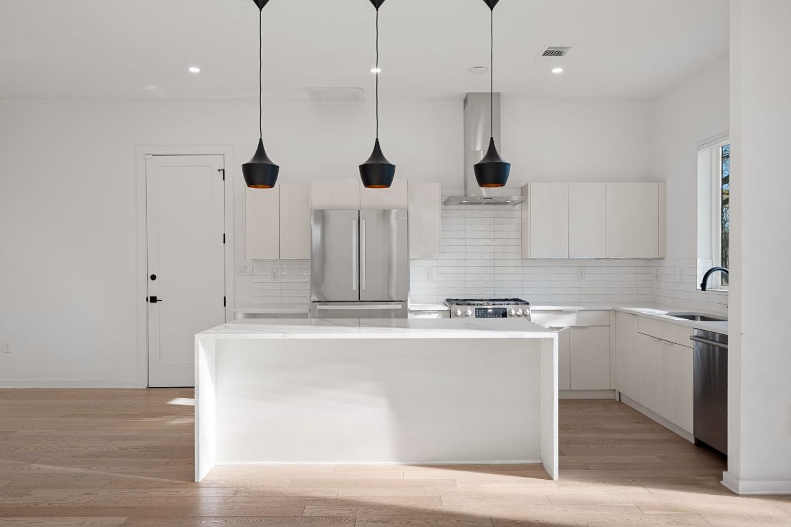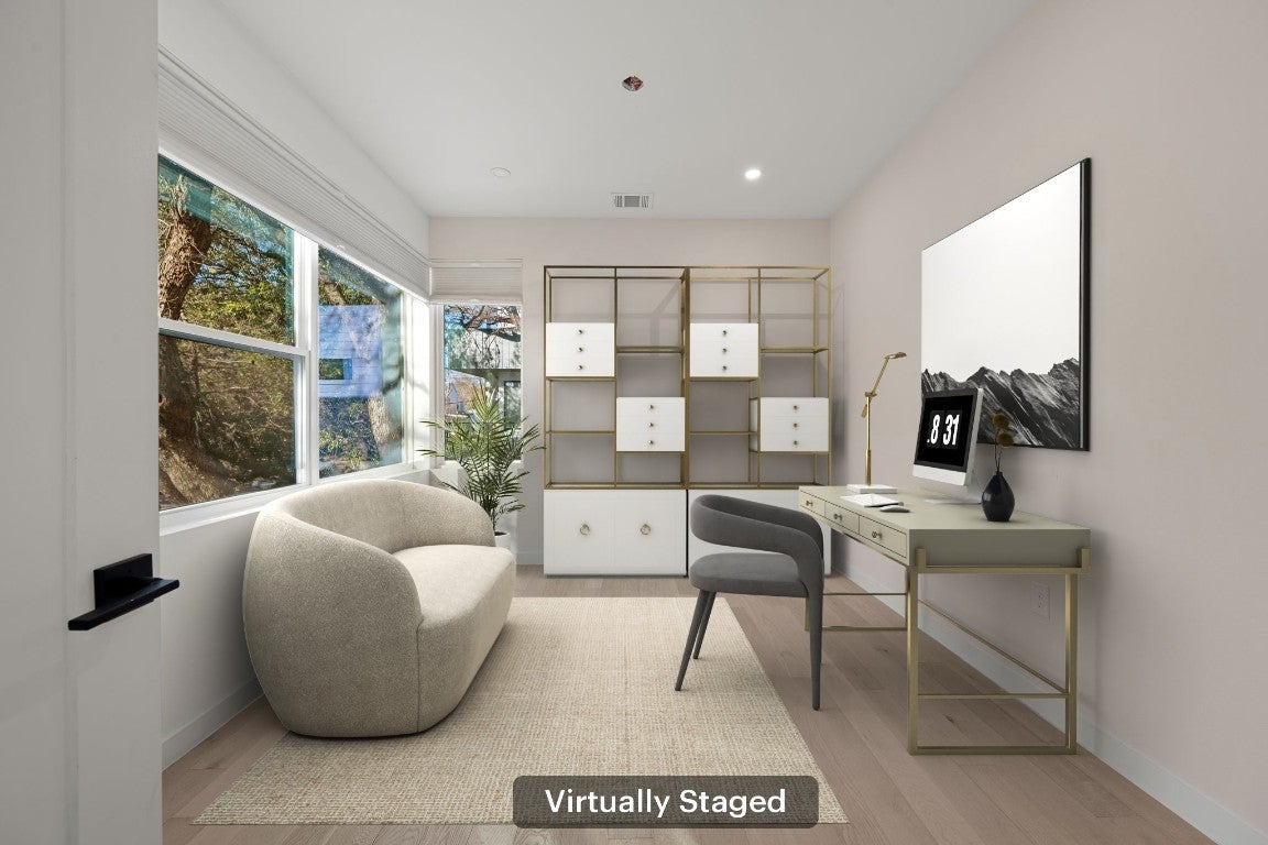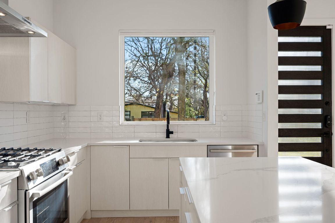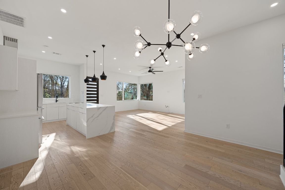 Discover the ultimate South Austin lifestyle close to the St. Elmo District / South Manchaca neighborhood, this practically new 2020-built corner home lives like a true single-family residence and offers exceptional privacy, space, and flexibility. Fully fenced and gated corner lot, the property features both a welcoming front yard and a spacious backyard shaded by mature Live Oak and Elm trees—an ideal outdoor retreat just South of 78704. The thoughtfully designed two-story layout includes 4 bedrooms and 3 full bathrooms, with a full bedroom and bath conveniently located on the main level, perfect for guests or multi-generational living. The open-concept main floor is filled with natural light and showcases hardwood floors throughout, custom window shades, and a beautifully appointed kitchen with a waterfall-edge island, bar seating, and seamless flow into the living and dining areas—ideal for everyday living and entertaining. Upstairs, you’ll find the primary suite, additional bedrooms, a full bath, and a second living or family room, perfect as a media room or play space. The primary suite offers a spa-like bathroom, an oversized walk-in closet, and a private balcony with peaceful treetop views. All bedrooms feature generous walk-in closets and large windows that enhance the home’s bright, airy feel. Adding even more versatility is a detached bonus studio in the backyard(ADU/Flex Space), ideal for a home office, gym, creative studio, or flex space. With modern finishes, multiple living areas, and a prime location to get to Downtown or airport, also is just minutes from Radio Coffee, Veracruz, Pins Mechanical, The Yard and other local favorites—this home seamlessly blends comfort, style, and convenience in one of Austin’s most desirable neighborhoods.