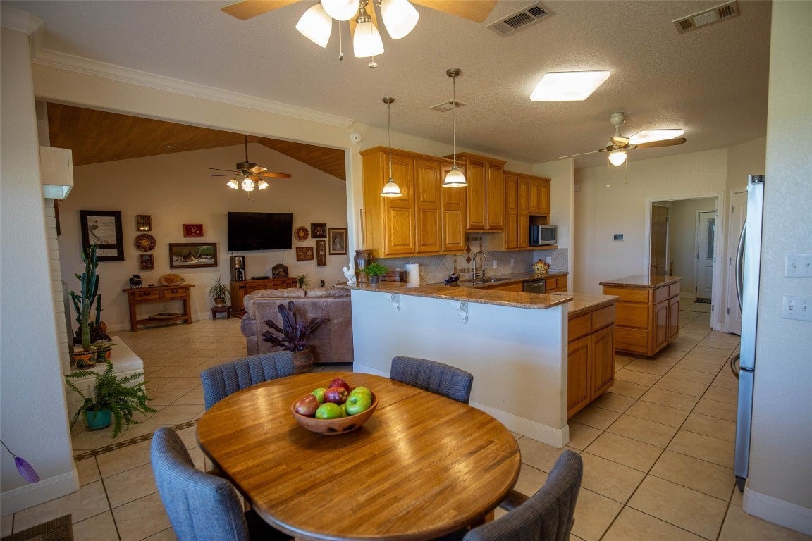 Elm Creek Estate is a turn-key rural escape with everything needed for a perfect residential, recreational, and agricultural property just a few minutes to town and 30 minutes to major amenities. With approximately 700 feet of paved road frontage, the beautiful entrance has an automatic solar gate and cattle guard. A well-maintained gravel road leads to the 2006-built house with 3,076 sf, 4 bedrooms, 2.5 bathrooms, 2 living areas, large kitchen, formal dining, eat-in bar, and breakfast nook. Other features include a wood-burning fireplace, all LED lighting, master suite with tray ceiling, separate garden tub, and double sinks, covered patios in front and back with fans, 2 HVAC systems (back one installed 2021), spacious laundry room with access to the 2-car garage, and entirely ADA accessible. The house is wired for a security system but is not currently in service. A large, fenced yard with cattle guard surrounds the house. The 20 x 40 ft. metal building was built in 2021 on a slab with 12 ft. roll-up doors, water & electricity. The barn is perfect for equipment, vehicle, and hay storage. Several working pens are also included. The improved pasture is currently used for hay production and a cow/calf operation with a gorgeous herd of Red Angus. Excellent fencing and cross-fencing.There is a 1/3-acre pond in the front pasture and a 3/4-acre pond in the back pasture. The back boundary has frontage on seasonal Big Elm Creek with towering elm, oak, and pecan trees.