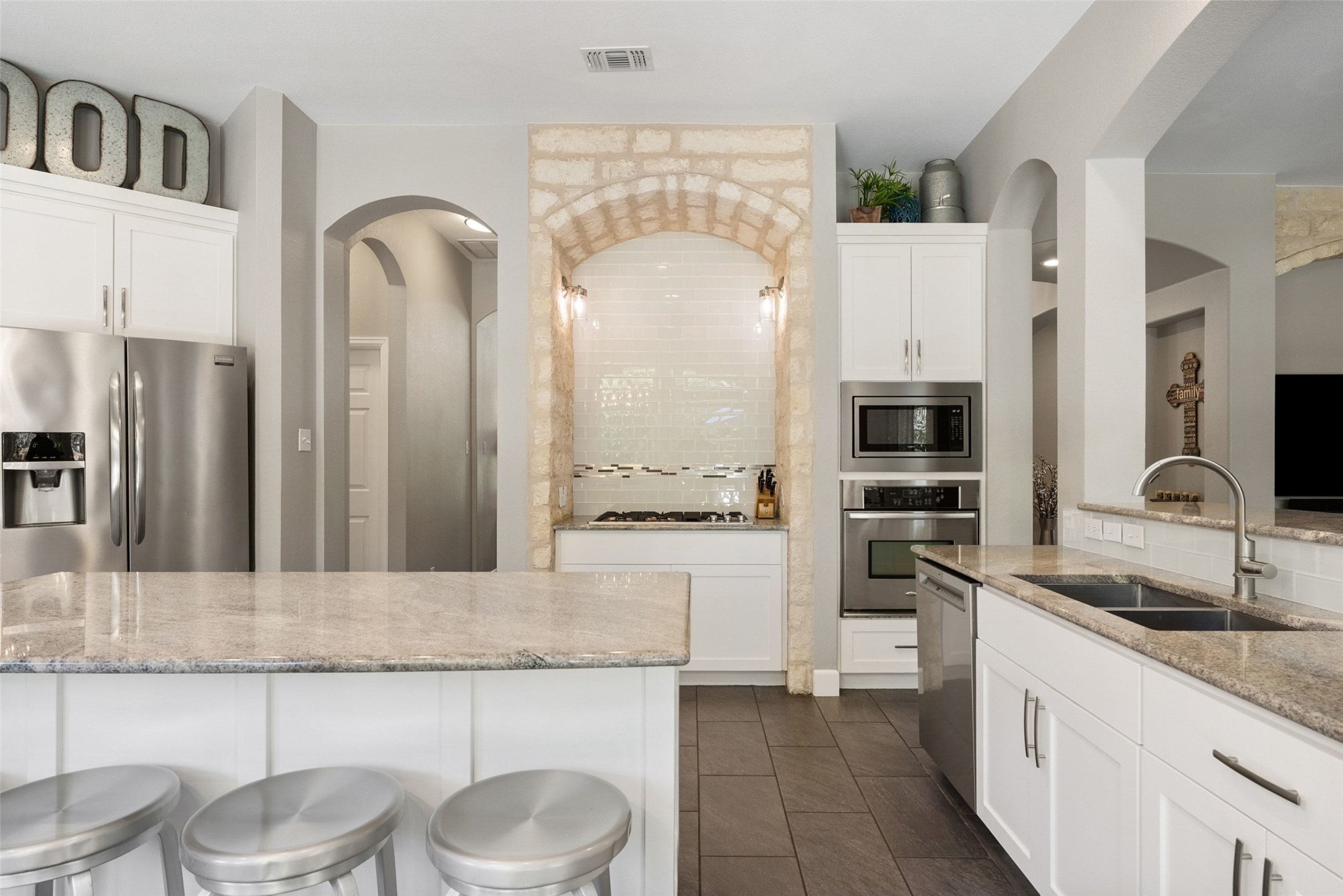 Positioned on one of the larger and more private lots in the section, 12510 Bright Sky Overlook offers a rare combination of space, functionality, and thoughtful upgrades. Tucked along a gentle curve in the street, the setting provides added privacy and a more expansive feel—something you simply don’t get with typical interior lots. The home features a highly sought-after 3-car garage and showcases extensive landscaping and hardscaping, with stonework, mature plantings, and curated outdoor spaces that create both standout curb appeal and true usability. A newer fence frames the backyard, where you’ll find a pool, patio, and—importantly—additional grass space that allows for both recreation and relaxation. Inside, the remodeled kitchen features updated cabinetry, modern countertops, and stainless steel appliances, all opening into light-filled living spaces. Natural light is abundant throughout, enhancing the home’s warm and inviting atmosphere. Upstairs, a spacious game room provides flexible living space, while the oversized primary suite offers a comfortable retreat with a generous walk-in closet. Behind the scenes, the home has been exceptionally maintained and continuously upgraded over the past decade, including two HVAC systems replaced in 2020, a new water heater in 2026, and new stucco in 2025, along with numerous additional improvements that reflect consistent pride of ownership . Located in Steiner Ranch—one of Austin’s premier master-planned communities—residents enjoy access to top-rated schools, multiple community centers with pools and amenities, miles of hike and bike trails, and convenient access to Lake Austin and Lake Travis. This is a community known for its lifestyle, not just its homes. This is a rare opportunity to own a well-cared-for home on a premium lot with both privacy and space in one of the area’s most sought-after neighborhoods.