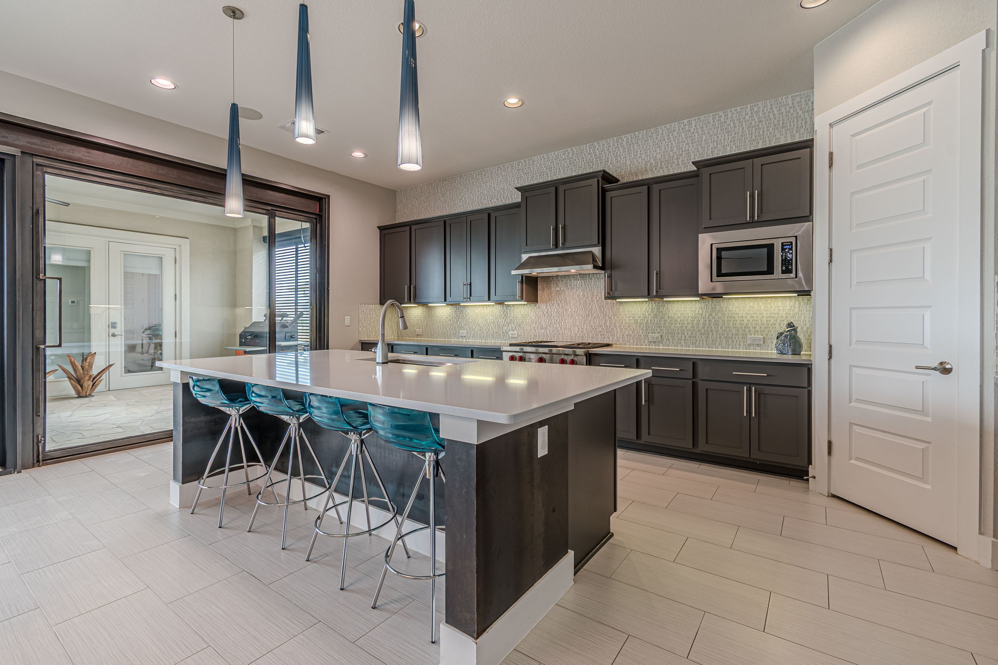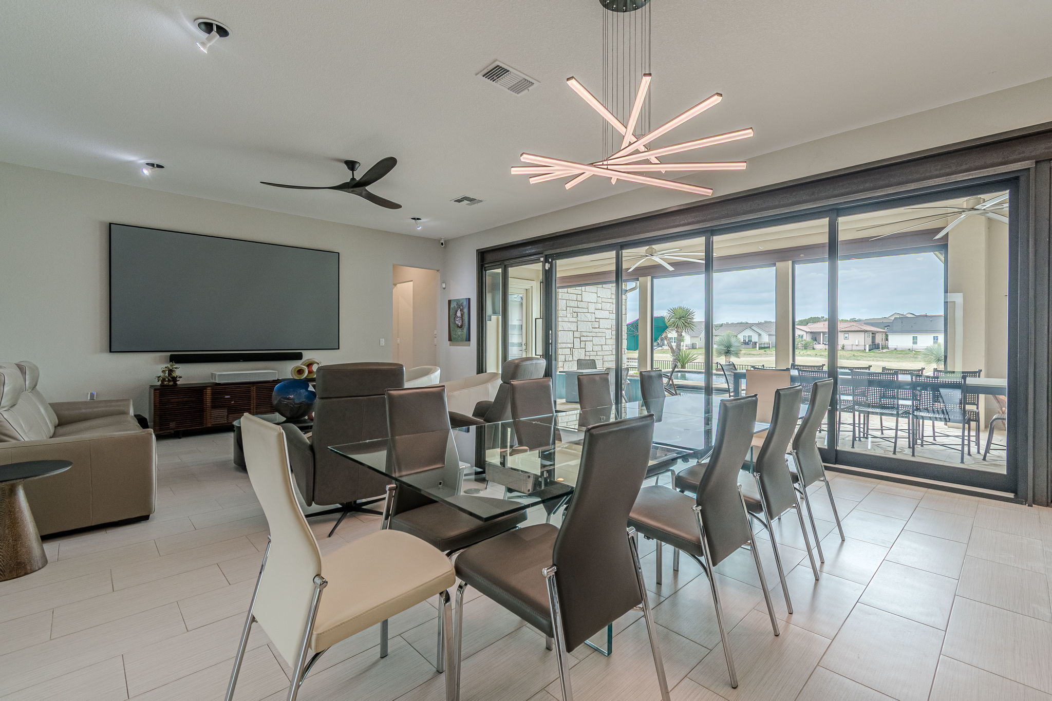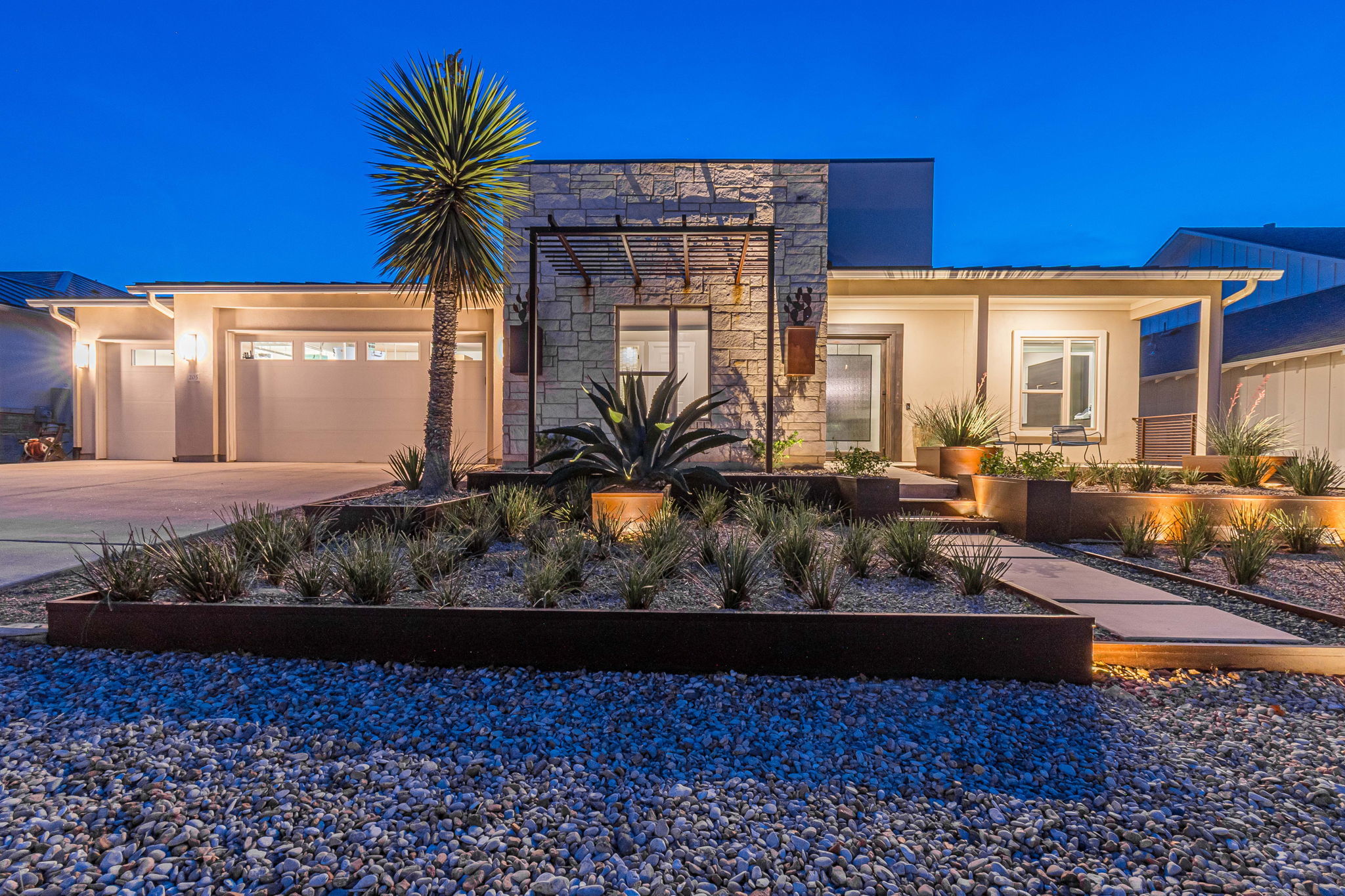 Discover one of the true gems of the community—where every detail reflects exceptional craftsmanship, thoughtful customization, and elevated living. From the moment you arrive, the striking curb appeal sets the tone. A unique stone and stucco façade is complemented by xeriscaping, landscape lighting, and modern metal accents, creating a true show-stopping entrance. The oversized glass front door with custom metal detailing makes a lasting first impression. Inside, a spacious study just off the entry offers incredible flexibility, complete with built-in storage and a Murphy bed—ideal for a home office or guest overflow. The well-designed floor plan includes a private guest ensuite featuring an upgraded walk-in shower with stunning floor-to-ceiling mirror glass. The heart of the home is simply breathtaking. The open-concept living, dining, and kitchen area is anchored by a fully customized rear wall of floor-to-ceiling glass doors and an expansive slider, seamlessly blending indoor and outdoor living. This Clarkson floor plan boasts one of the largest back patios available, further enhanced by a beautifully appointed casita—perfect for guests or a private retreat. Step outside to a backyard oasis unlike any other. Enjoy sweeping golf course views, a resort-style pool, and a luxurious hot tub—creating the ultimate setting for both entertaining and unwinding in complete serenity. This is more than a home—it’s a statement. A place where you’ll love to gather, relax, and truly feel that you’ve arrived.